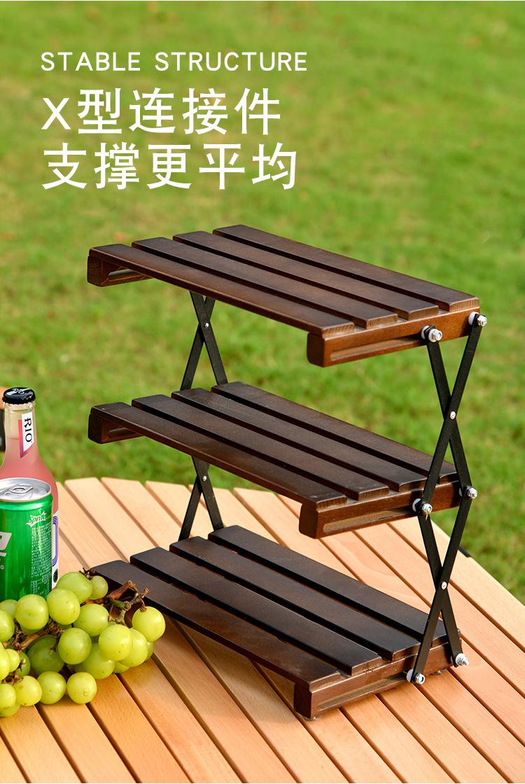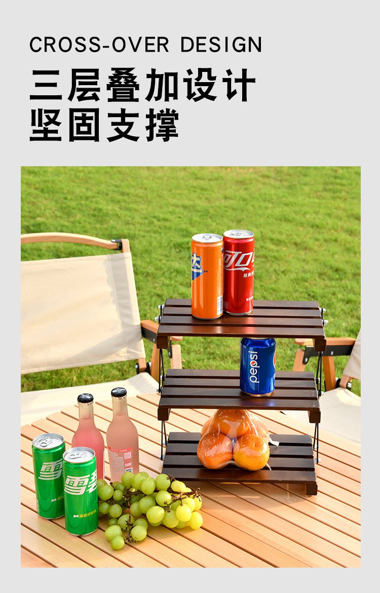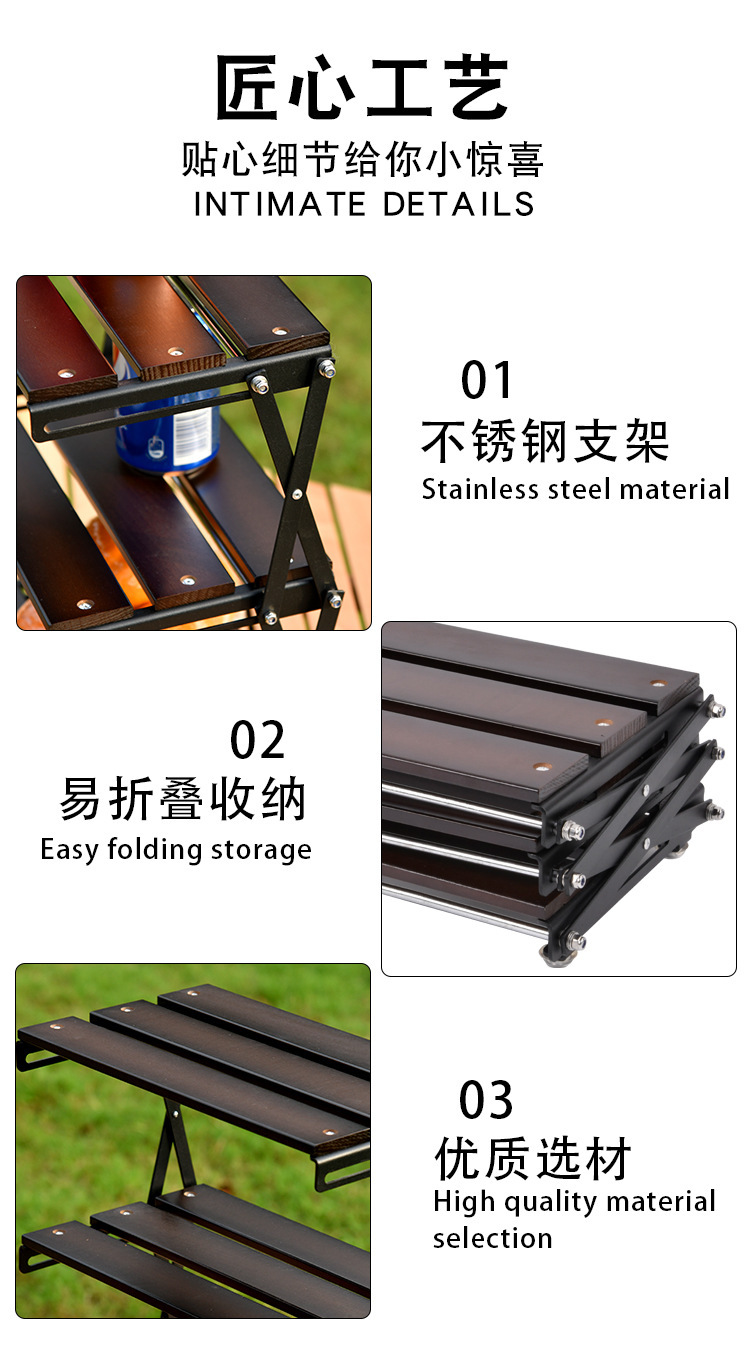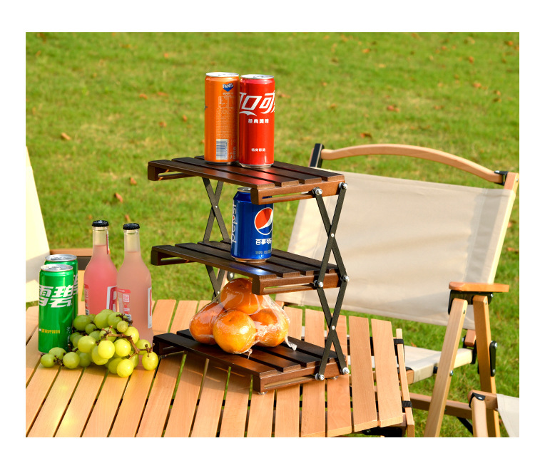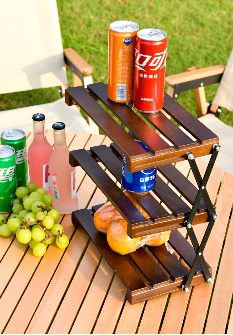 야외 캠핑 스테인레스 스틸 3 층 접이식 스토리지 랙 휴대용 다기능 데스크탑 개폐식 목재 스토리지 랙