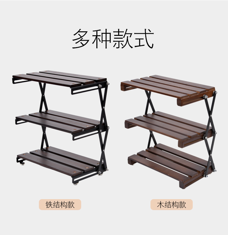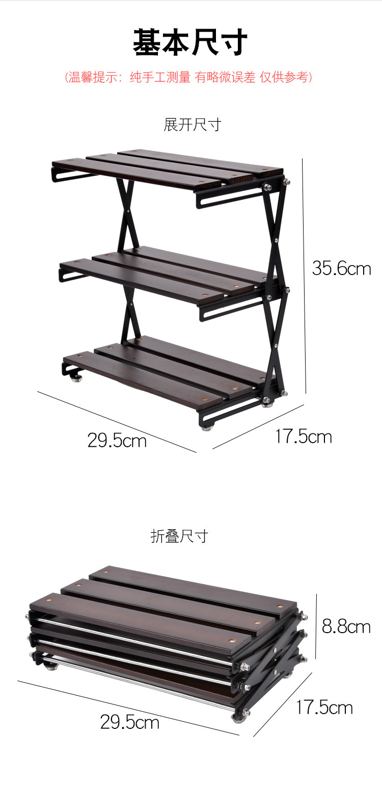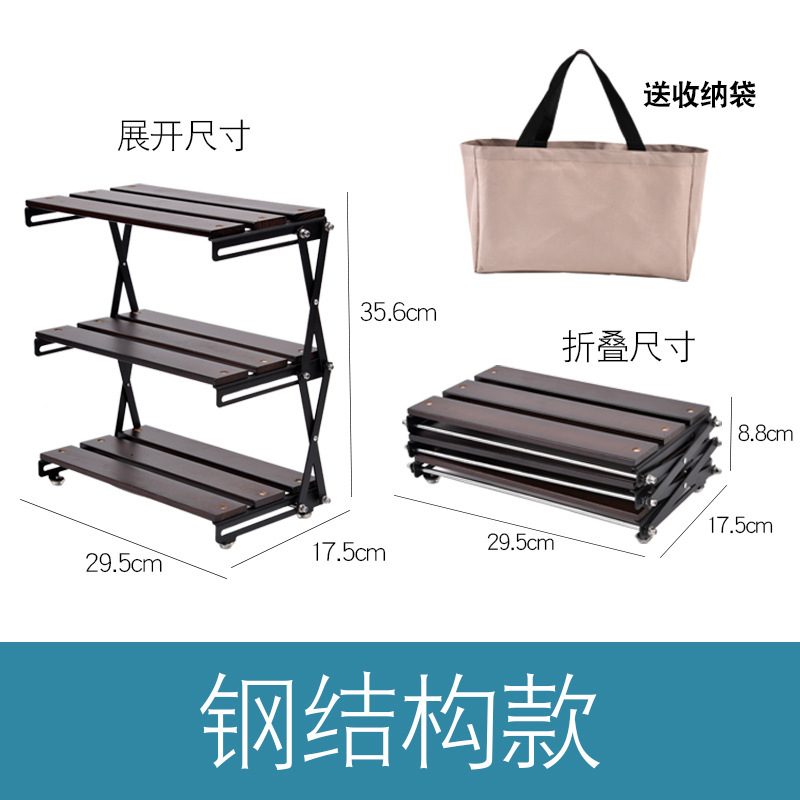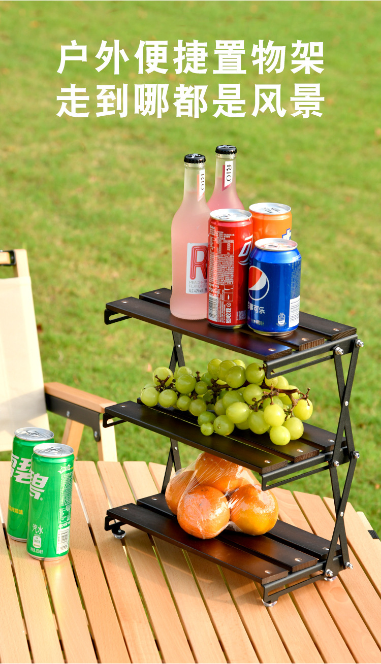 야외 캠핑 스테인레스 스틸 3 층 접이식 스토리지 랙 휴대용 다기능 데스크탑 개폐식 목재 스토리지 랙