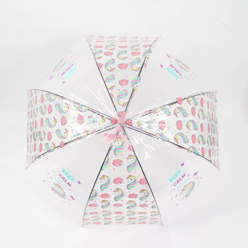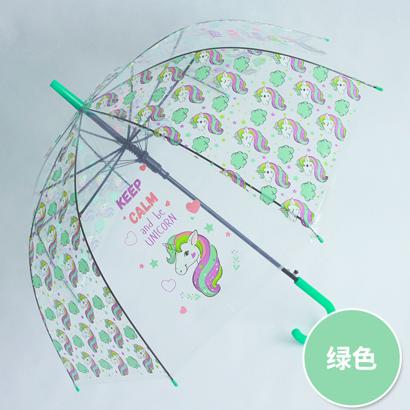 만화 유니콘 투명 우산 작은 신선한 어린이 성인 간단한 긴 손잡이 우산 귀여운 부모-어린이 우산 인쇄 로고스토어 가기