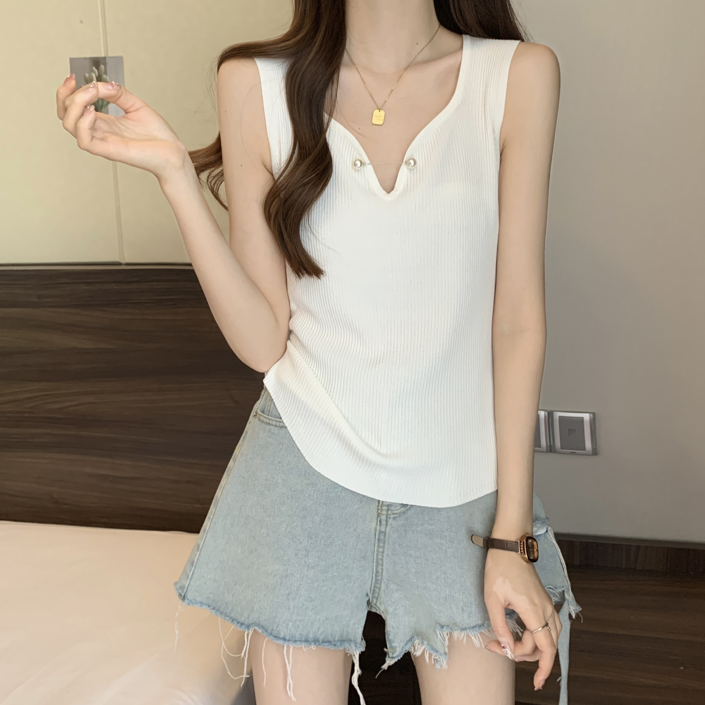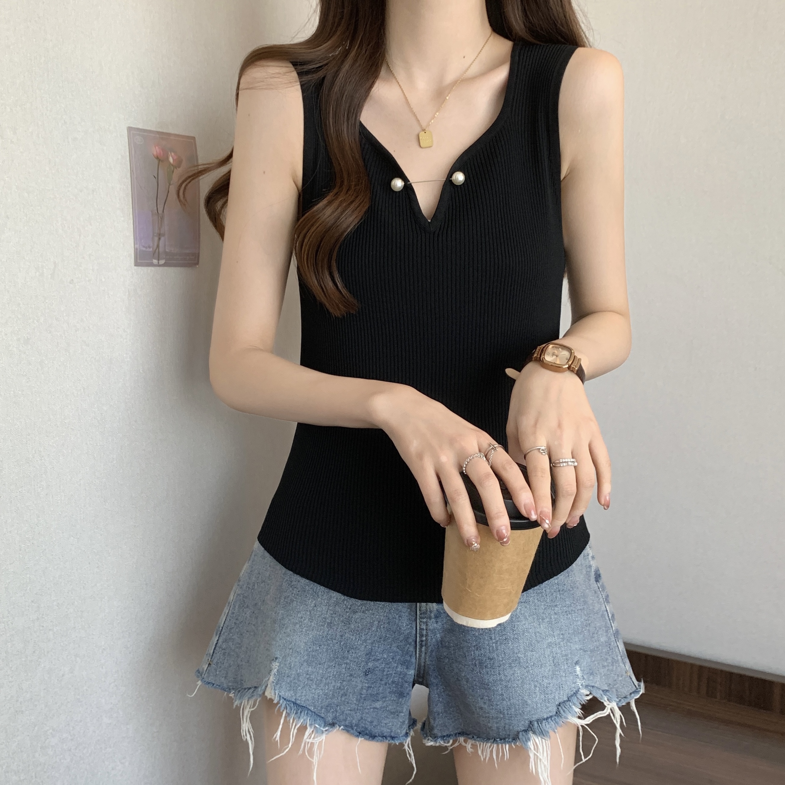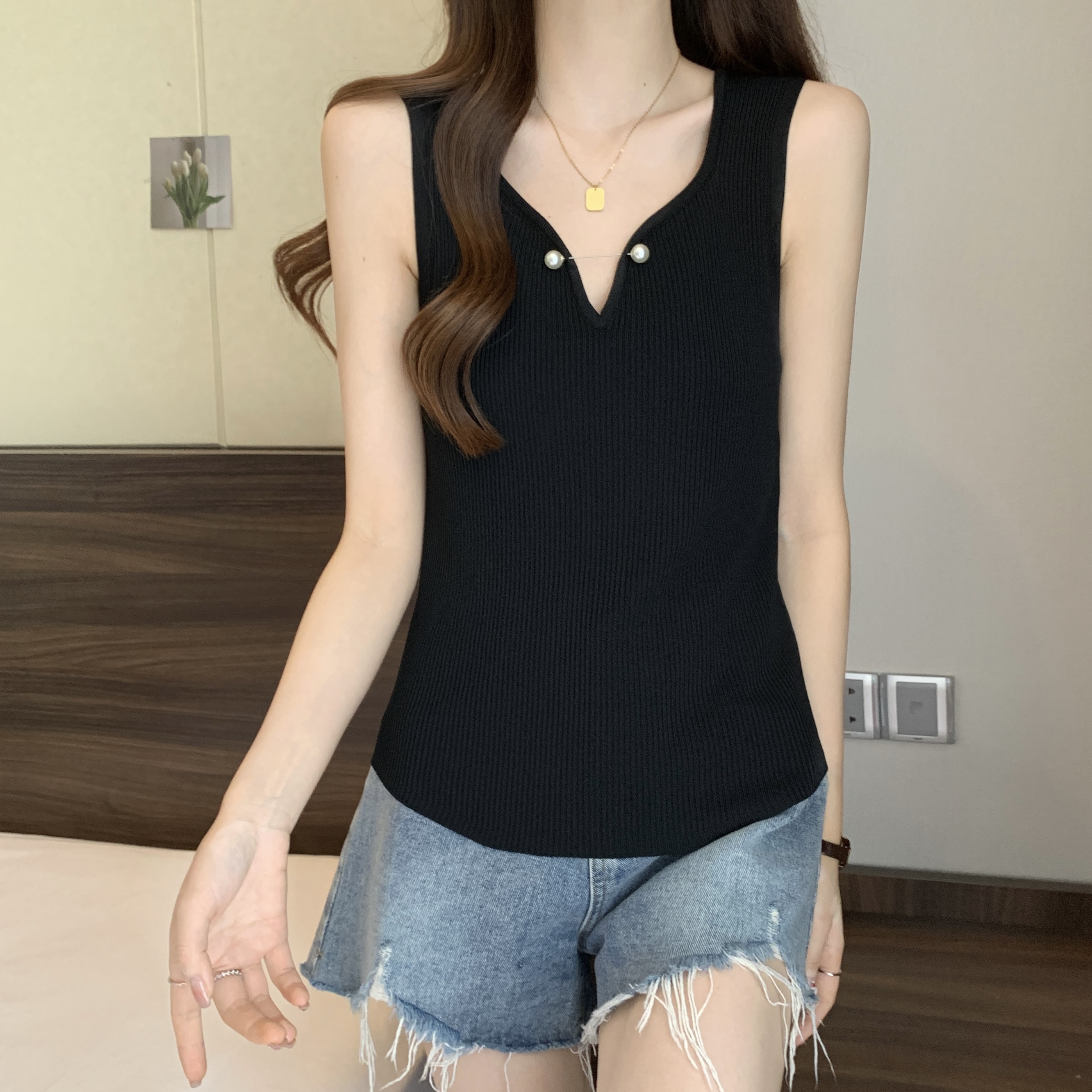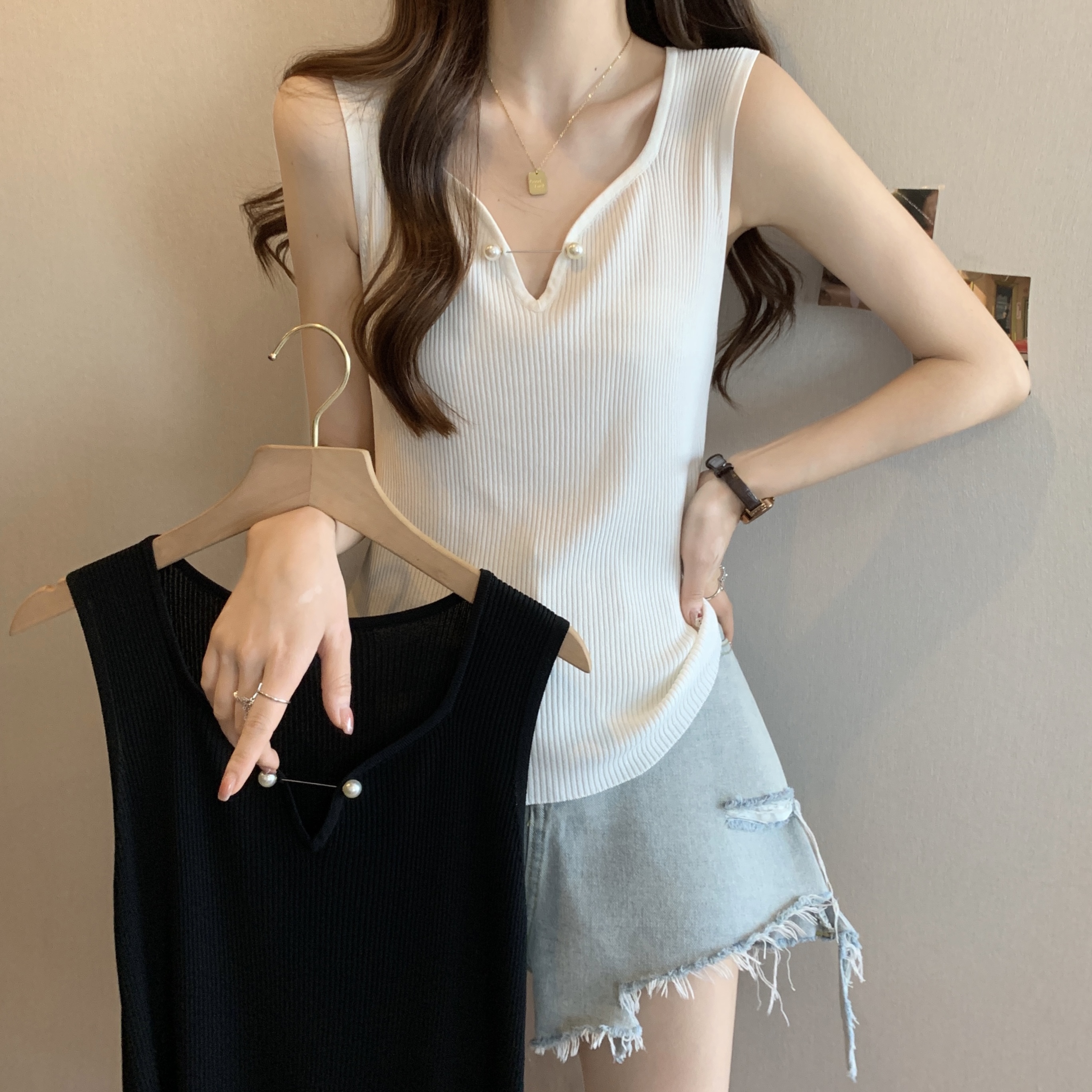 외부 착용 작은 카미솔 여성의 봄과 여름 플러스 사이즈 약간 뚱뚱한 소녀 슬리밍 민소매 기본 최고 유럽 작은 셔츠스토어 가기