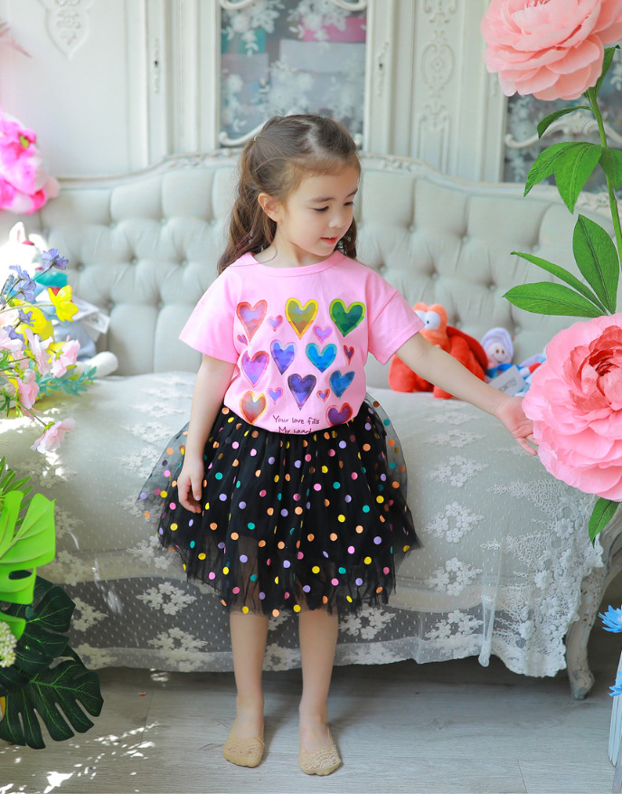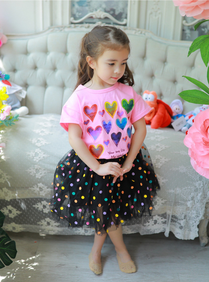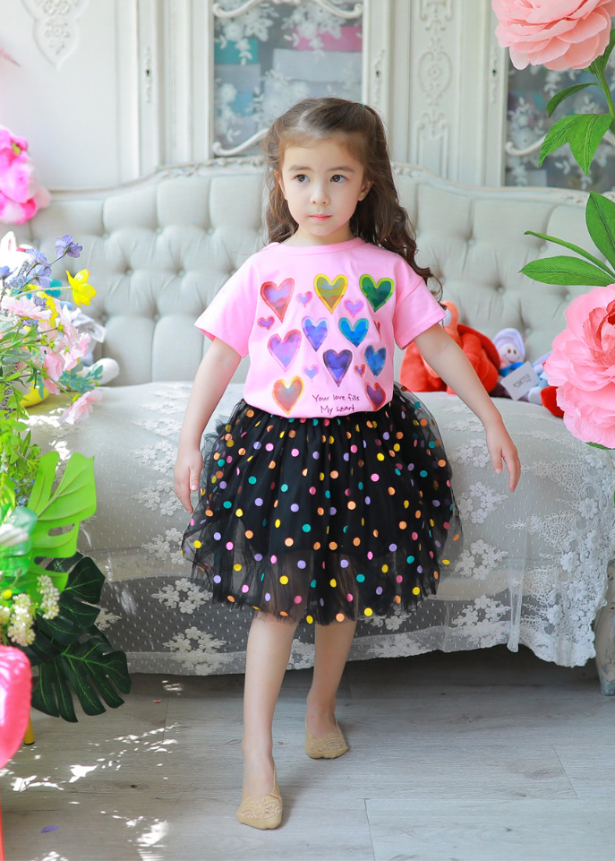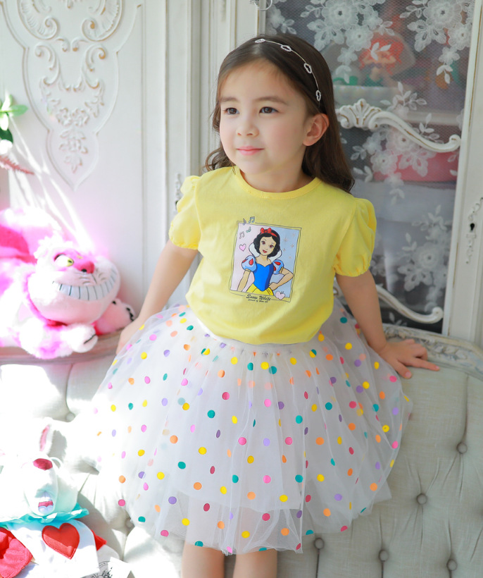 2025 여아 한국식 컬러풀 도트 메쉬 스커트