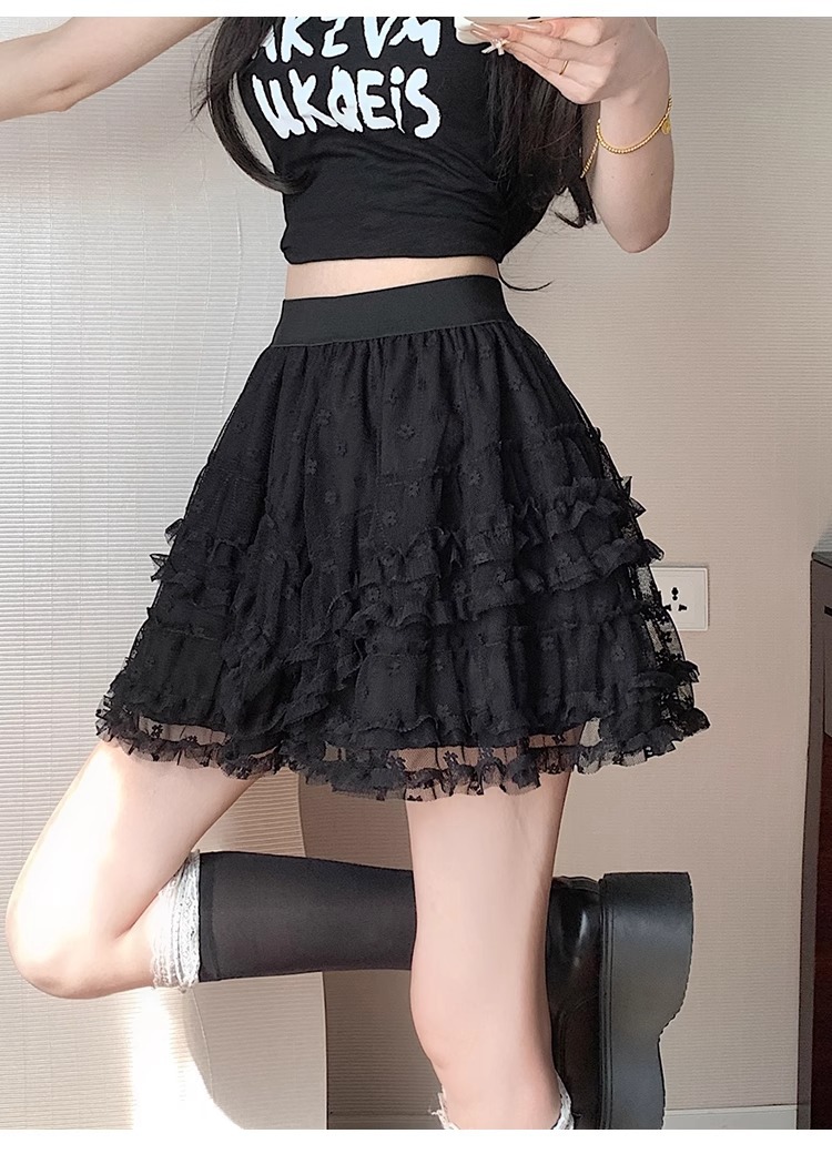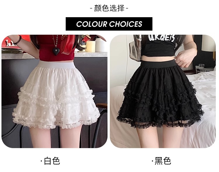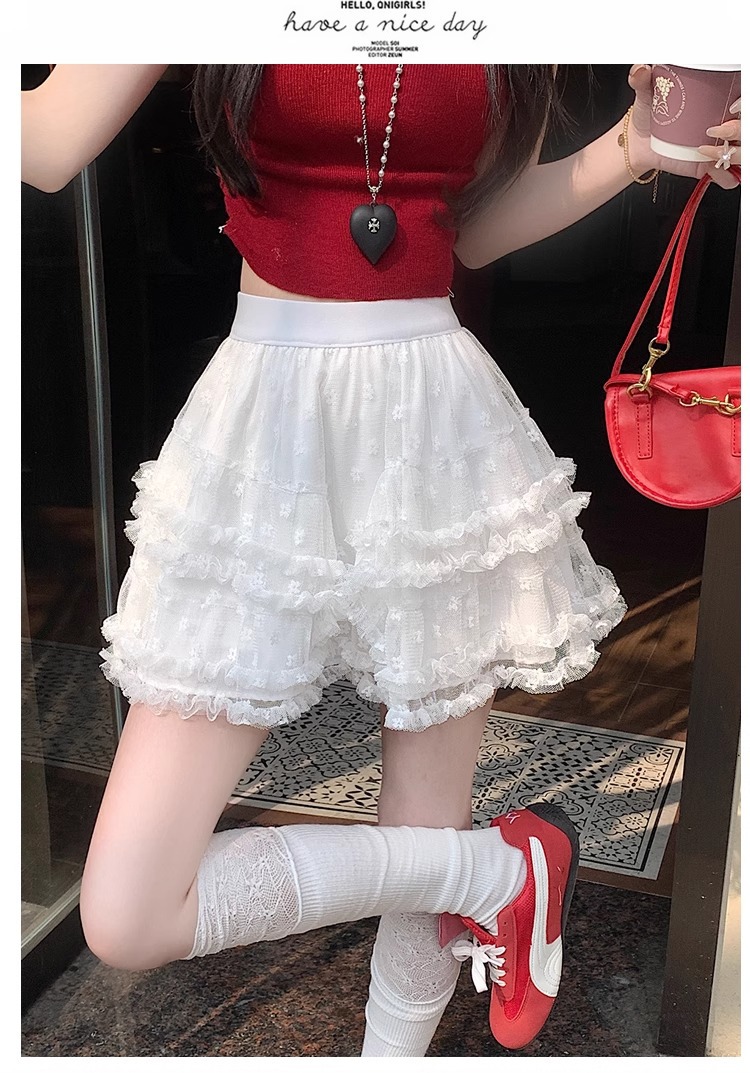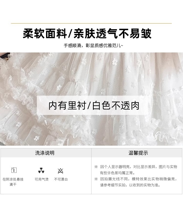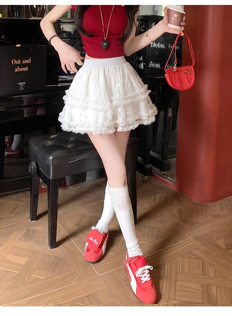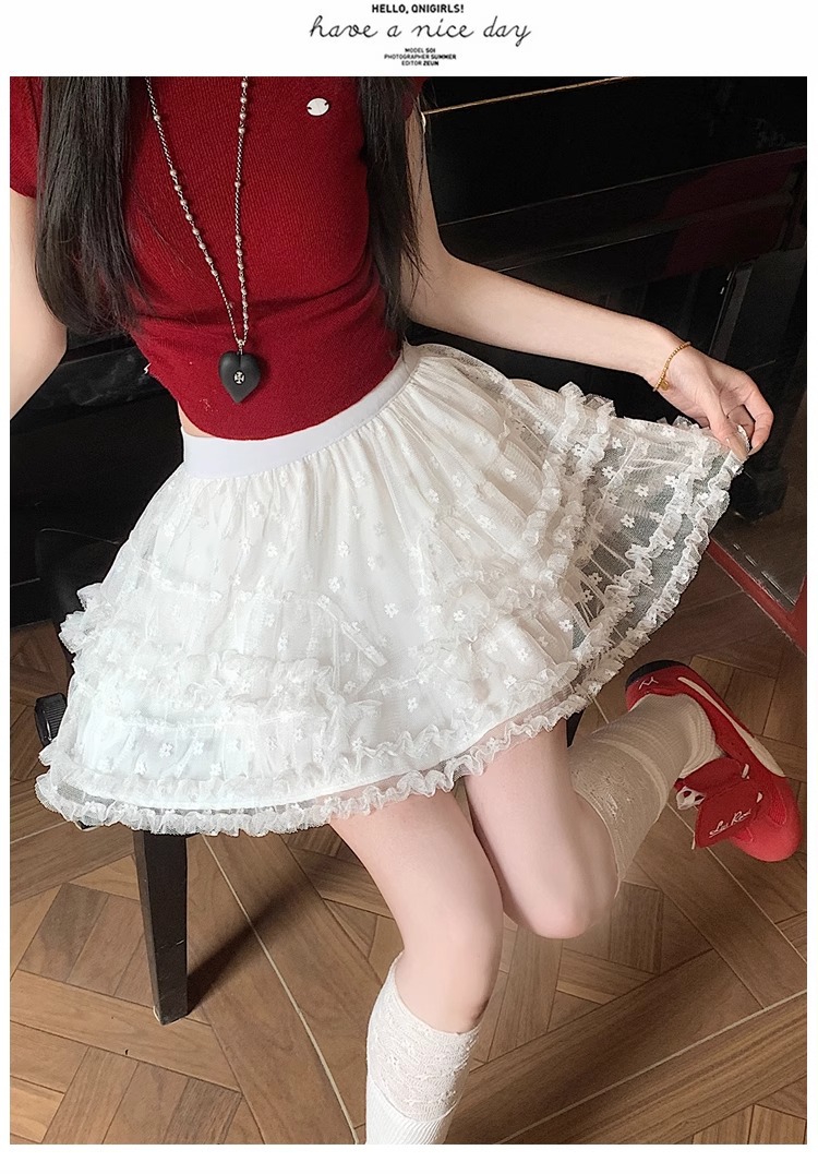 [오리지널 원단] 흰색 레이스 스커트 신축성 있는 허리 슬리밍 A라인 거즈 스커트 스위트 프린세스 퍼프 케이크