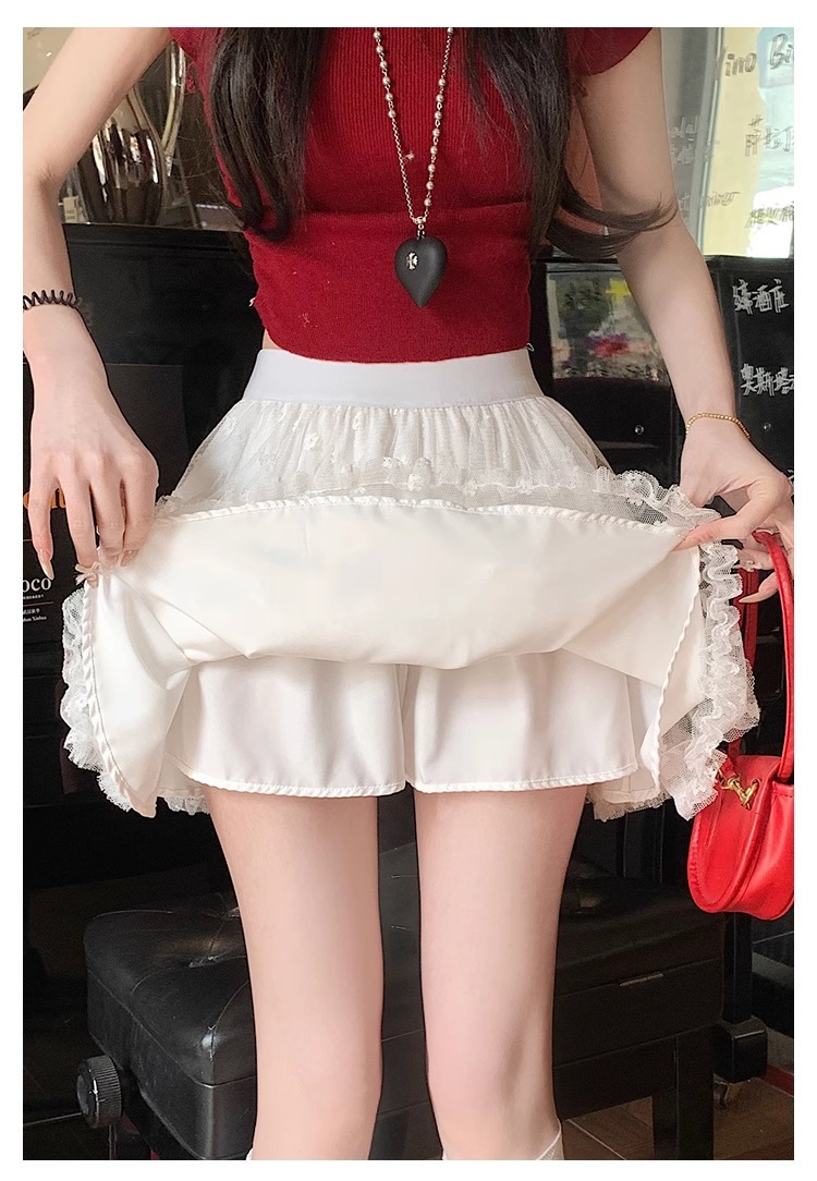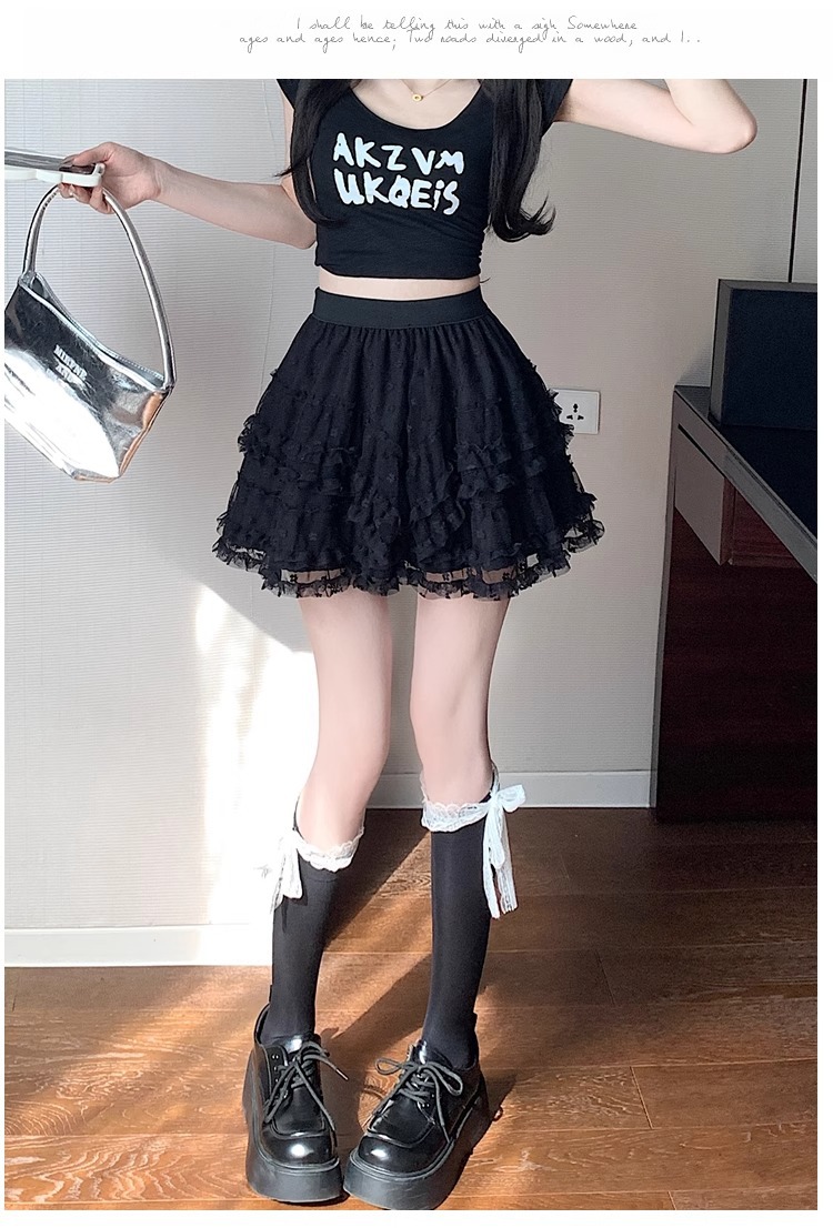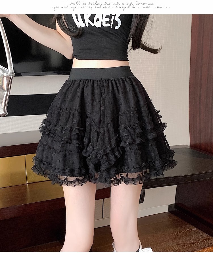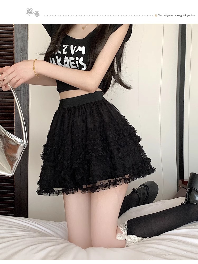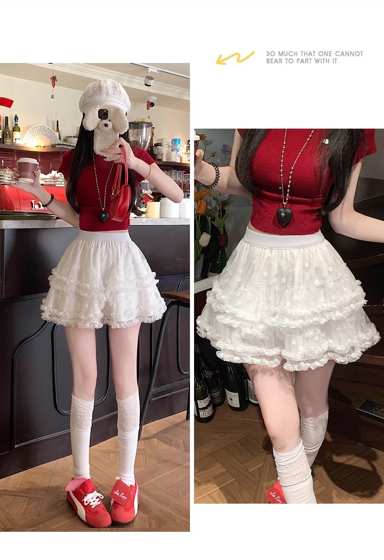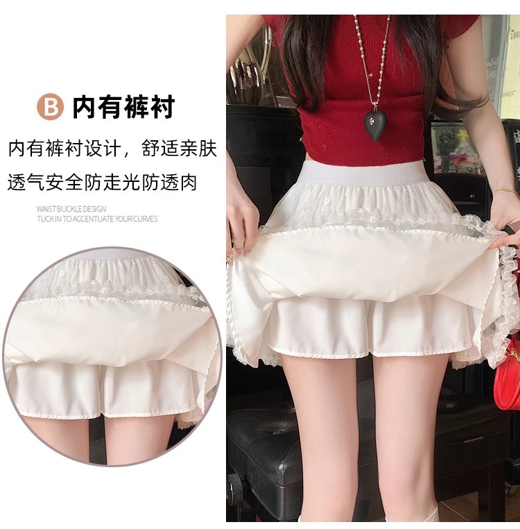 [오리지널 원단] 흰색 레이스 스커트 신축성 있는 허리 슬리밍 A라인 거즈 스커트 스위트 프린세스 퍼프 케이크