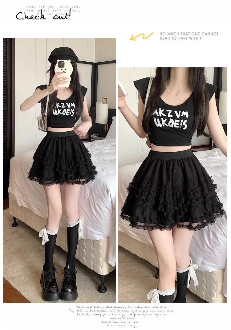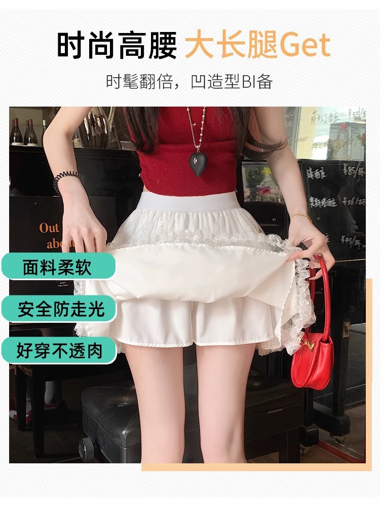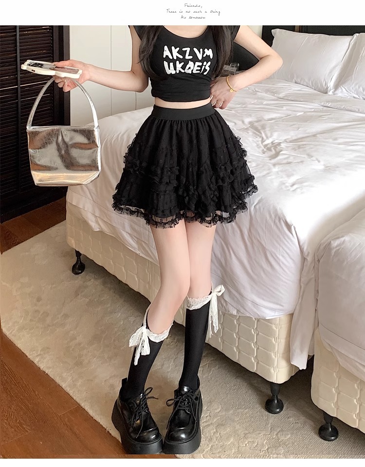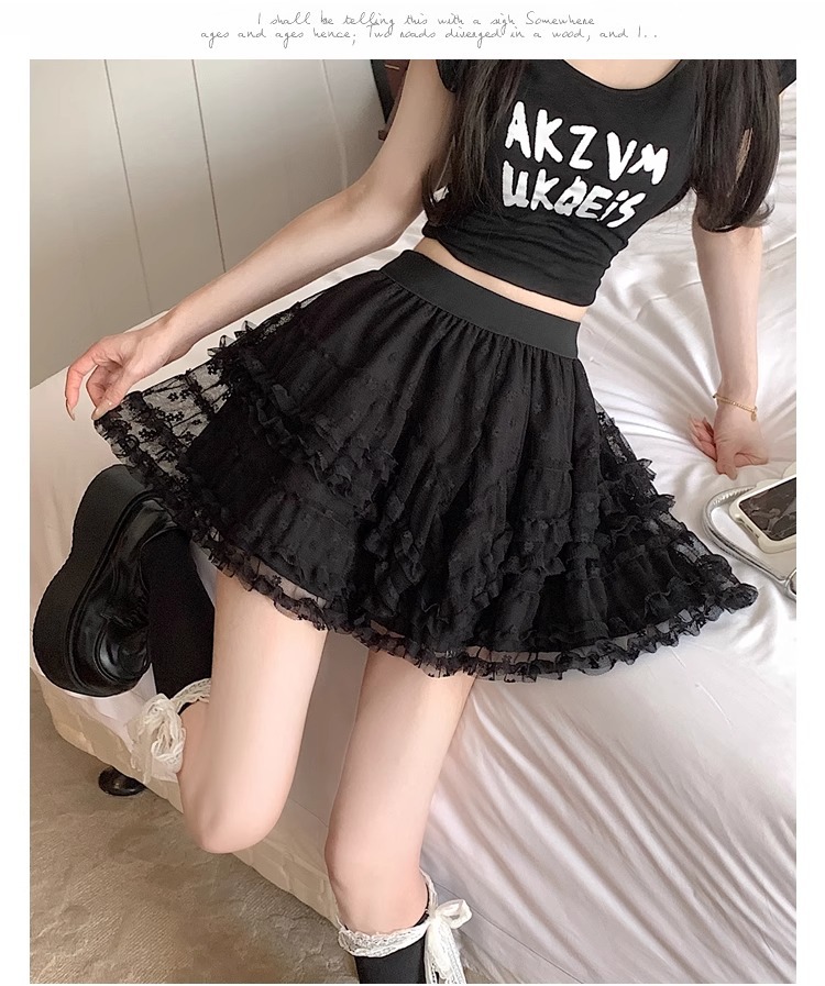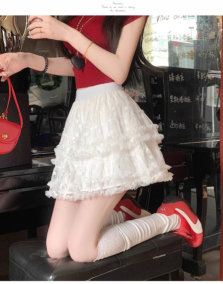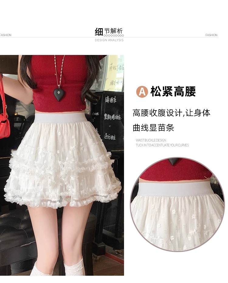 [오리지널 원단] 흰색 레이스 스커트 신축성 있는 허리 슬리밍 A라인 거즈 스커트 스위트 프린세스 퍼프 케이크스토어 가기