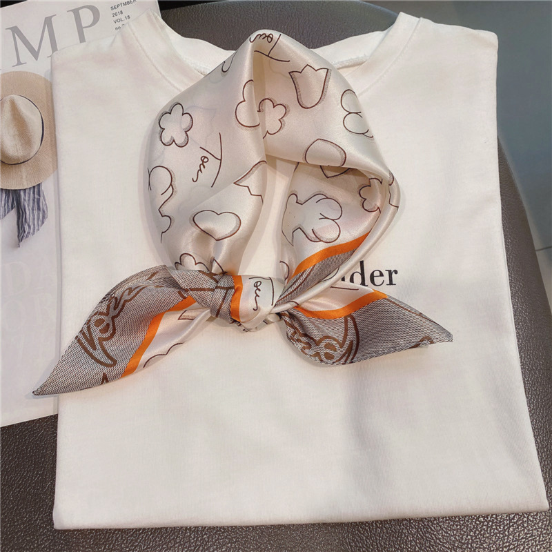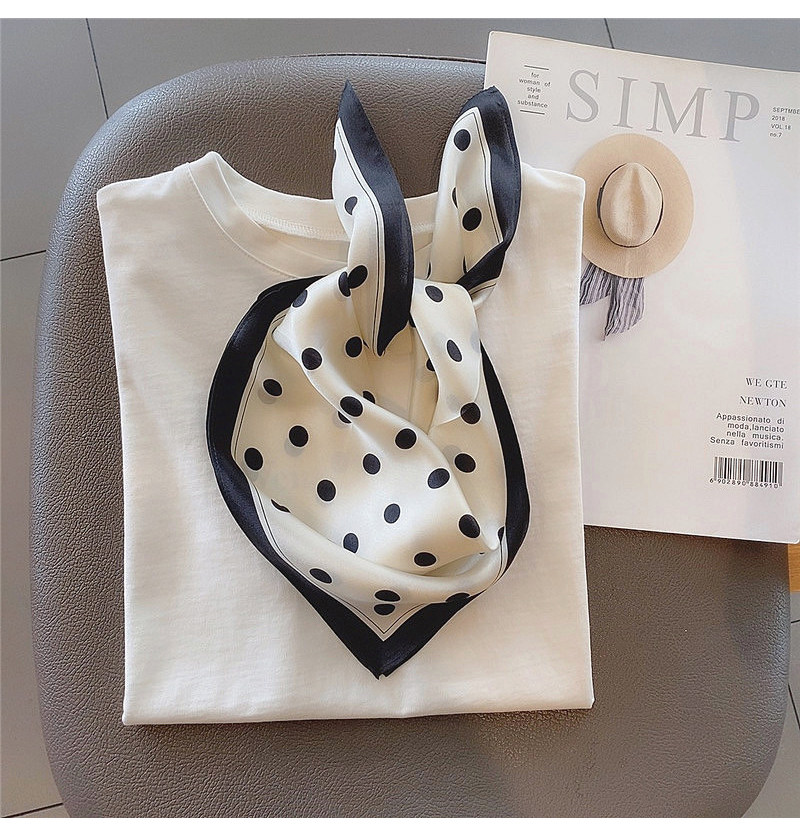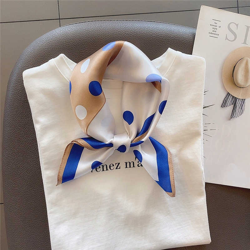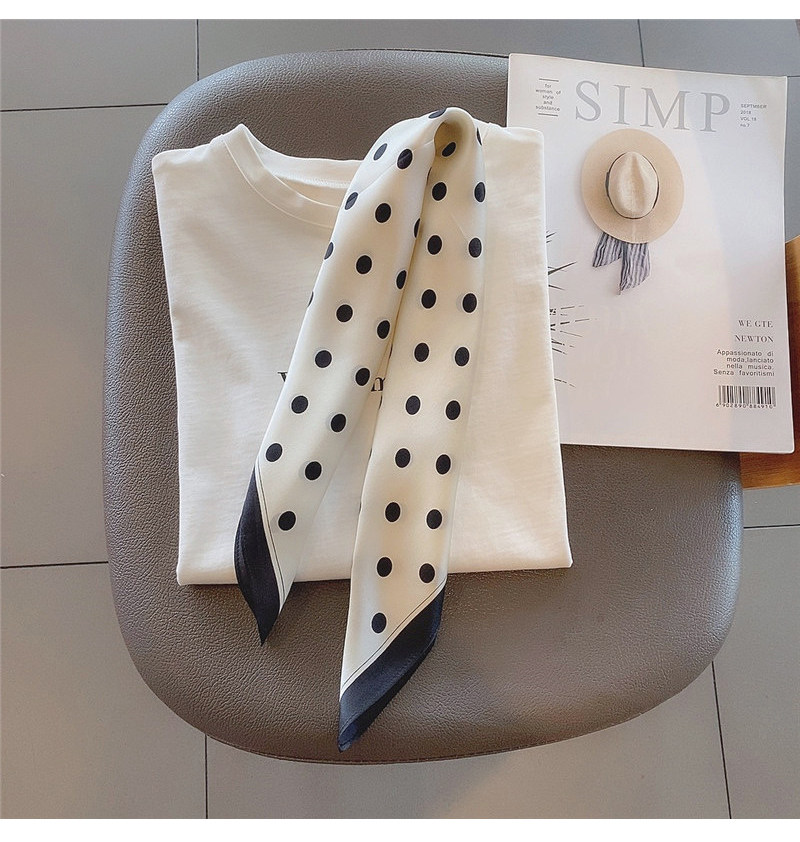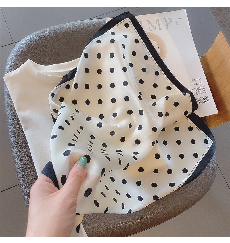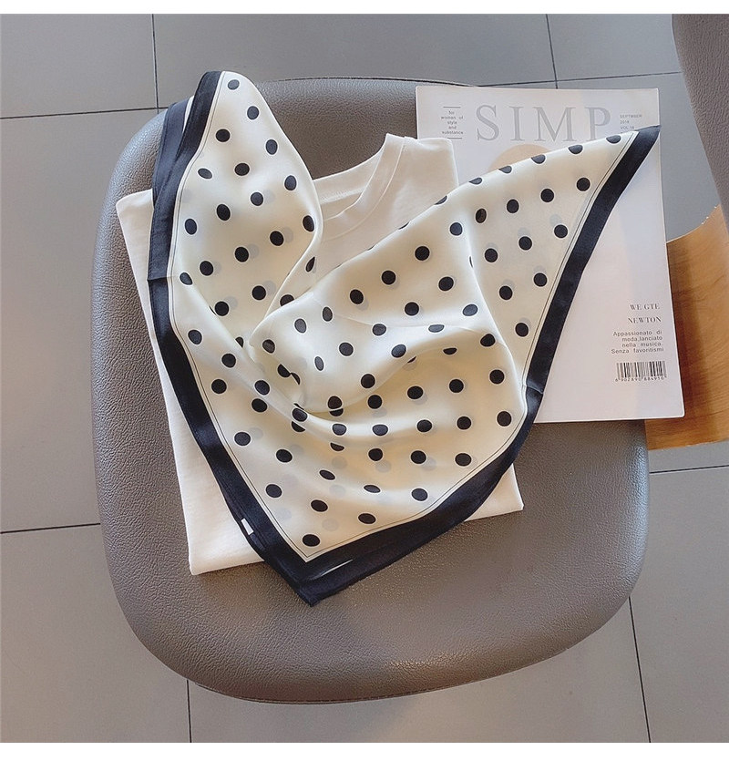 여성용 귀여운 폴카 도트 실크 멀버리 실크 스카프, 다용도 작은 사각형 스카프, 한국식 연령 감소 장난스러운 작은 스카프, 봄 여름스토어 가기