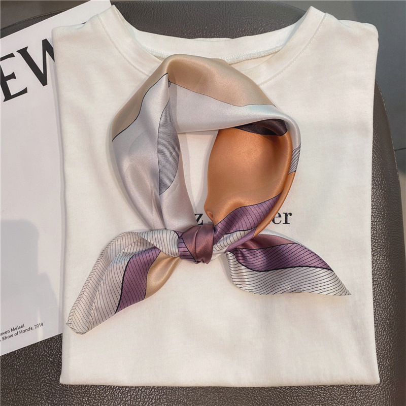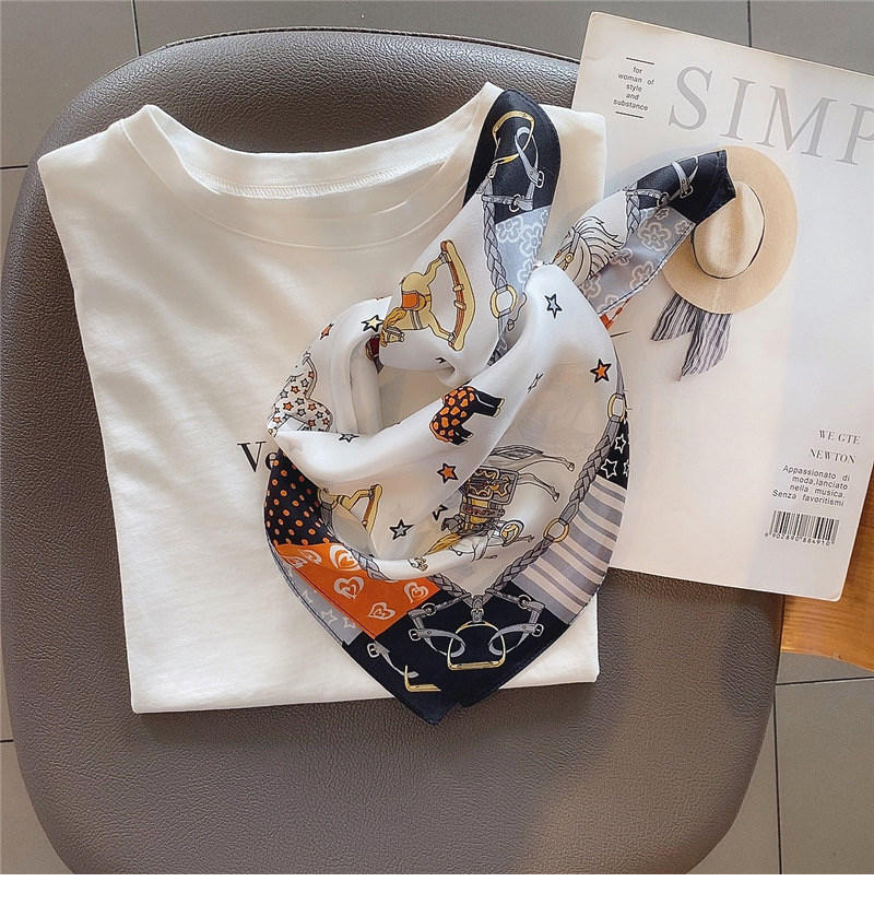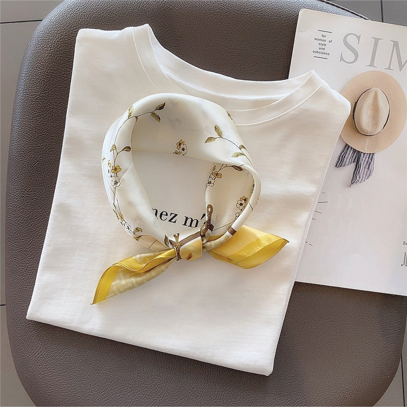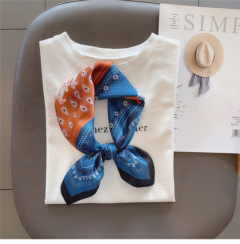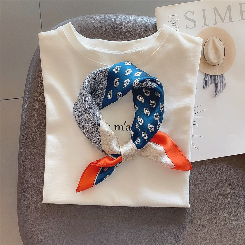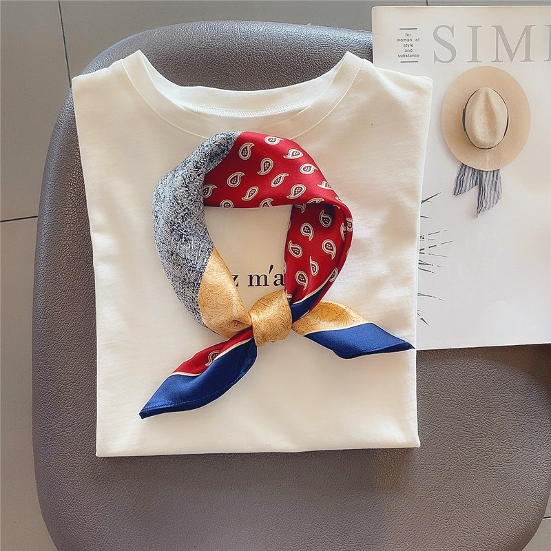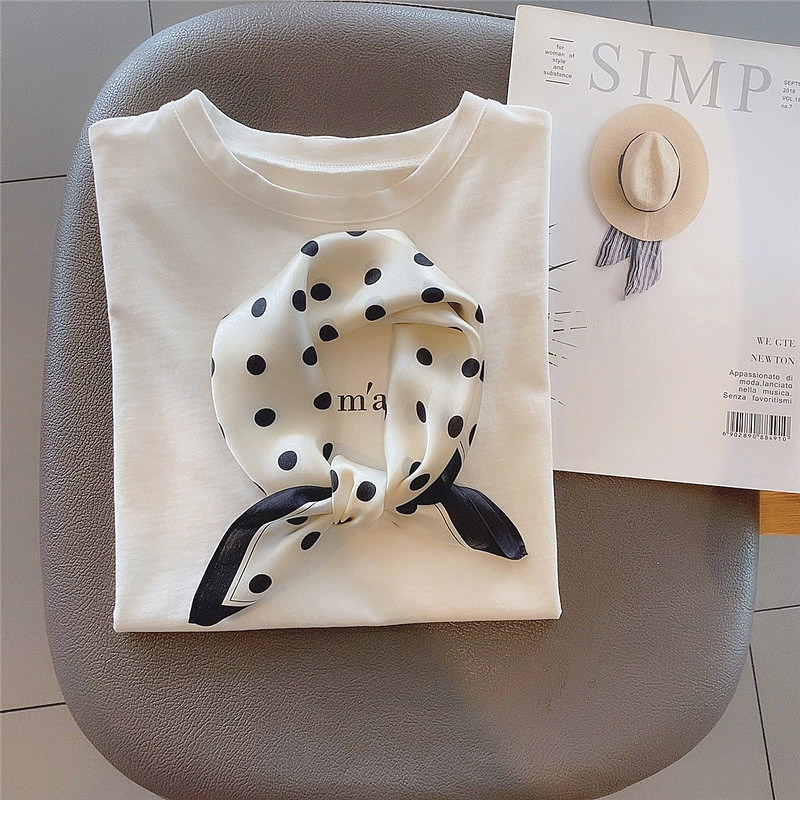 여성용 귀여운 폴카 도트 실크 멀버리 실크 스카프, 다용도 작은 사각형 스카프, 한국식 연령 감소 장난스러운 작은 스카프, 봄 여름스토어 가기