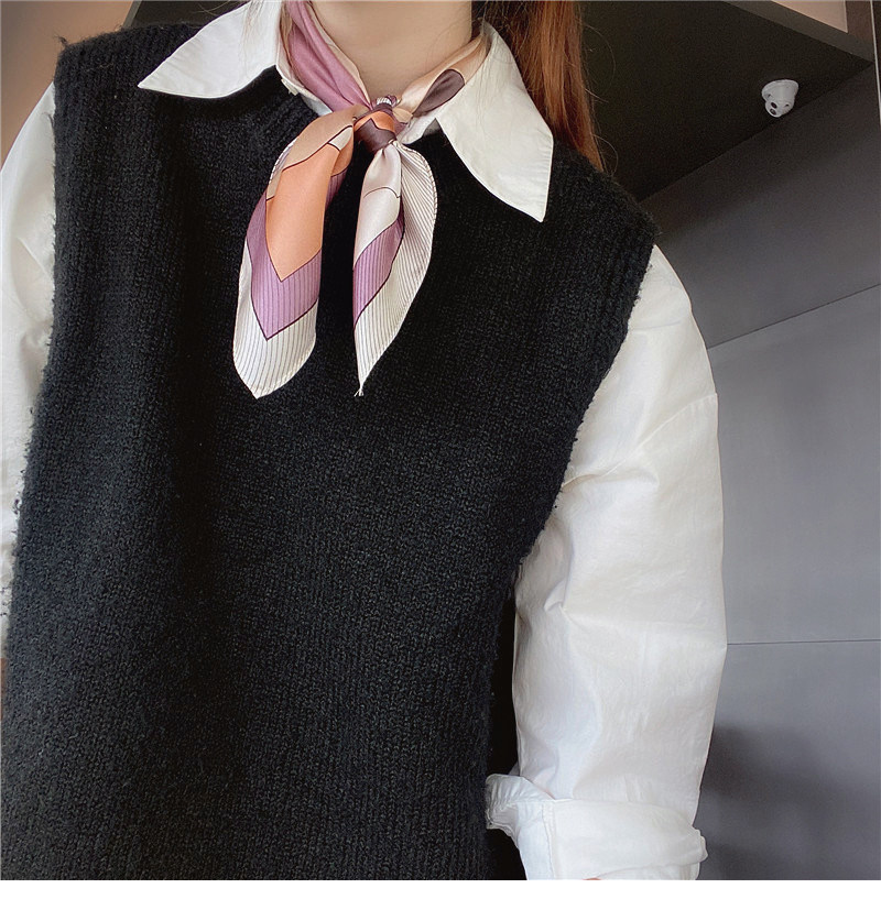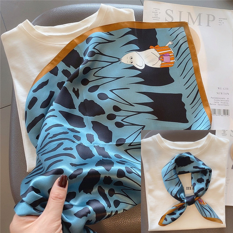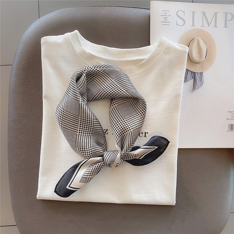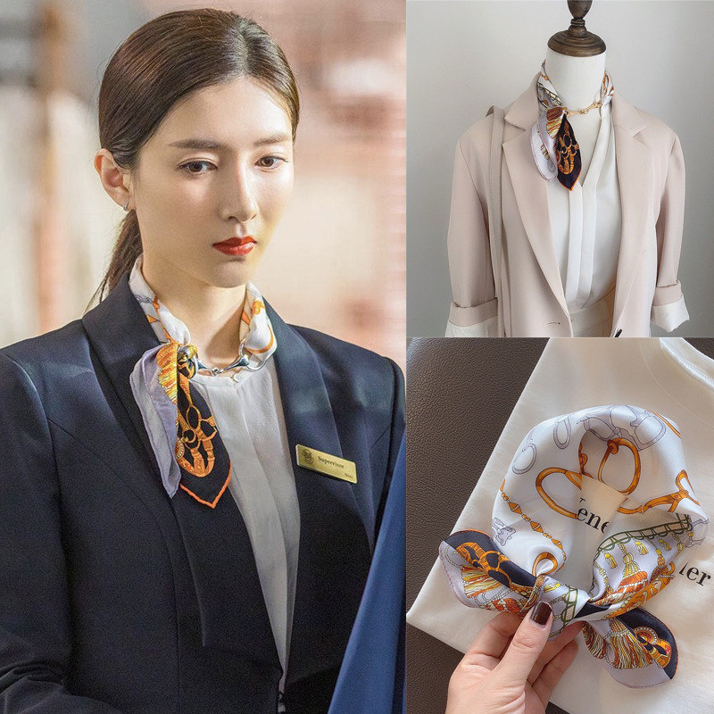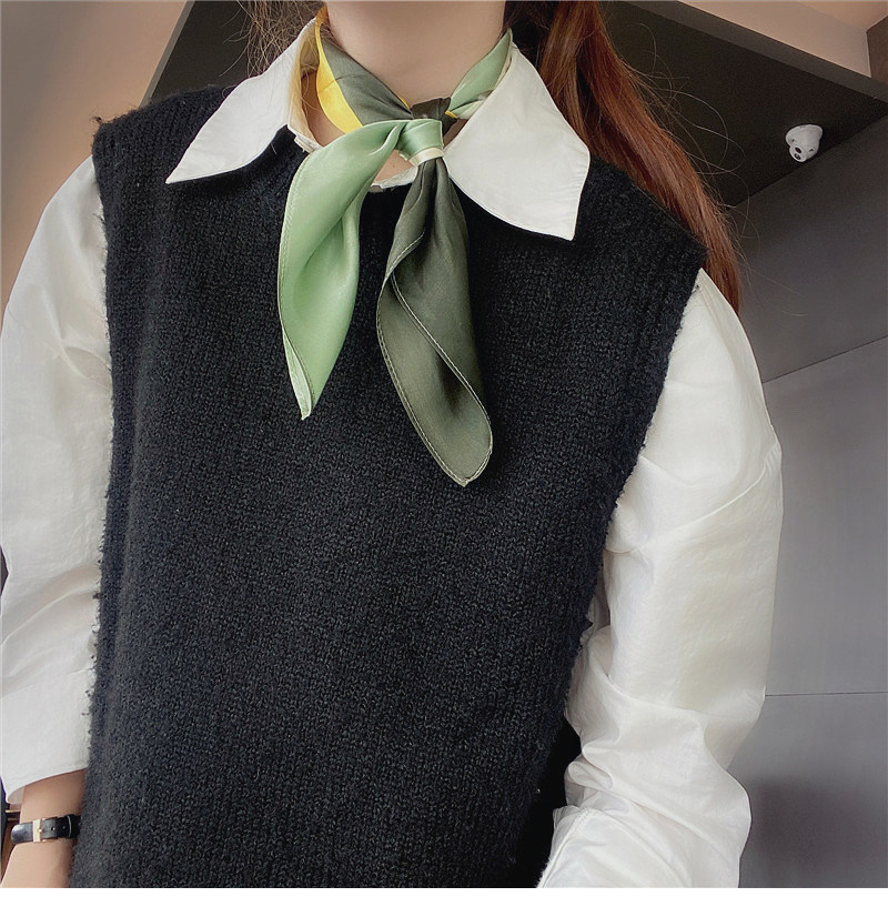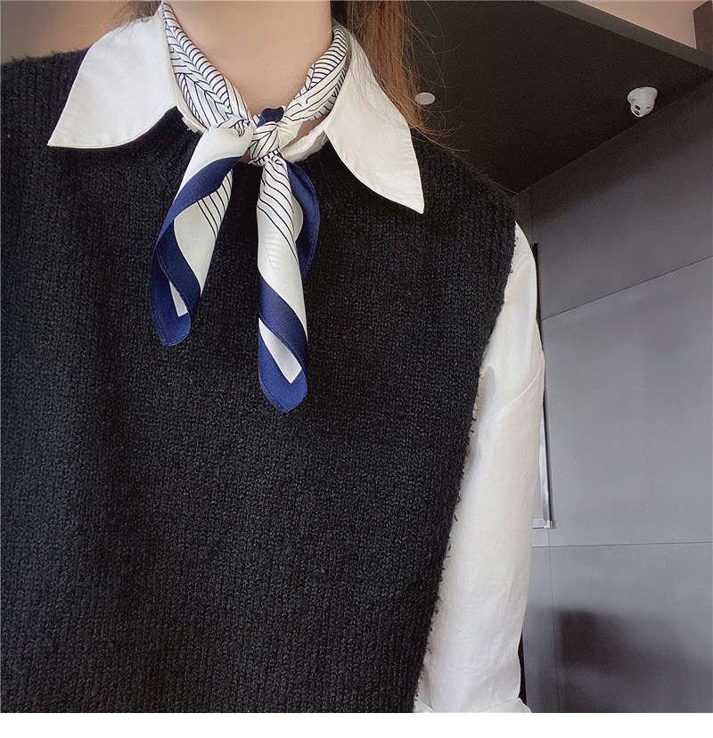 여성용 귀여운 폴카 도트 실크 멀버리 실크 스카프, 다용도 작은 사각형 스카프, 한국식 연령 감소 장난스러운 작은 스카프, 봄 여름스토어 가기