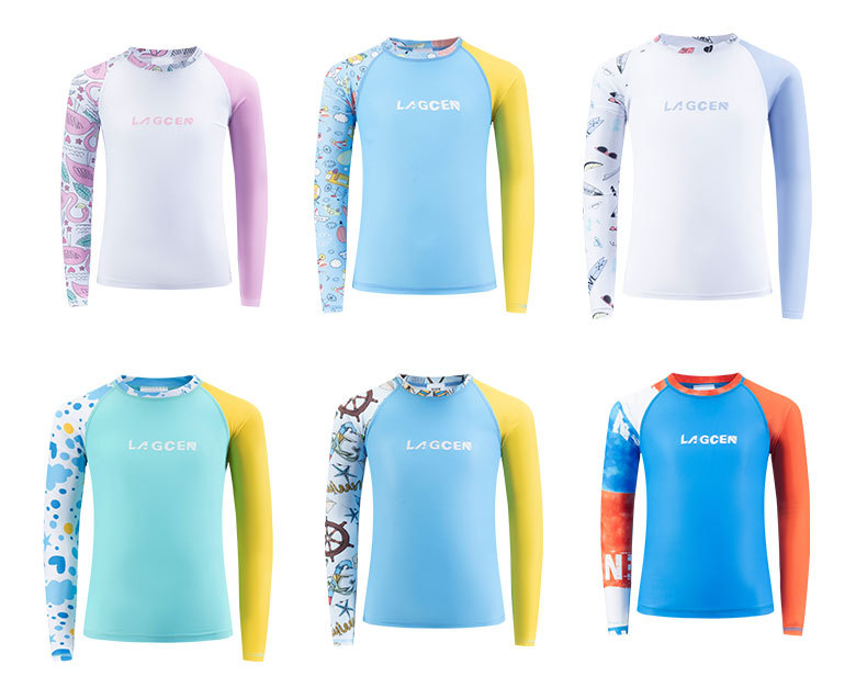 대외 무역 만화 어린이 수영복 소년 소녀 수영복 긴팔 해변 의류 중소형 어린이를위한 원피스 서핑 슈트스토어 가기