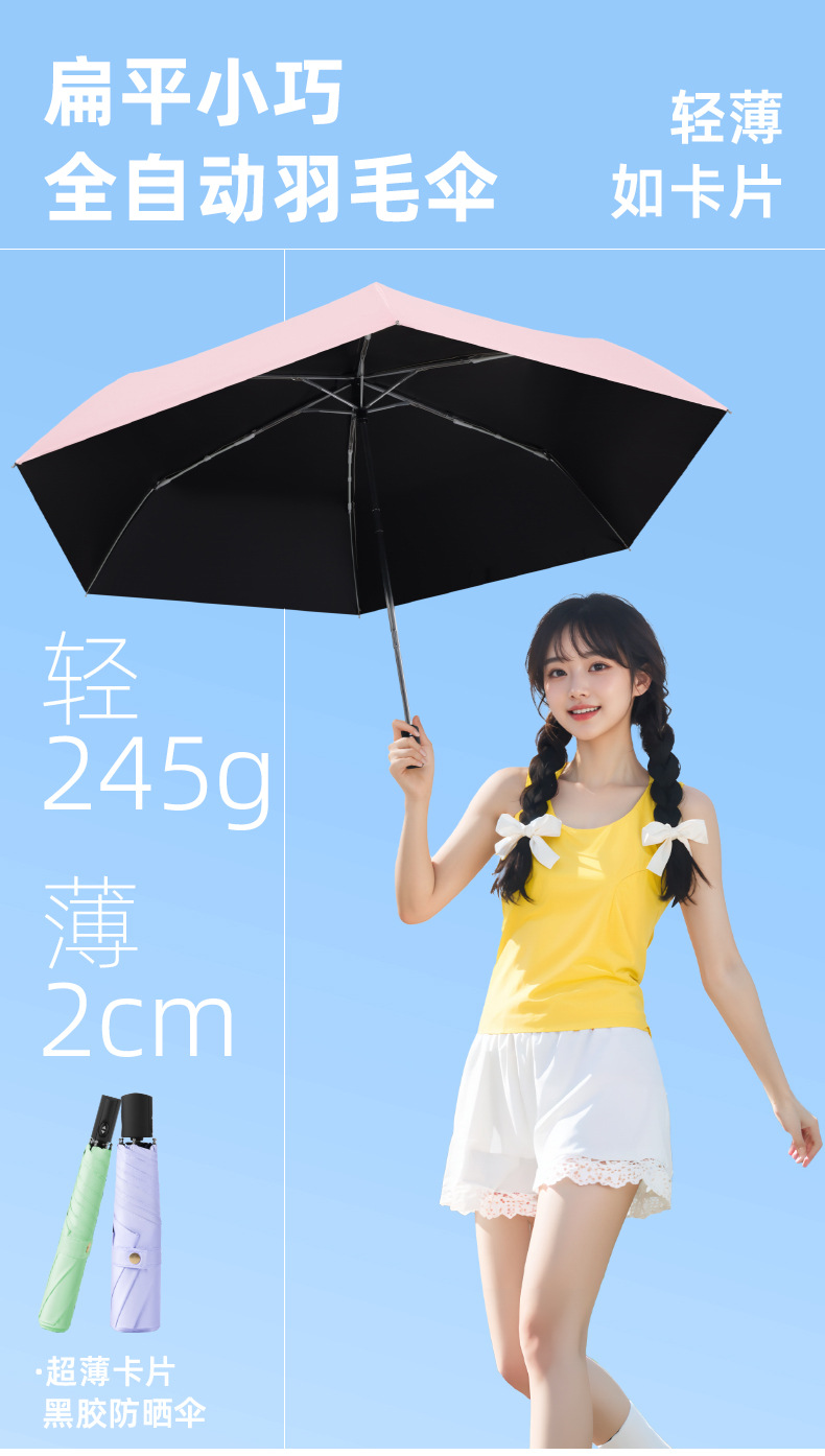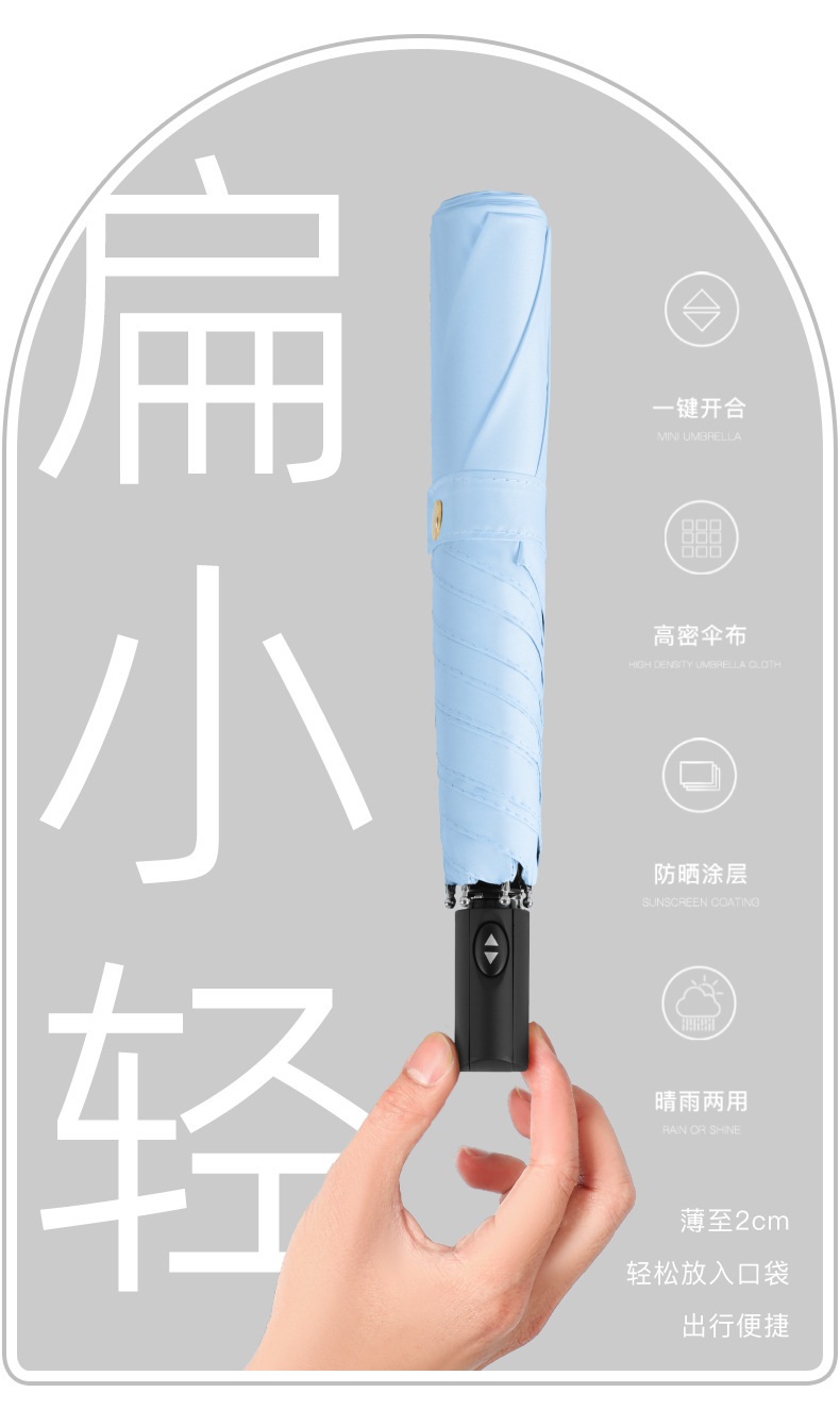 70% off 완전 자동 플랫 우산 초경량 및 초박형 자동 플랫 70% off 자외선 차단 우산 차양 비닐 비 또는 빛 우산