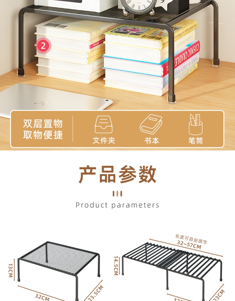 데스크탑 수납선반, 다층선반, 철제 수납선반, 책상 상판, 이중층 높이선반, 간이 캐비닛 칸막이선반