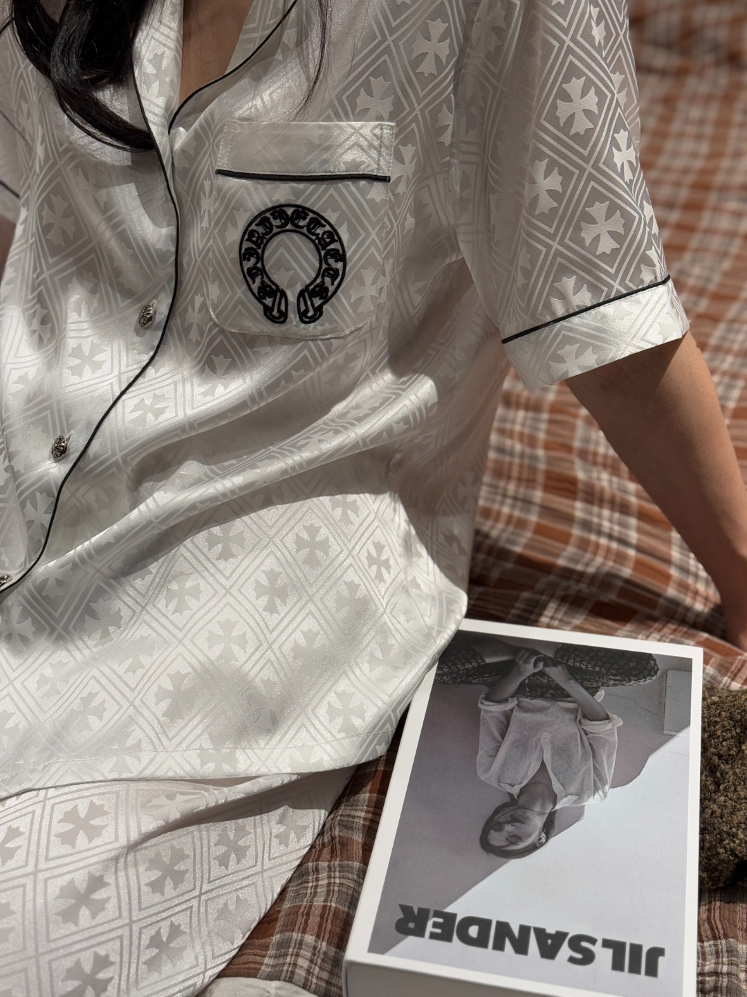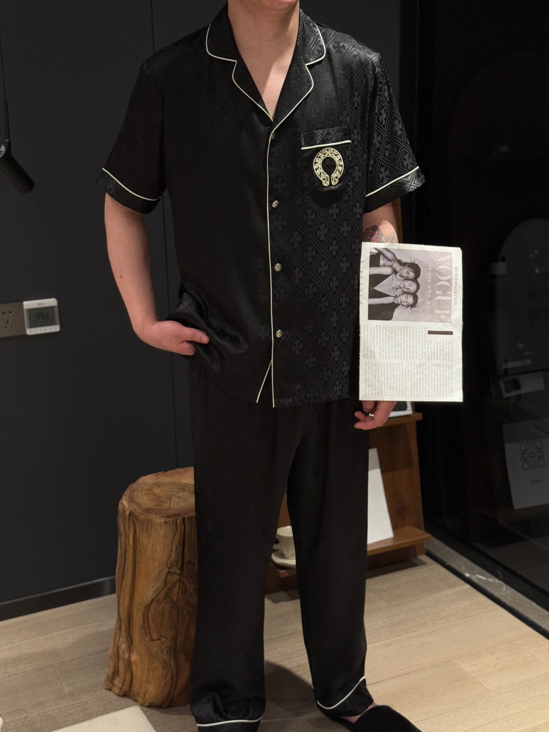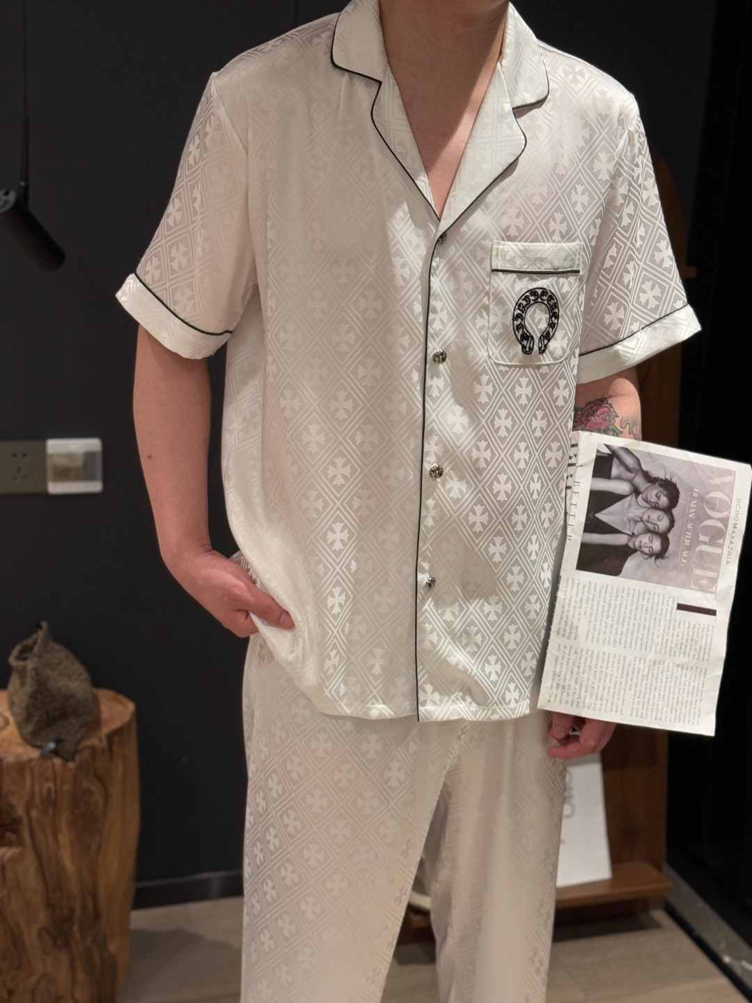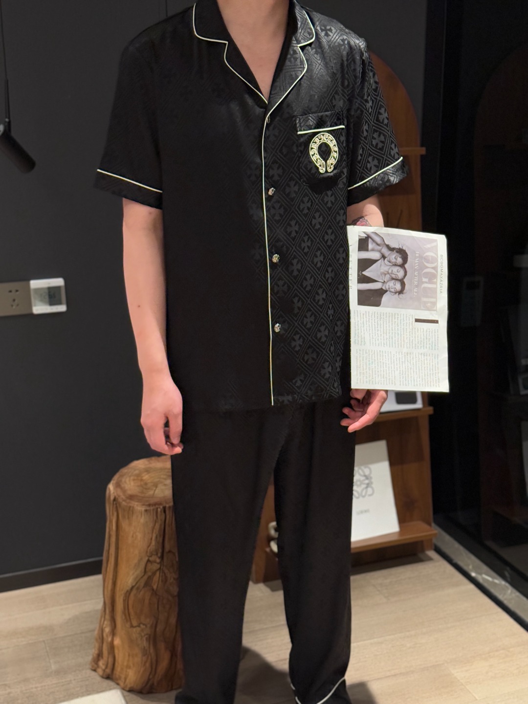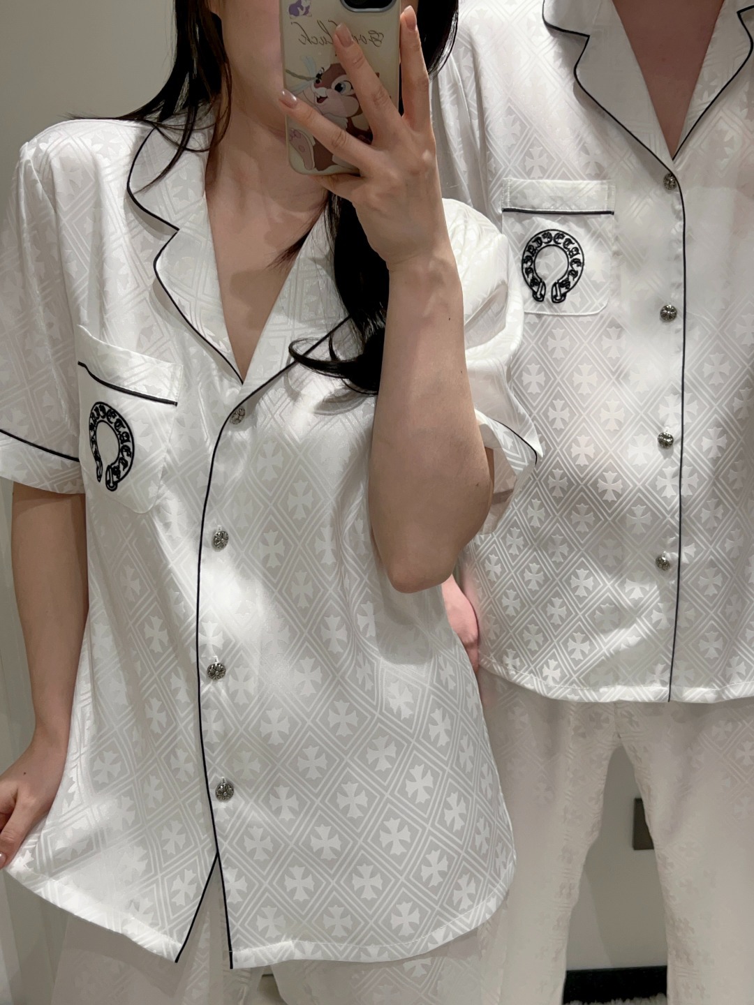 아이스 실크 커플 잠옷, 고급 자카드 라이트 럭셔리 봄 여름 남성 및 여성 실크 Douyin 인기 새 홈웨어