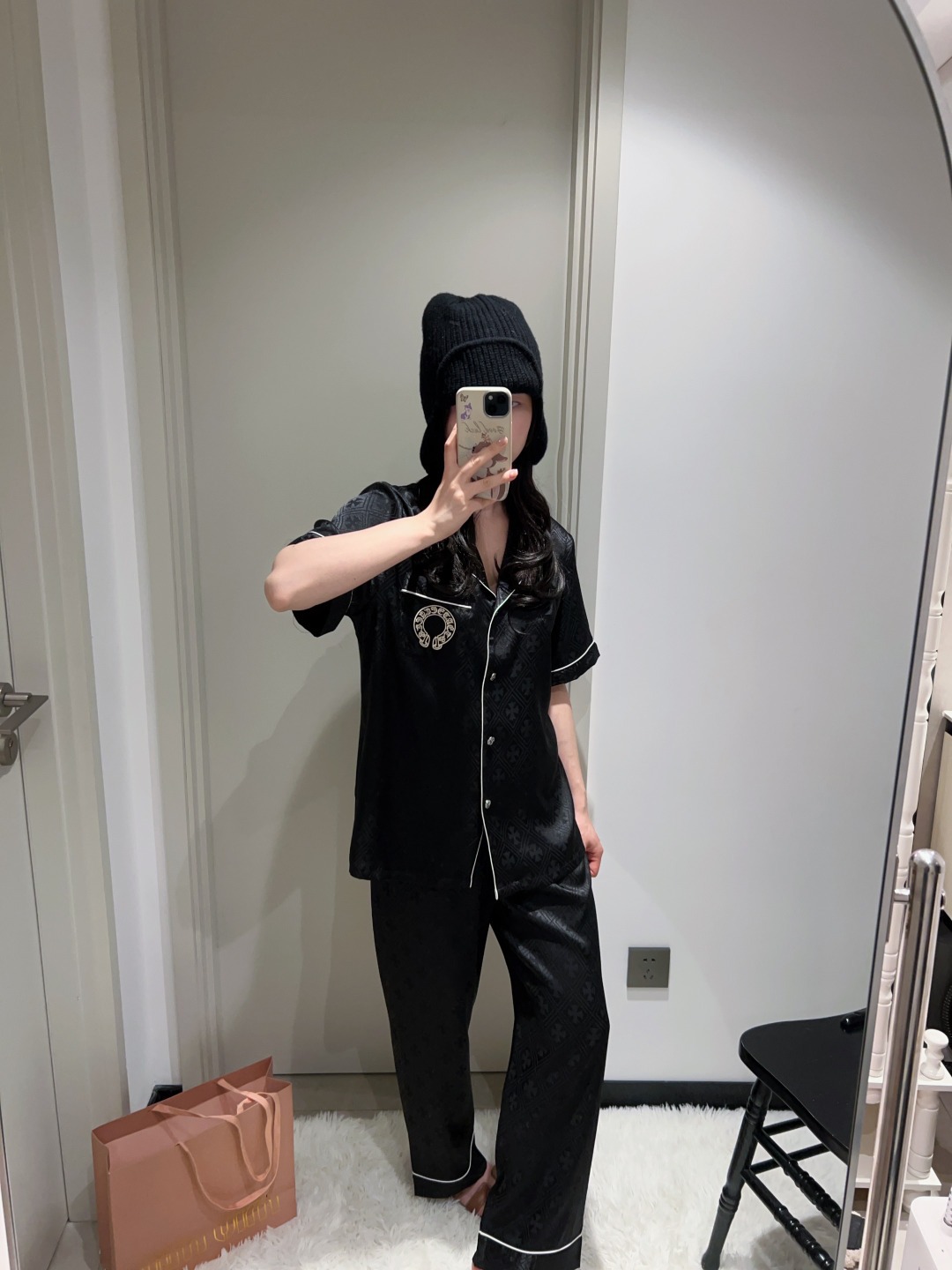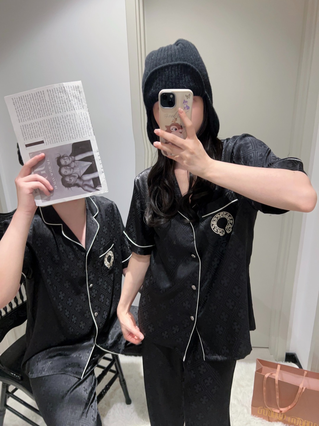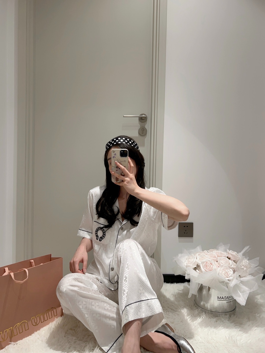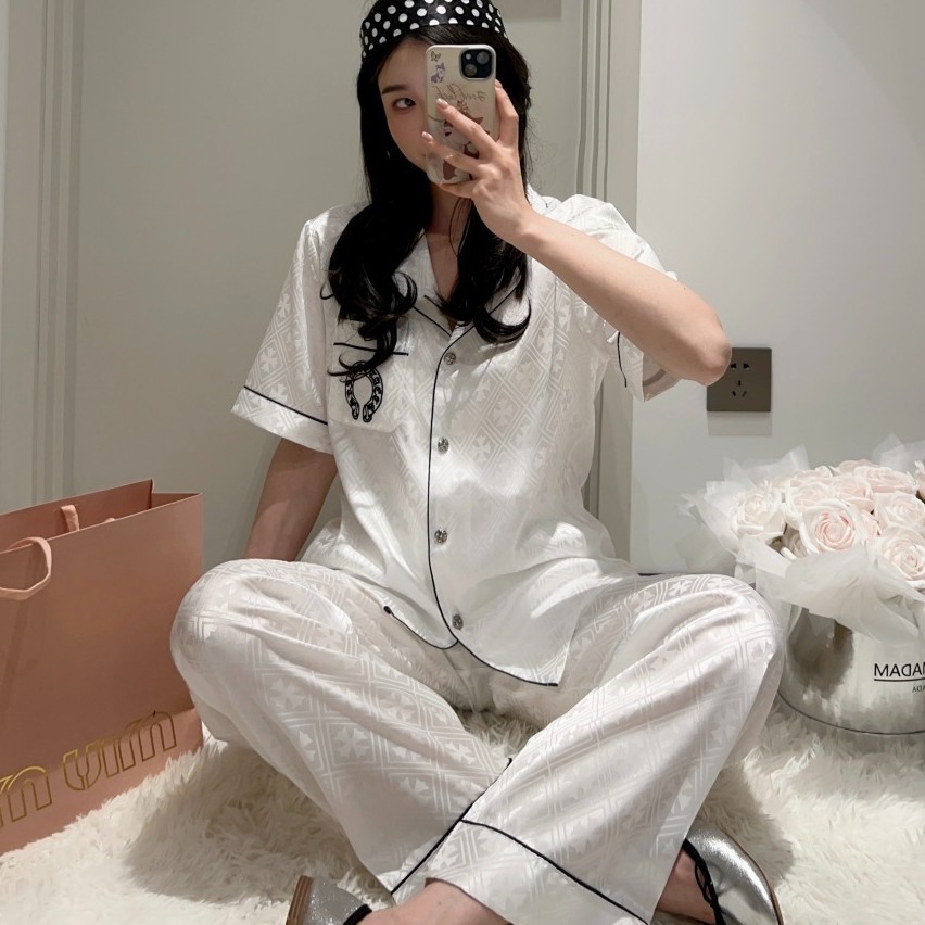 아이스 실크 커플 잠옷, 고급 자카드 라이트 럭셔리 봄 여름 남성 및 여성 실크 Douyin 인기 새 홈웨어스토어 가기