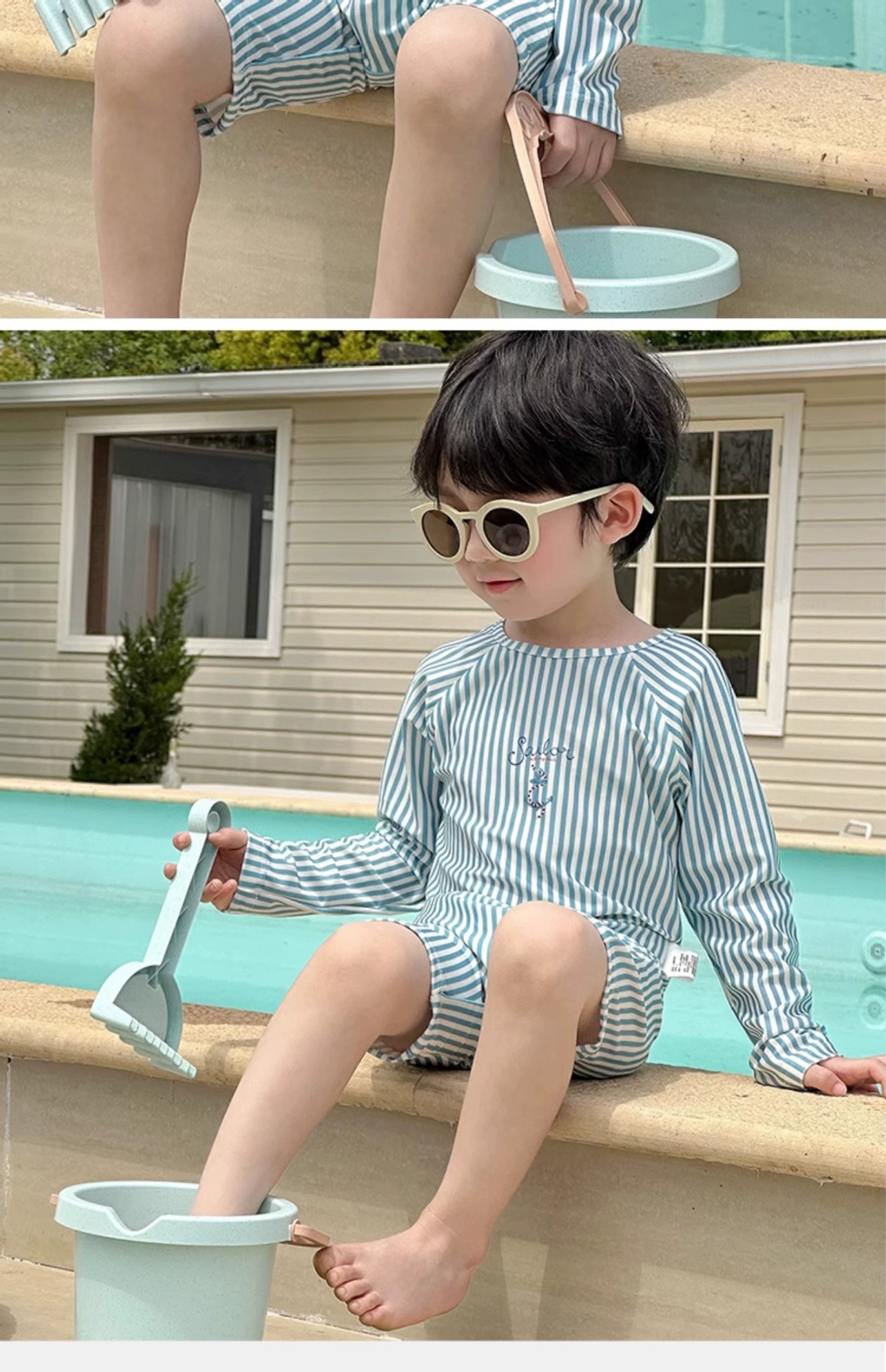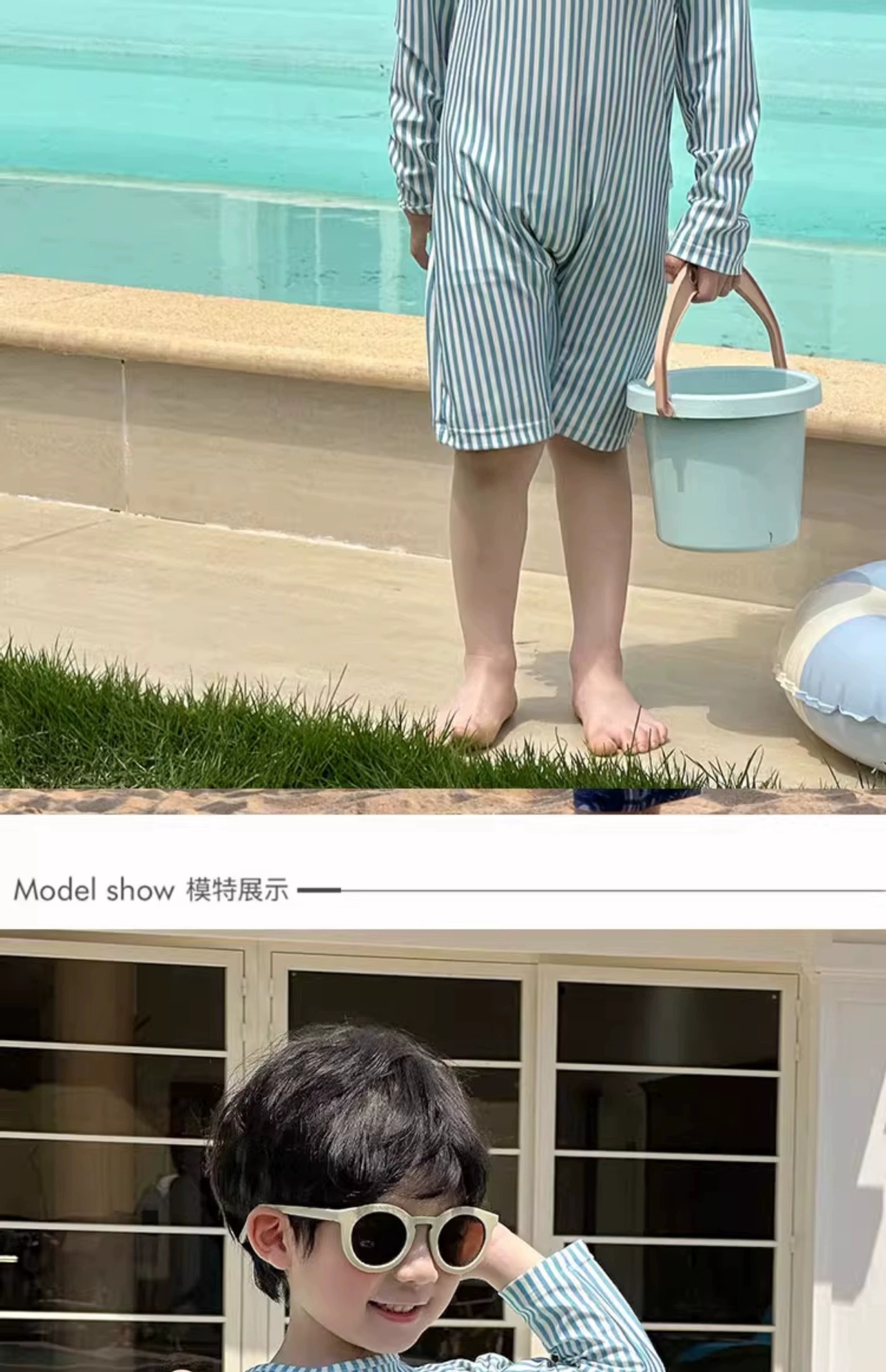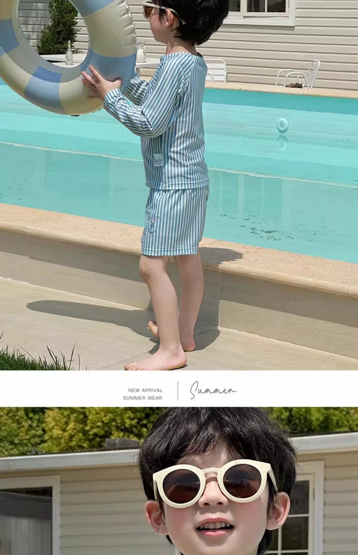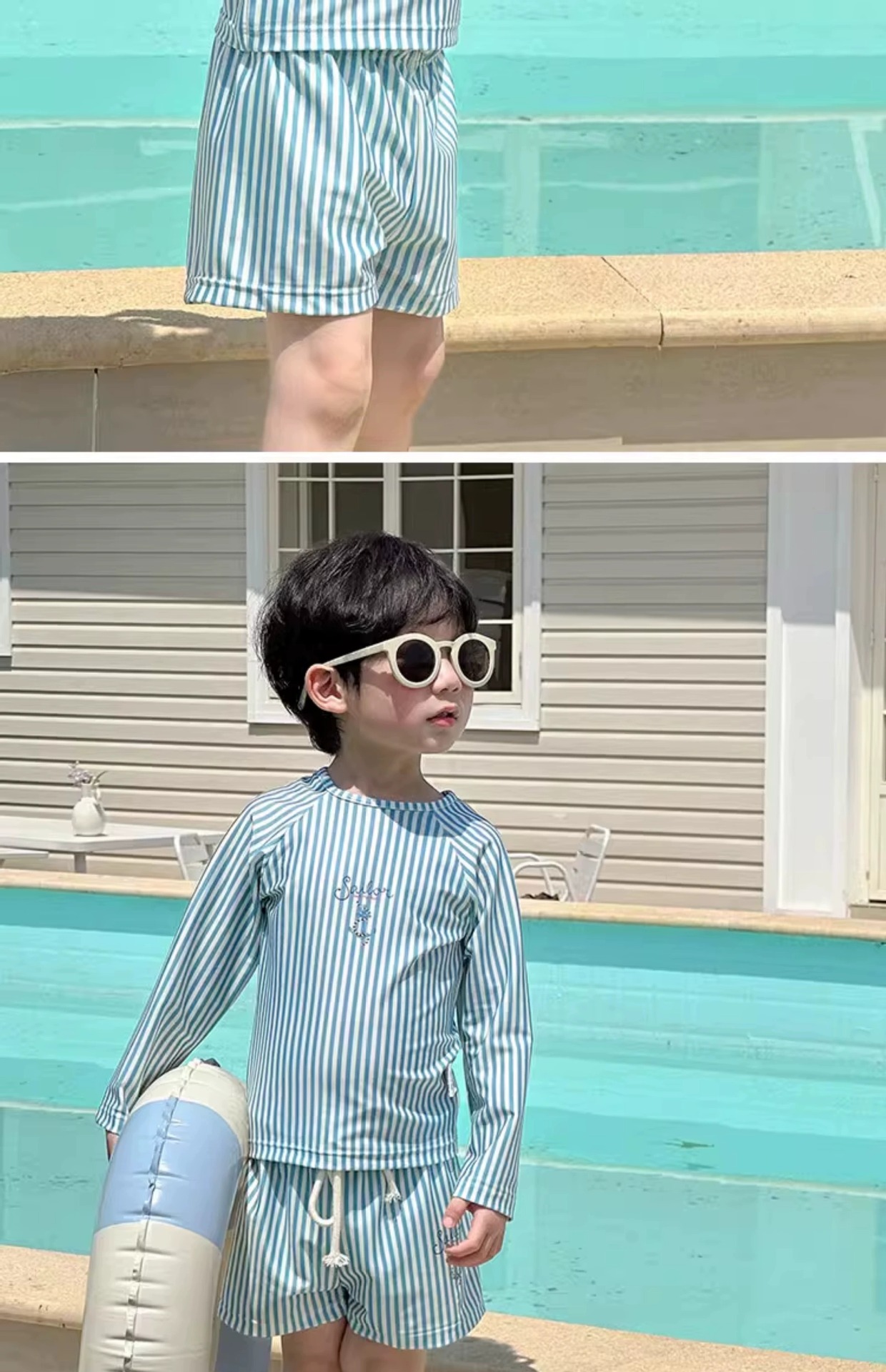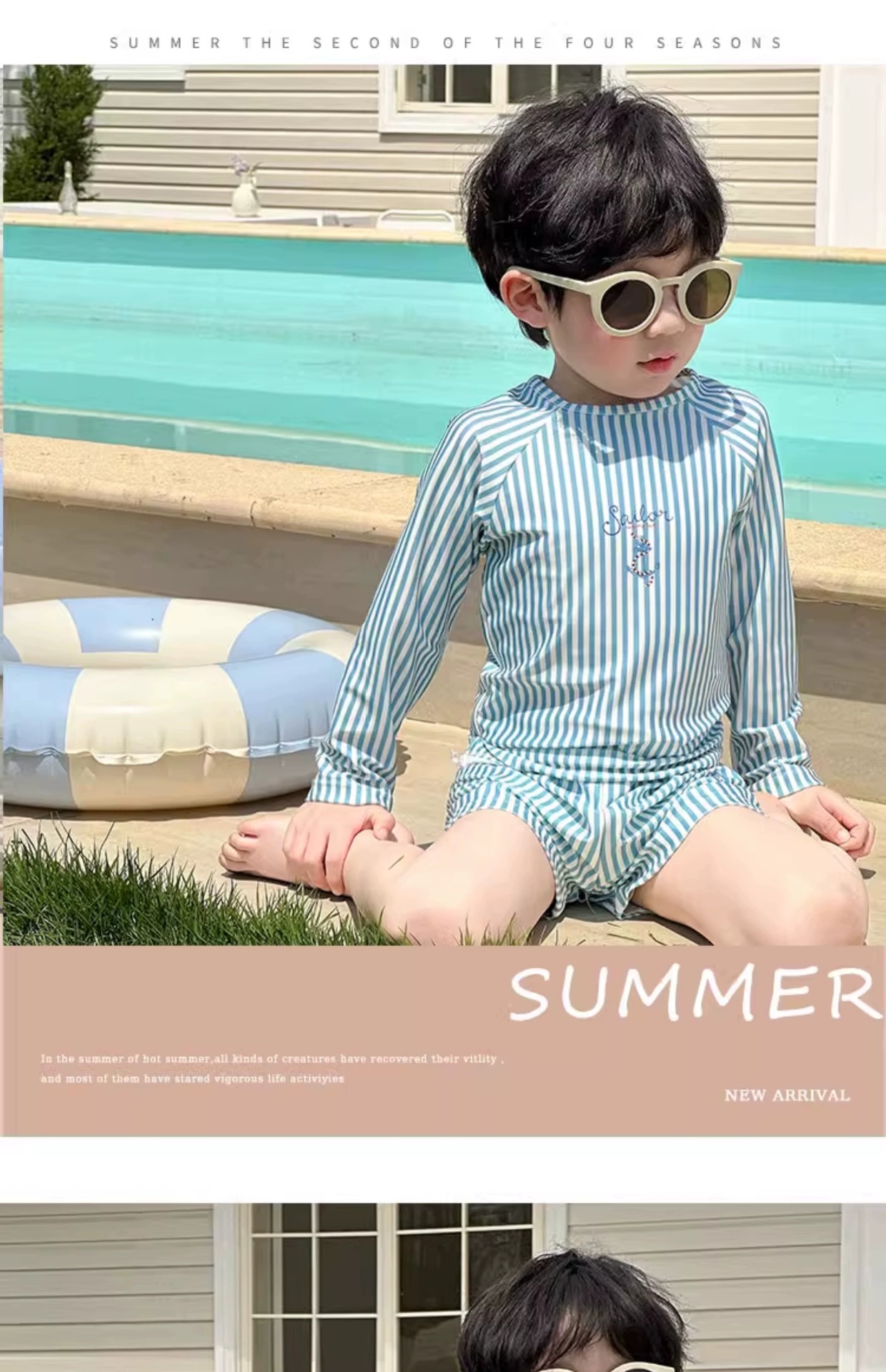 신형 신속 건조 선스크린 보이즈 수영복 중형 어린이 줄무늬 분할 수영복 아기 어린이 긴팔 수영복