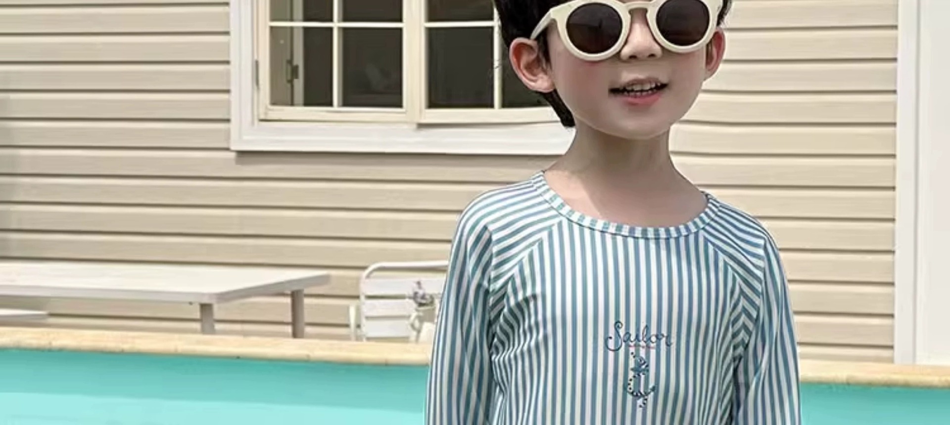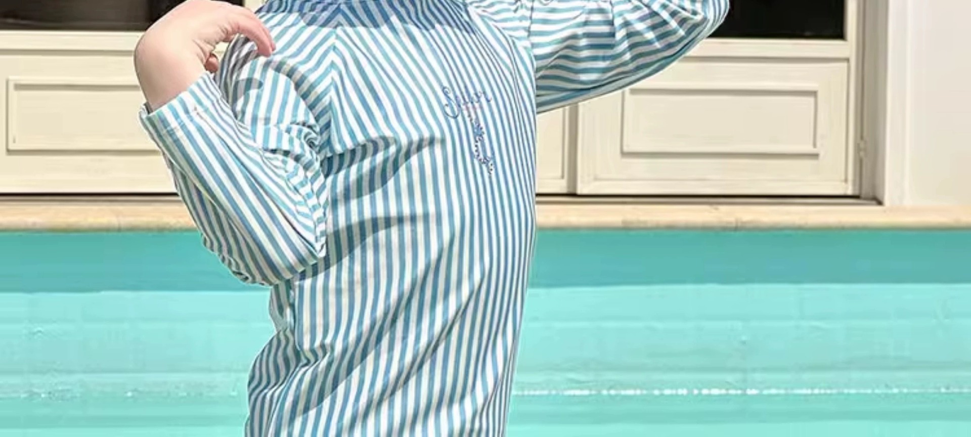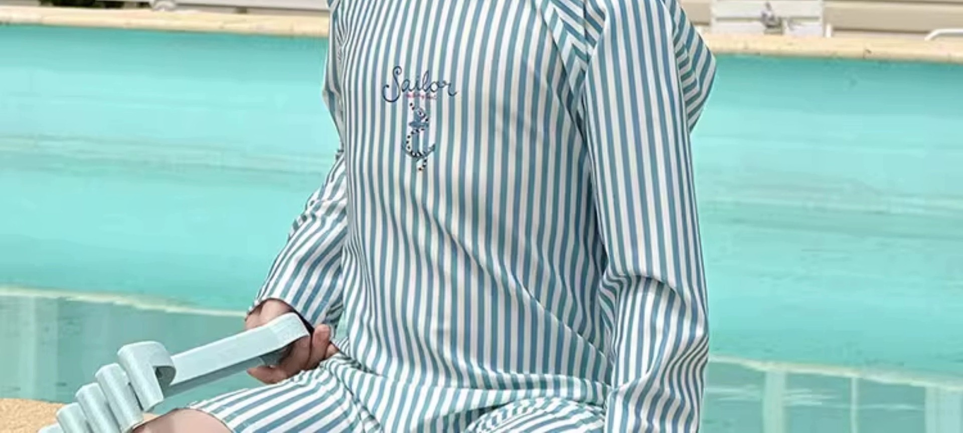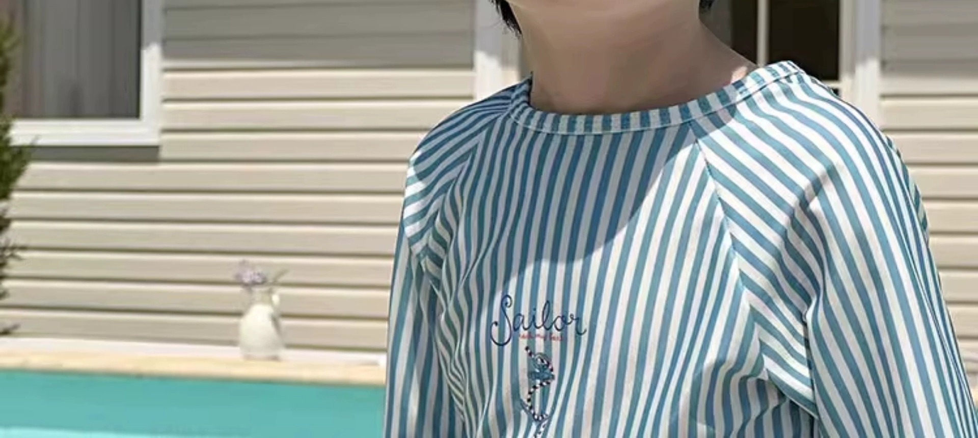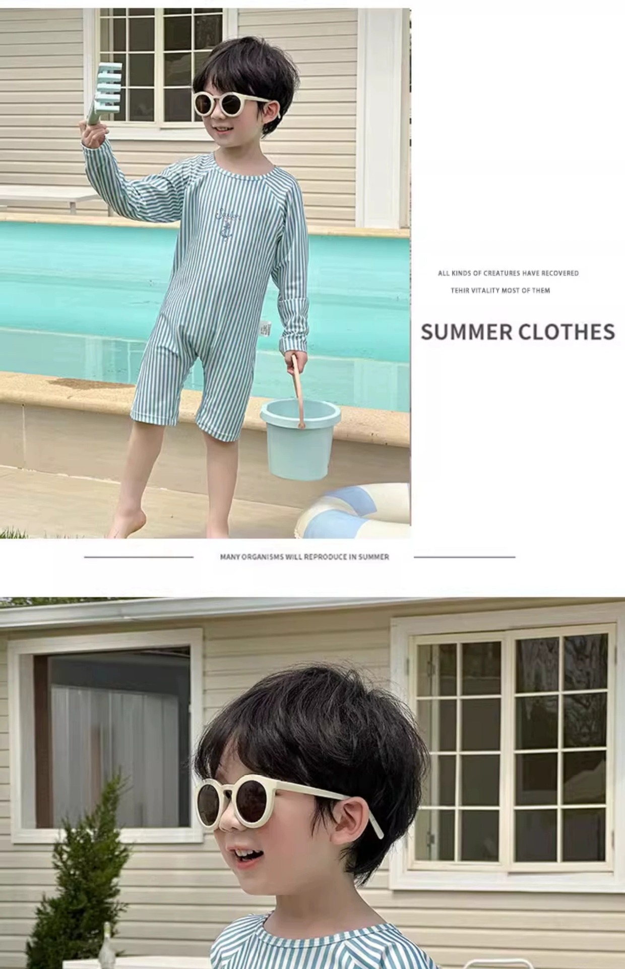 신형 신속 건조 선스크린 보이즈 수영복 중형 어린이 줄무늬 분할 수영복 아기 어린이 긴팔 수영복