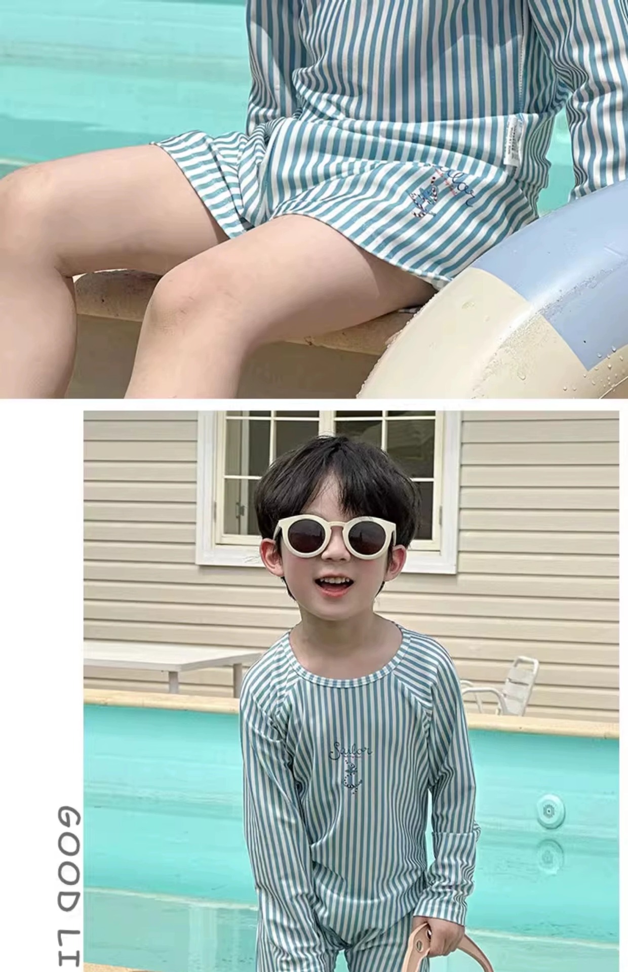신형 신속 건조 선스크린 보이즈 수영복 중형 어린이 줄무늬 분할 수영복 아기 어린이 긴팔 수영복스토어 가기