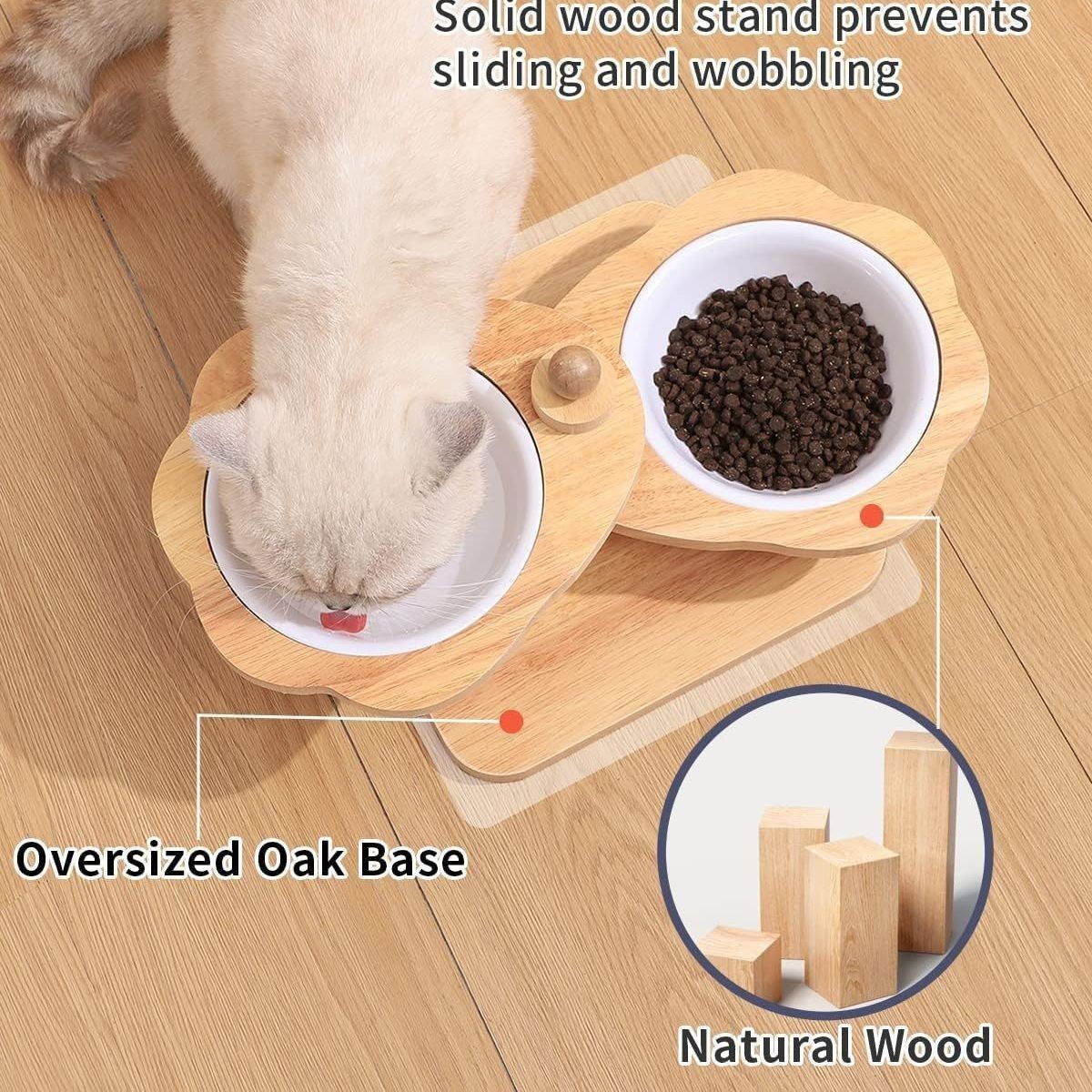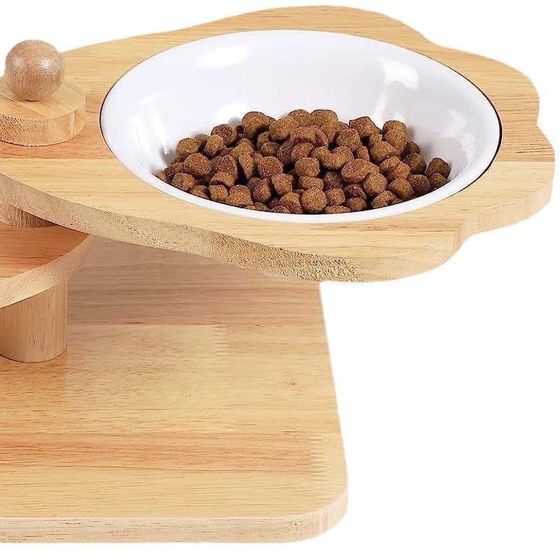 새로운 나무 먹이 랙 고양이와 개 그릇 랙 홈 애완 동물 고양이 먹이 그릇 회전 다기능 나무 피더스토어 가기
