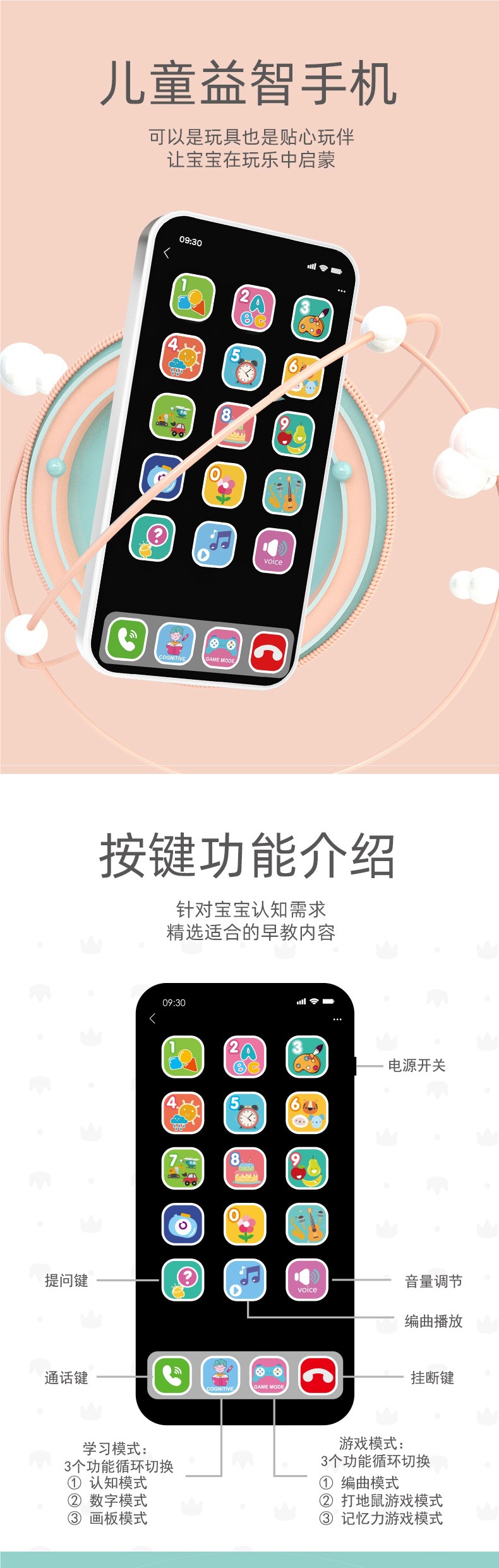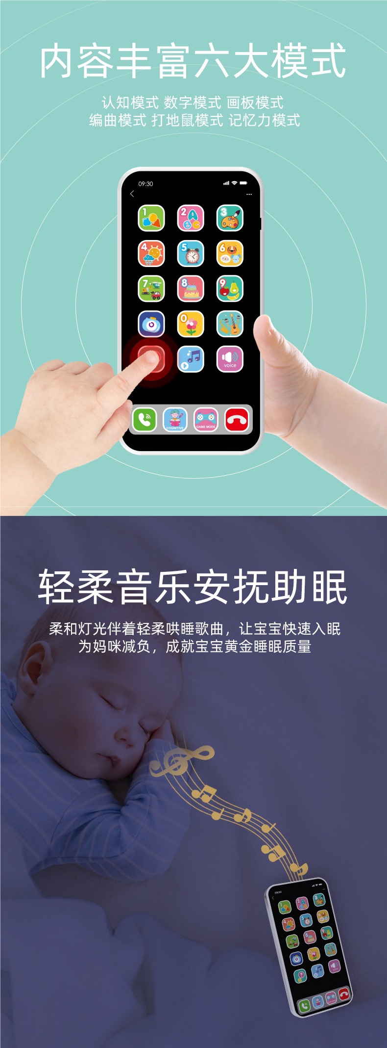아기 교육 조기 교육 장난감 휴대 전화 음악 전화 어린이 다중 모드 터치 스크린 시뮬레이션 Apple 휴대 전화 모델스토어 가기