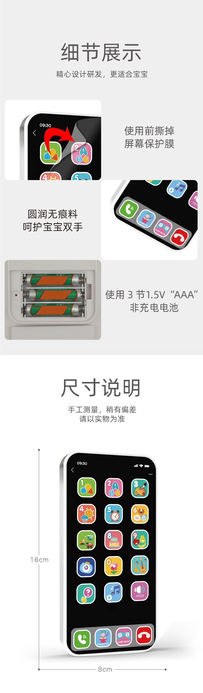 아기 교육 조기 교육 장난감 휴대 전화 음악 전화 어린이 다중 모드 터치 스크린 시뮬레이션 Apple 휴대 전화 모델