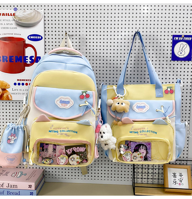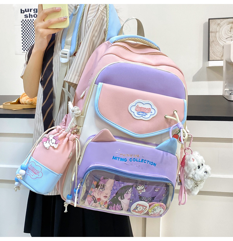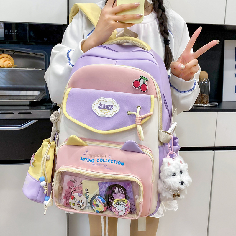 새로운 도파민 한국 스타일 신선한 스쿨백 올 매치 달콤한 귀여운 고양이 배낭 캐주얼 통근 병합 가방