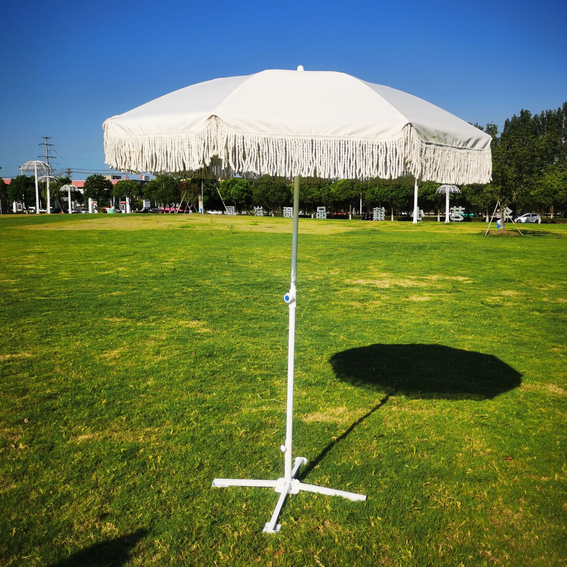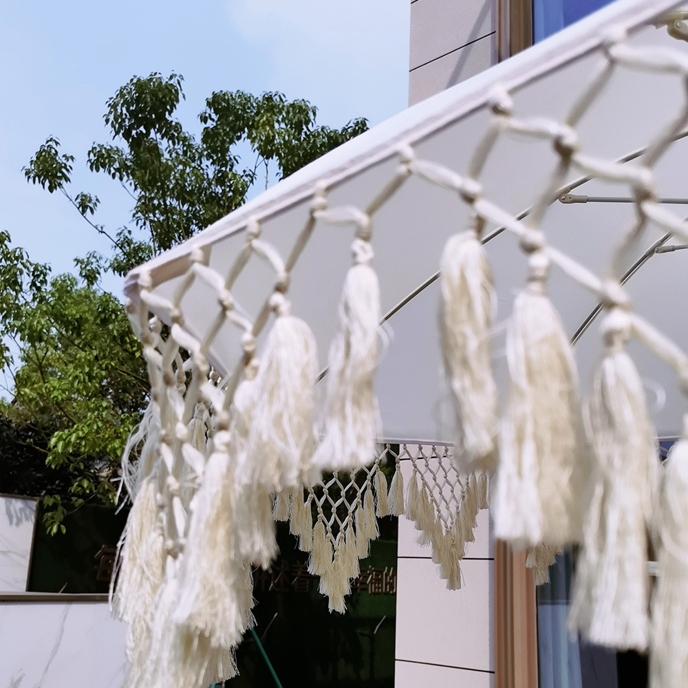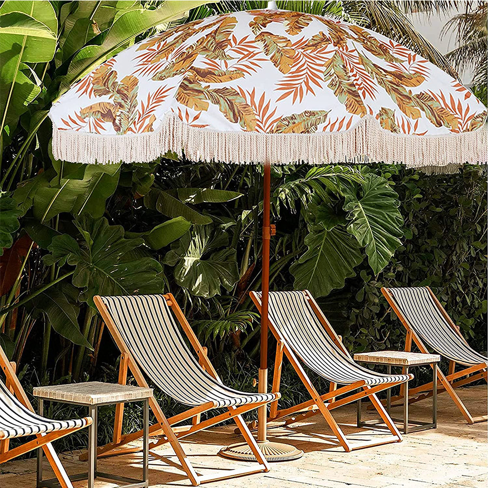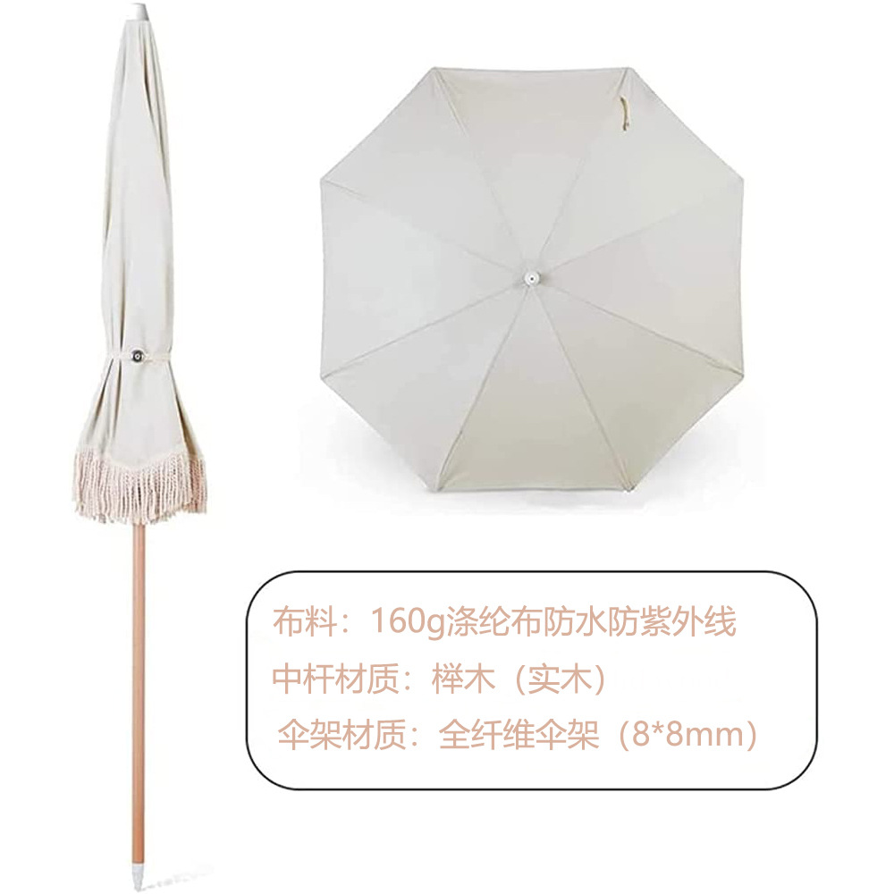 야외 프린지 우산 보헤미안 해변 우산 빈티지 프린지 레이스 나무 인쇄 안뜰 햇빛