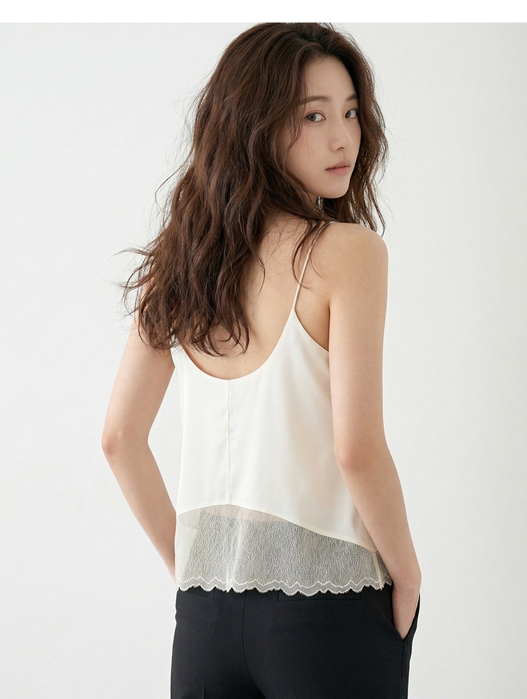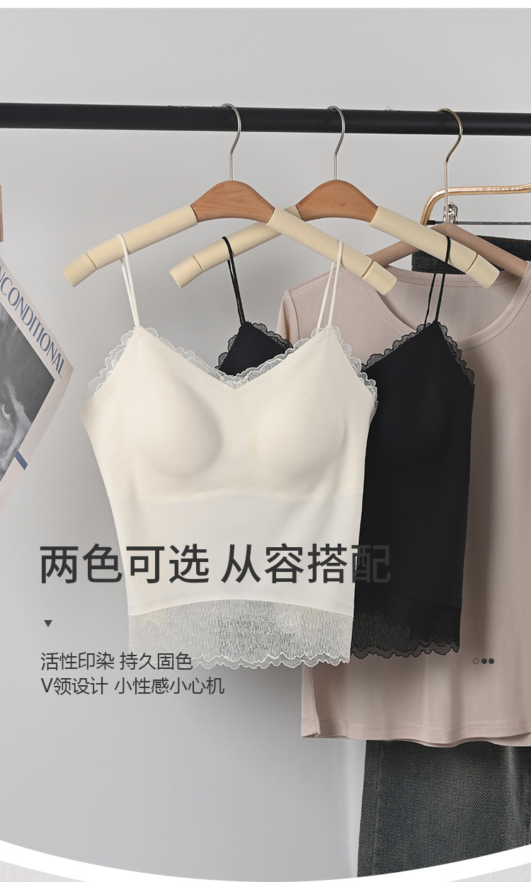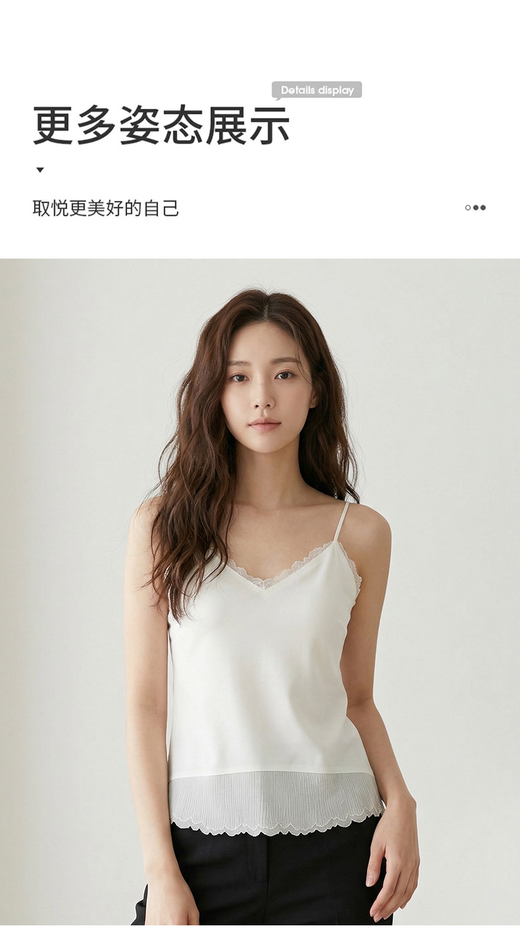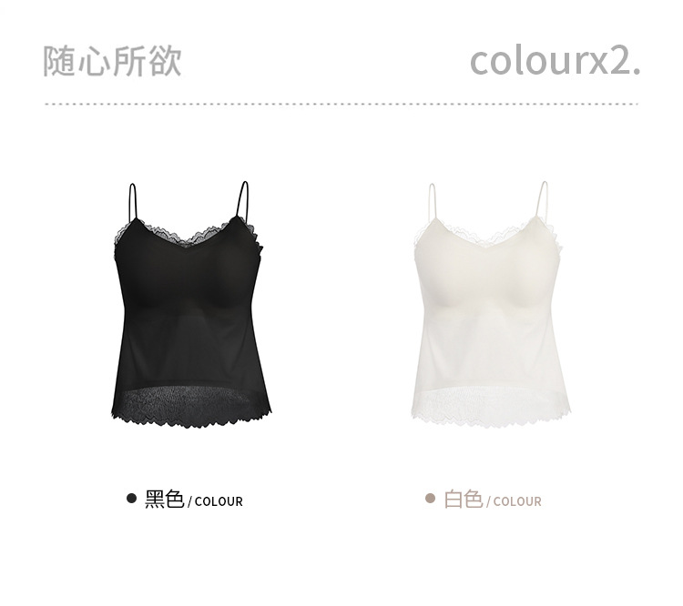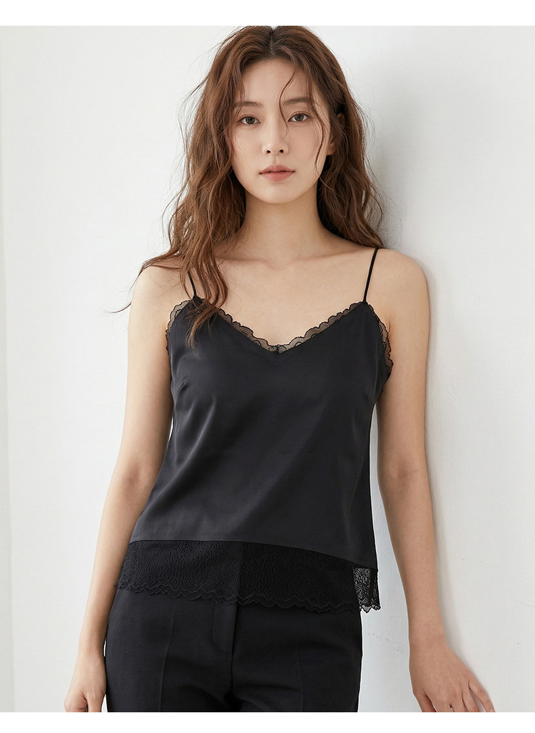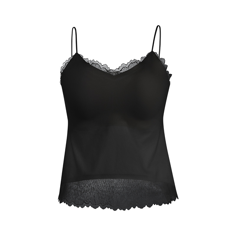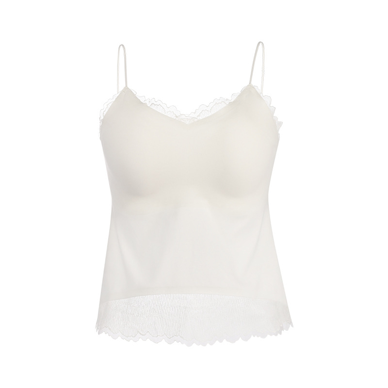 Guolian 실크 브라 슬링 올인원 조끼 멀버리 실크 스몰 브이넥 레이스 심리스 슬링