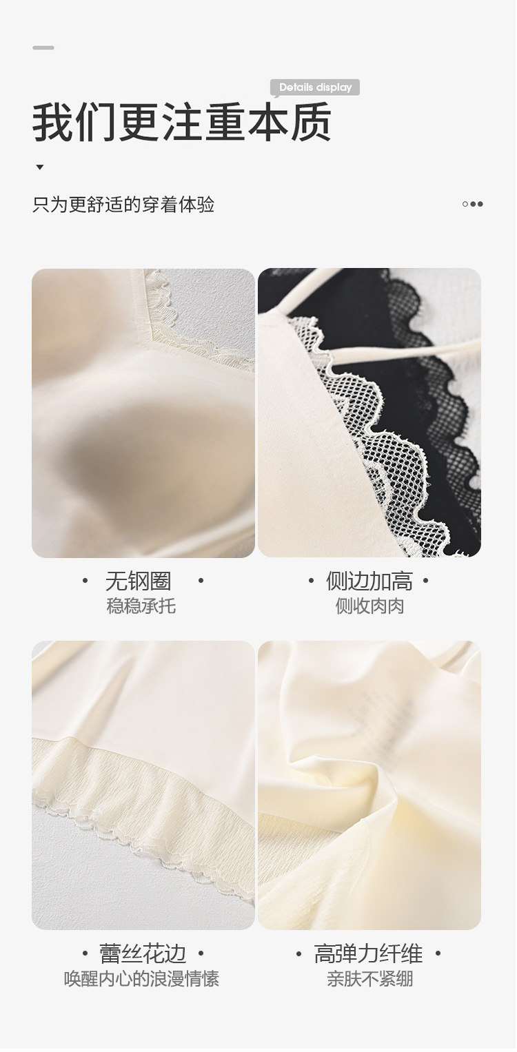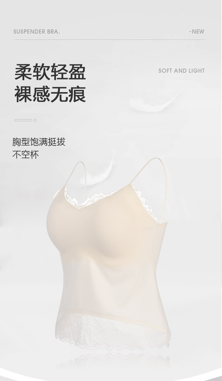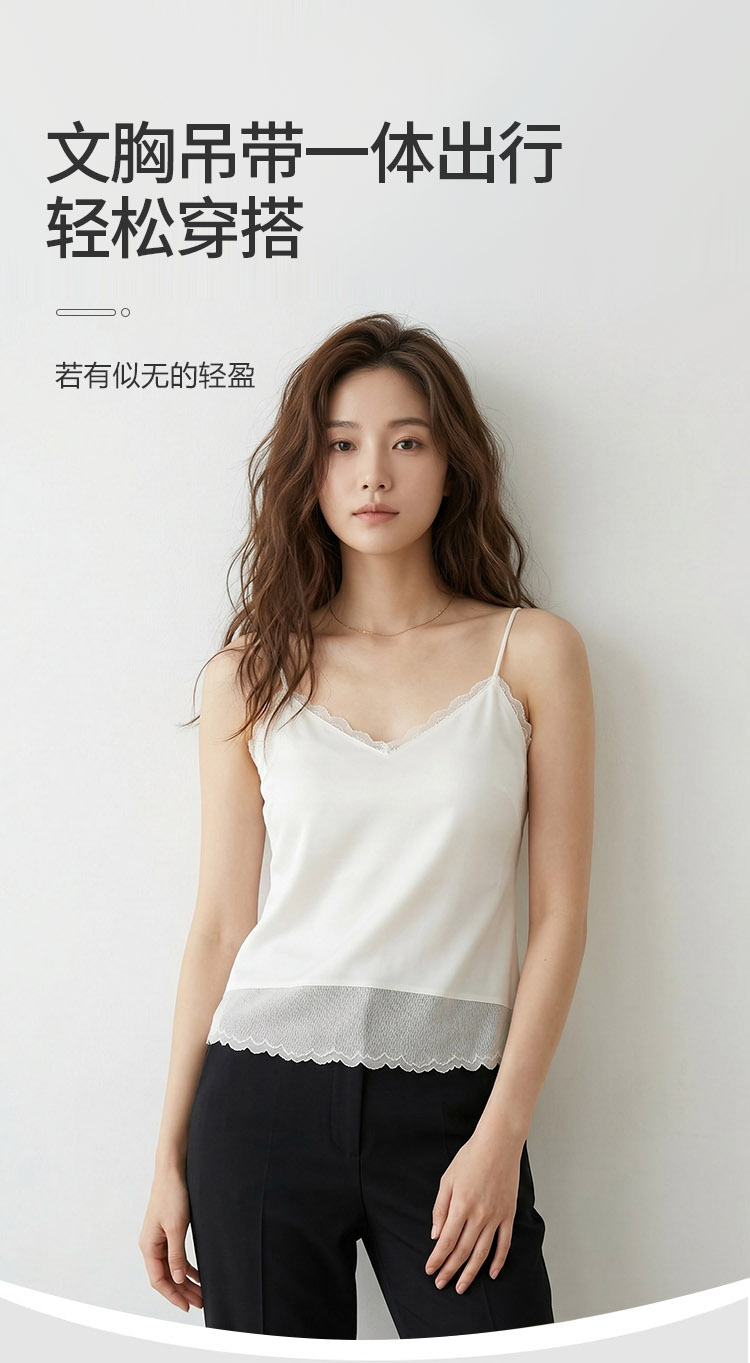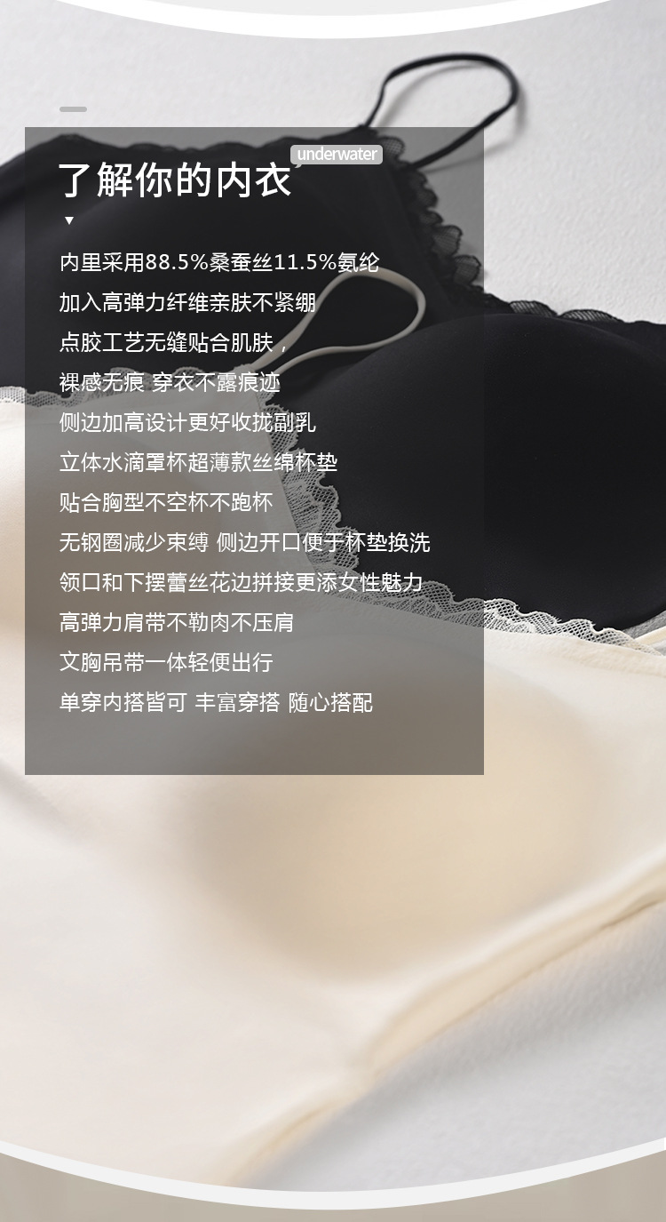 Guolian 실크 브라 슬링 올인원 조끼 멀버리 실크 스몰 브이넥 레이스 심리스 슬링스토어 가기