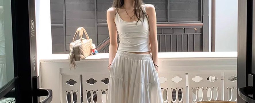 [오리지널 레시피] 올해 유행하는 드레이프 케이크 스커트, 키 작은 분들을 위한 하이웨이스트 슬리밍 A라인 스커트스토어 가기
