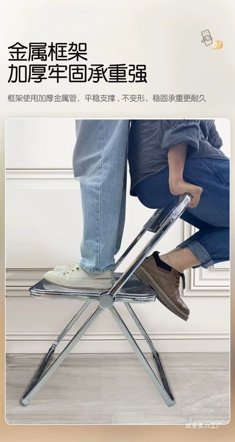 패션 Ins 의자 사이버 인기 메이크업 의자 사진 의자 휴대용 홈 접히는 의자 아크릴 다이닝 의자 투명 의자