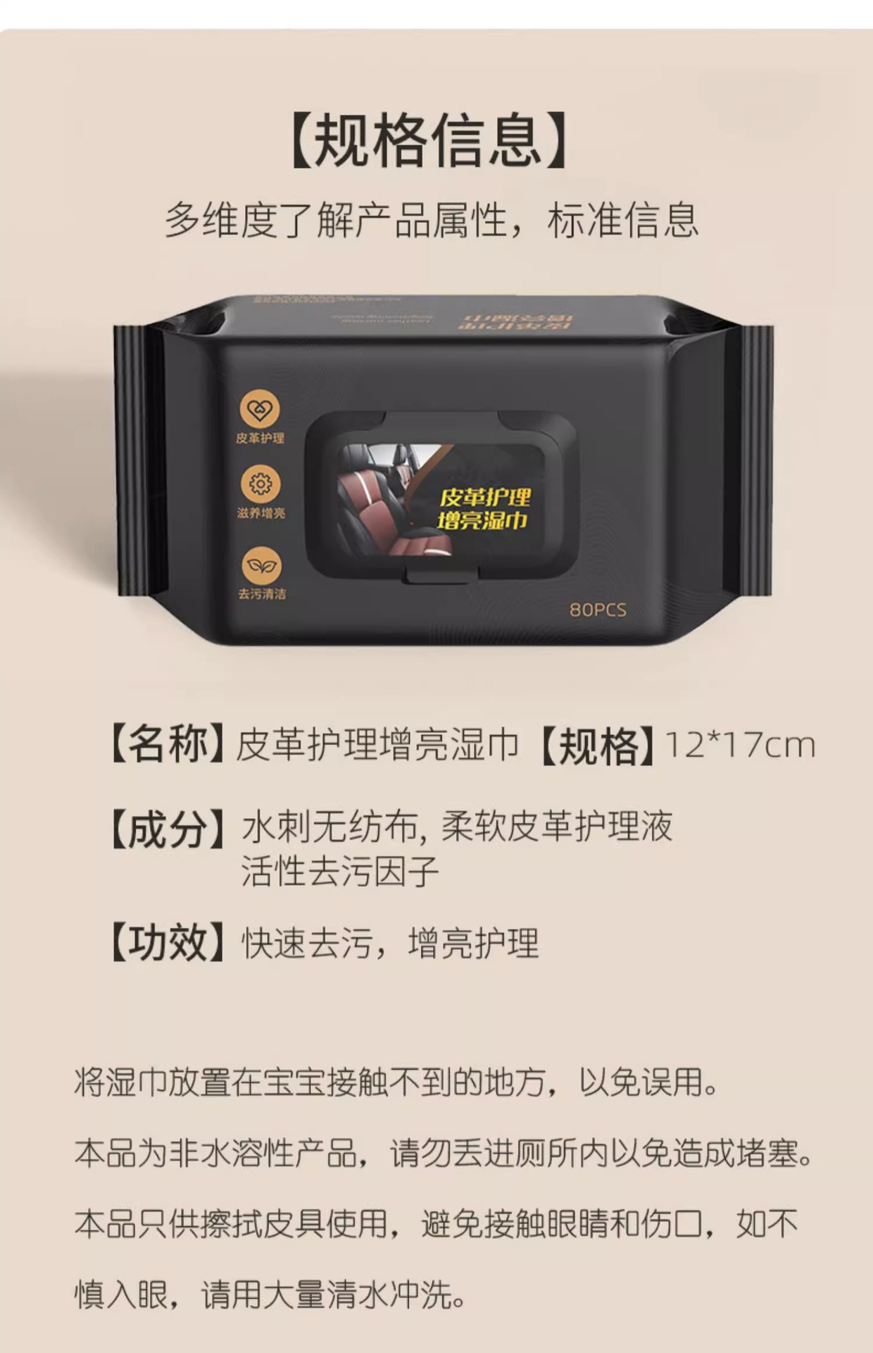 자동차 실내 청소 물티슈 가죽 가죽 광택 개조 수리 빠른 오염 제거 관리 제품 자동차 물티슈