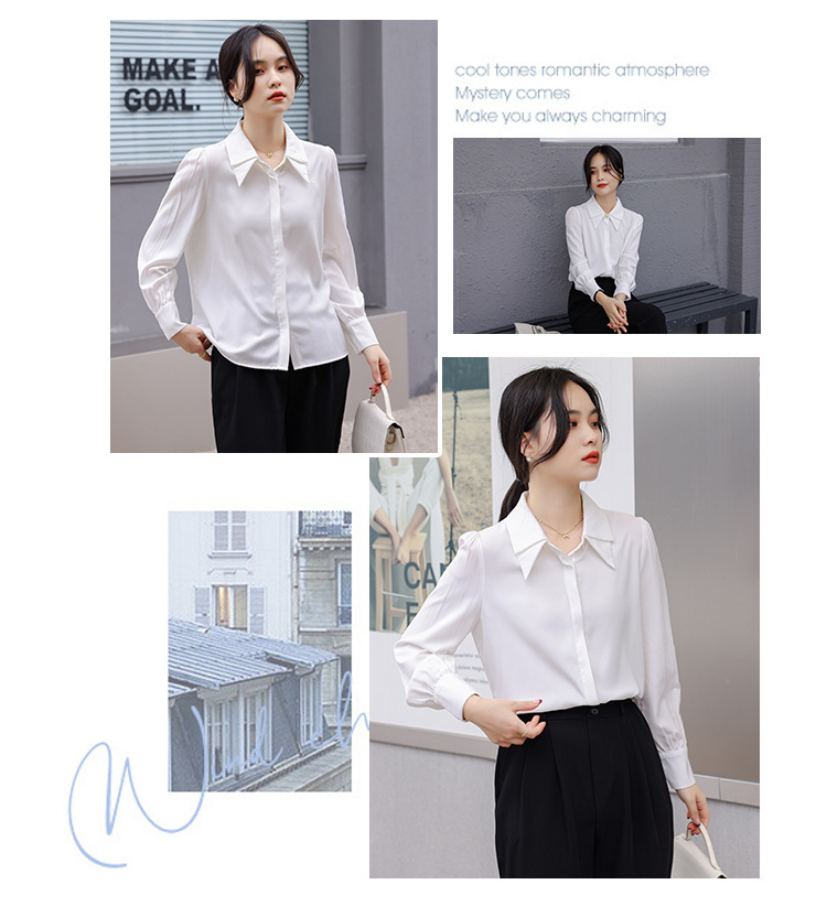 봄 새 통근 화이트 셔츠 엄격한 선택 여성 이른 봄 한국 톱 라이트 성숙한 착용 내부 새틴 셔츠스토어 가기