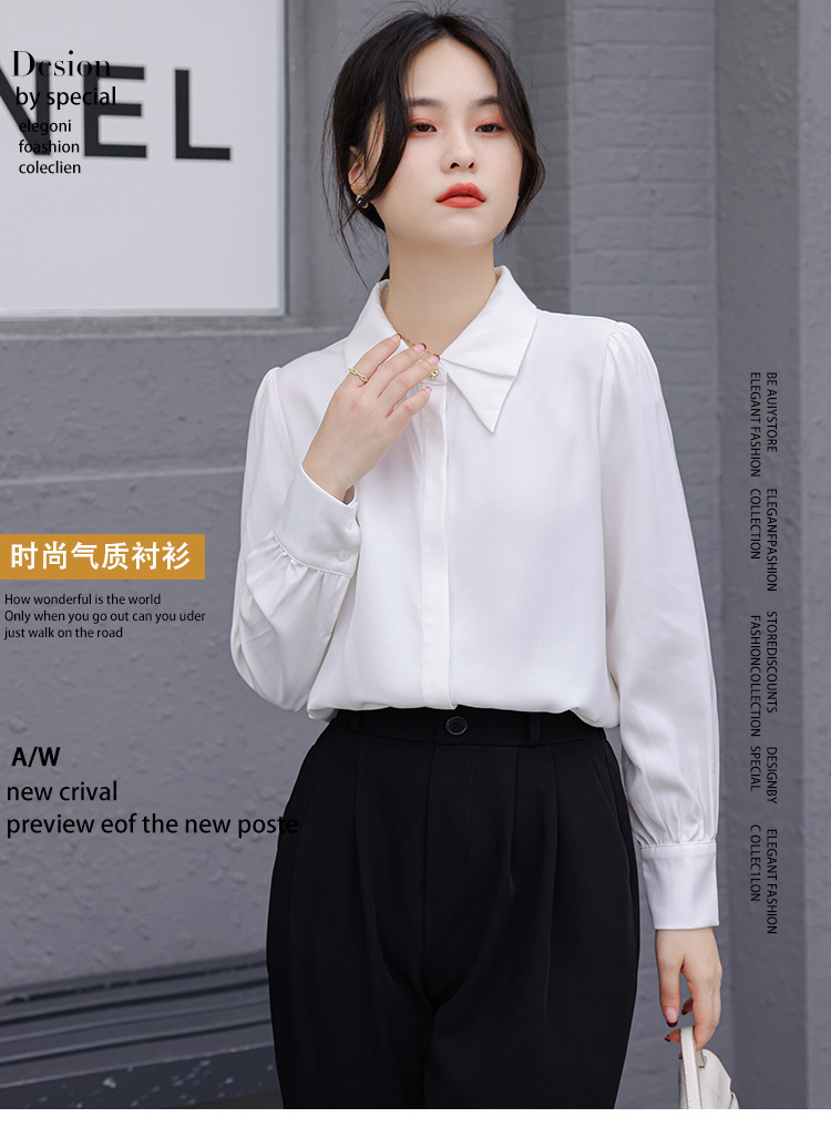 봄 새 통근 화이트 셔츠 엄격한 선택 여성 이른 봄 한국 톱 라이트 성숙한 착용 내부 새틴 셔츠