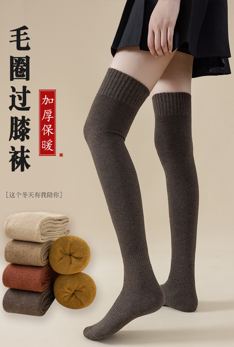 가을과 겨울 어린이를위한 무릎 스타킹 위에 따뜻한 테리 두꺼운 압력 얇은 다리 무릎 패드 높은 허벅지 양말 미끄럼 방지 도매