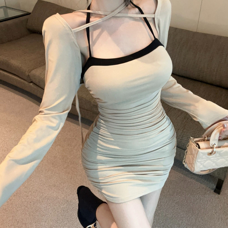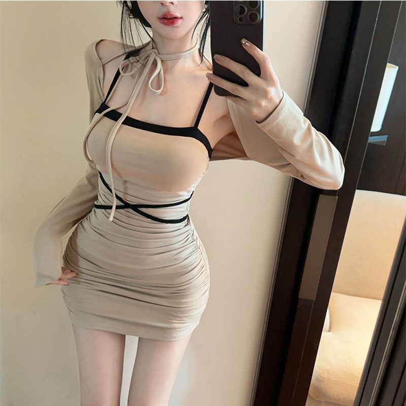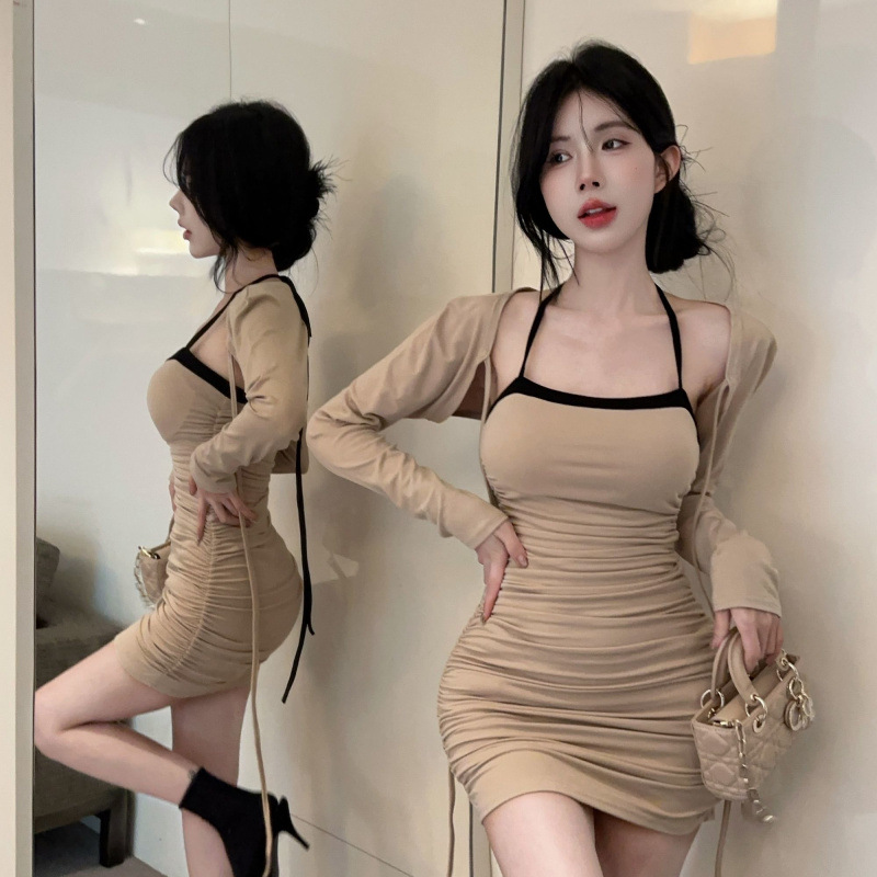 2025 여름 새로운 스타일 대기 뜨거운 소녀 패션 원피스 원피스 긴 소매 선 스크린 목도리 뜨거운 소녀 여성의 투피스 세트