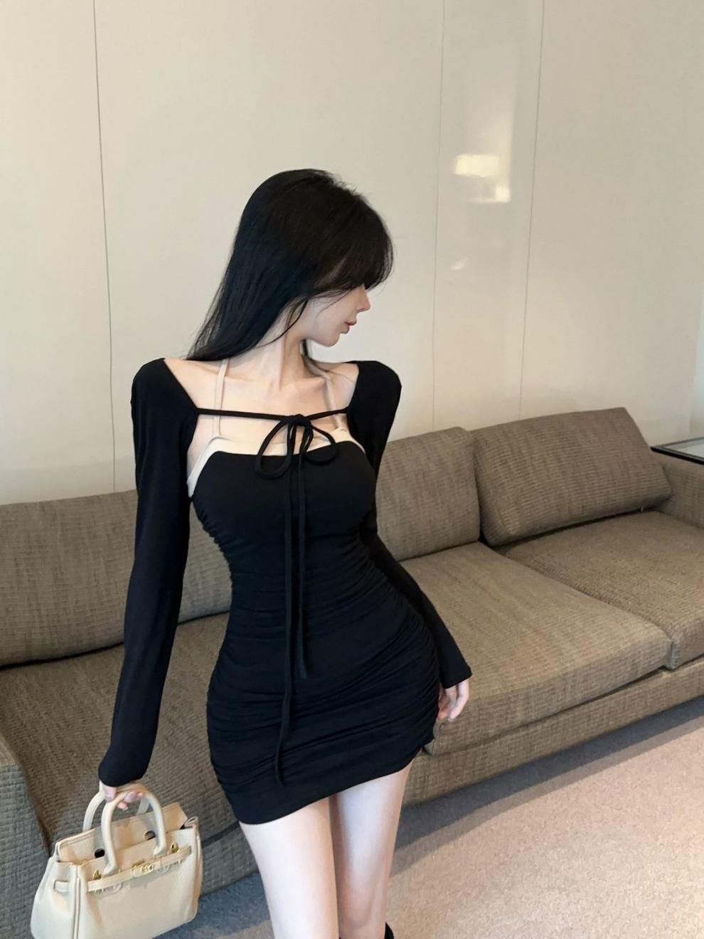 • [투피스세트] 블랙원피스 + 긴팔숄