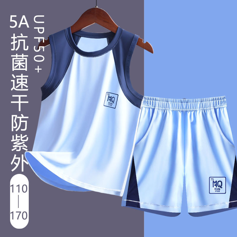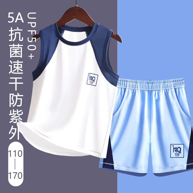 어린이 속건성 민소매 넓은 어깨 조끼 스포츠 반바지 정장 소년 땀 흡수 외부 통기성 여름 얇은 스타일