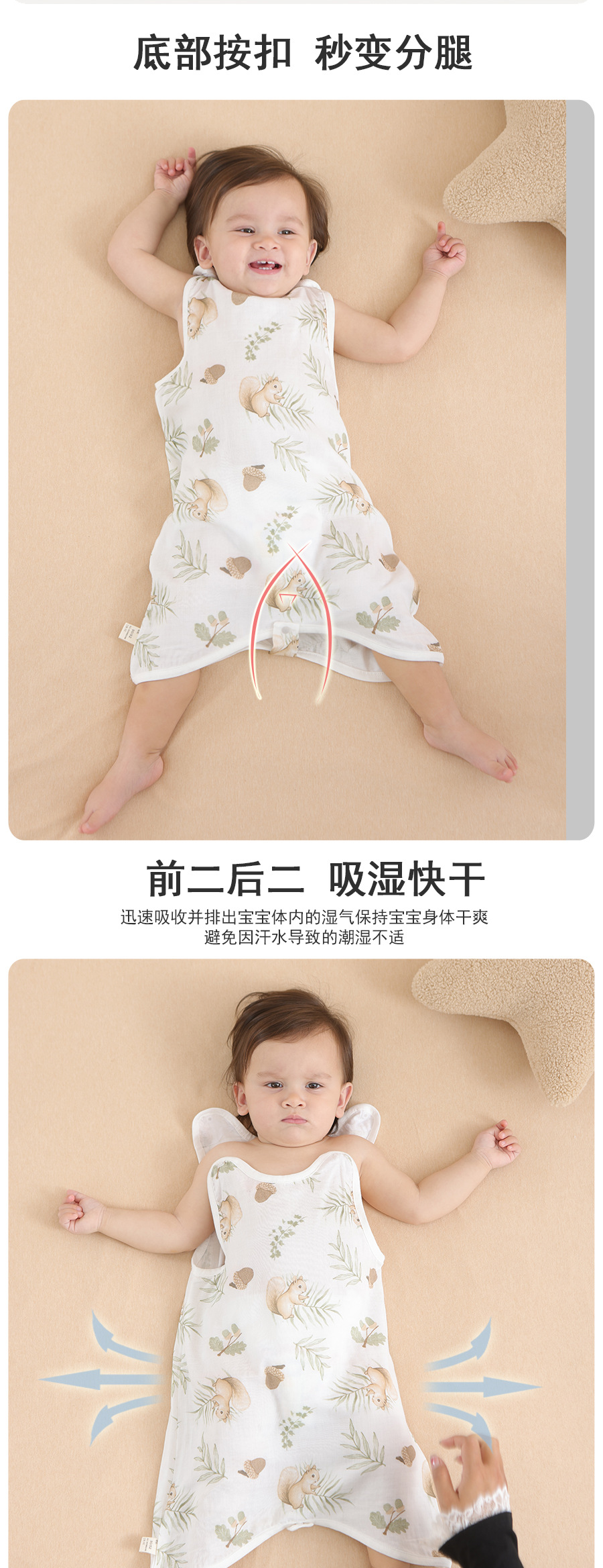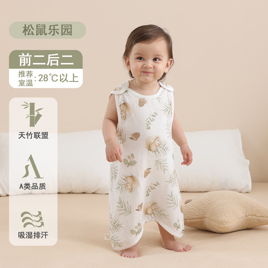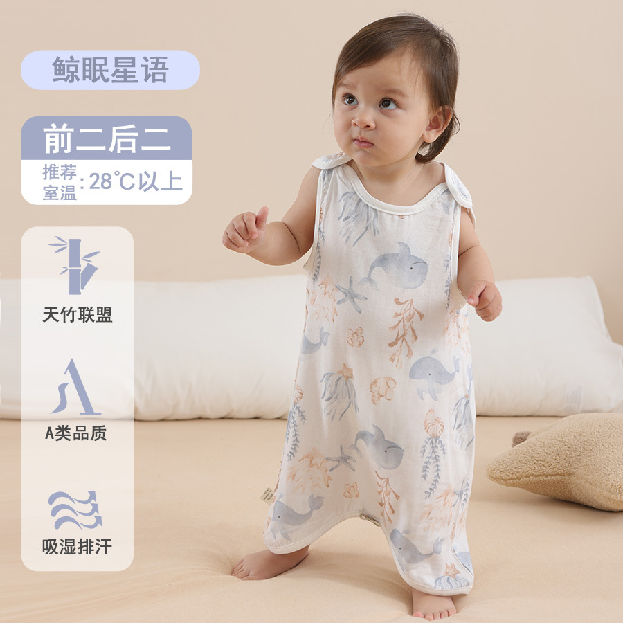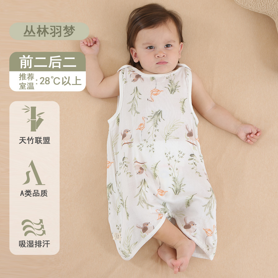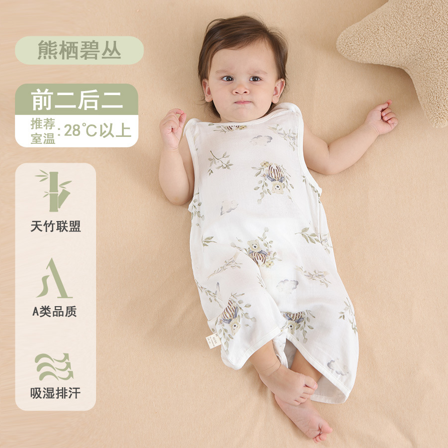 대나무 면 슬리핑 백 베이비 클래스 여름 얇은 거즈 베이비 배꼽 보호 킥 방지 퀼트 대나무 섬유 조끼 배꼽 보호 잠옷