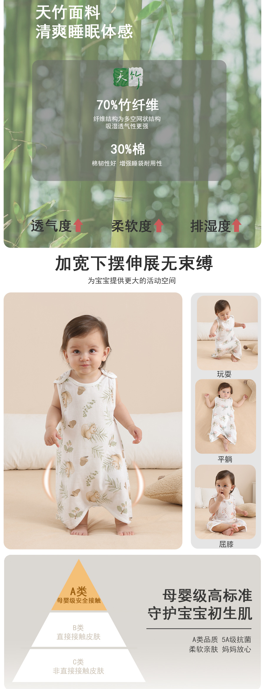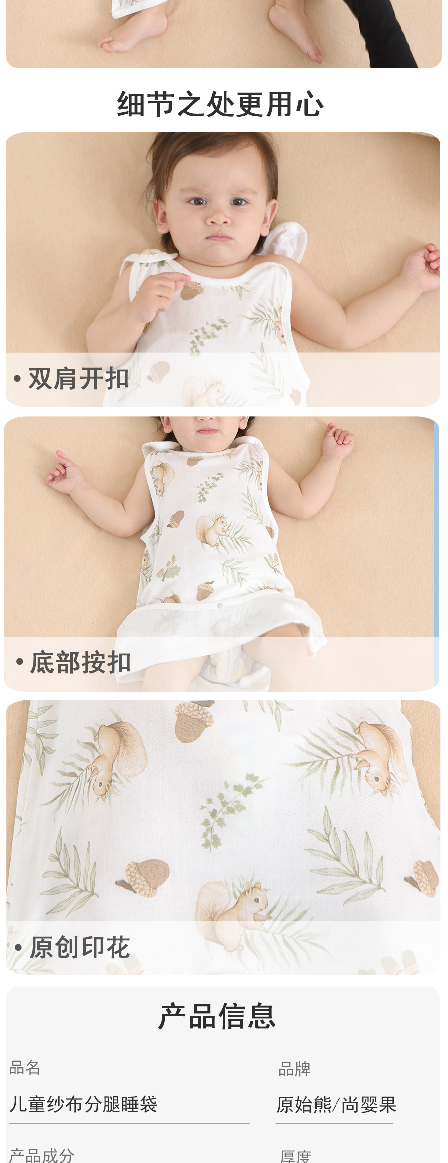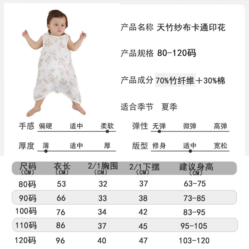 대나무 면 슬리핑 백 베이비 클래스 여름 얇은 거즈 베이비 배꼽 보호 킥 방지 퀼트 대나무 섬유 조끼 배꼽 보호 잠옷스토어 가기