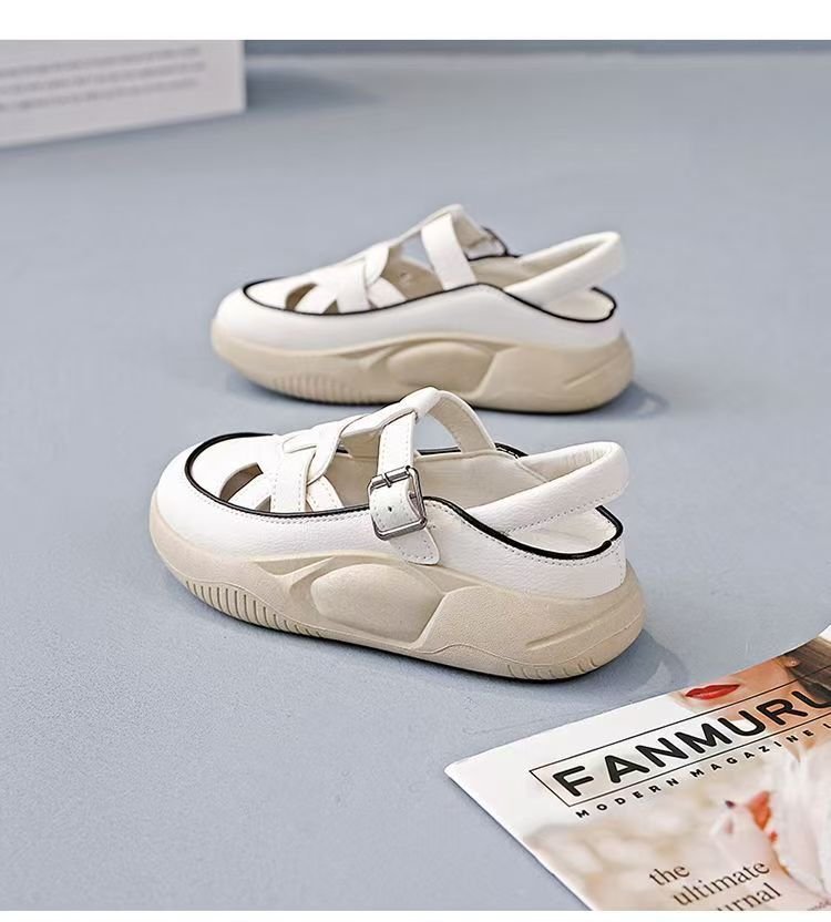 빈티지 로마 샌들 여성 2025 년 여름 아웃웨어 유행 두꺼운 밑창 흰색 신발 Baotou 통기성 할로우 홀 샌들스토어 가기