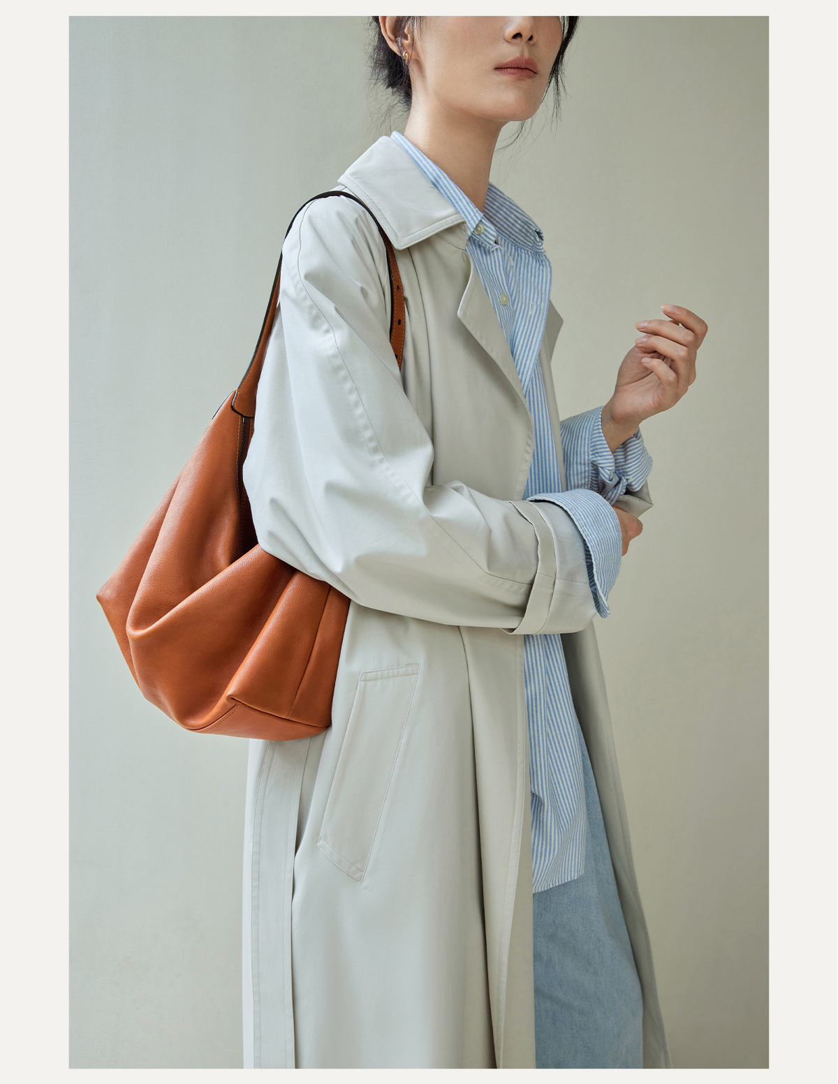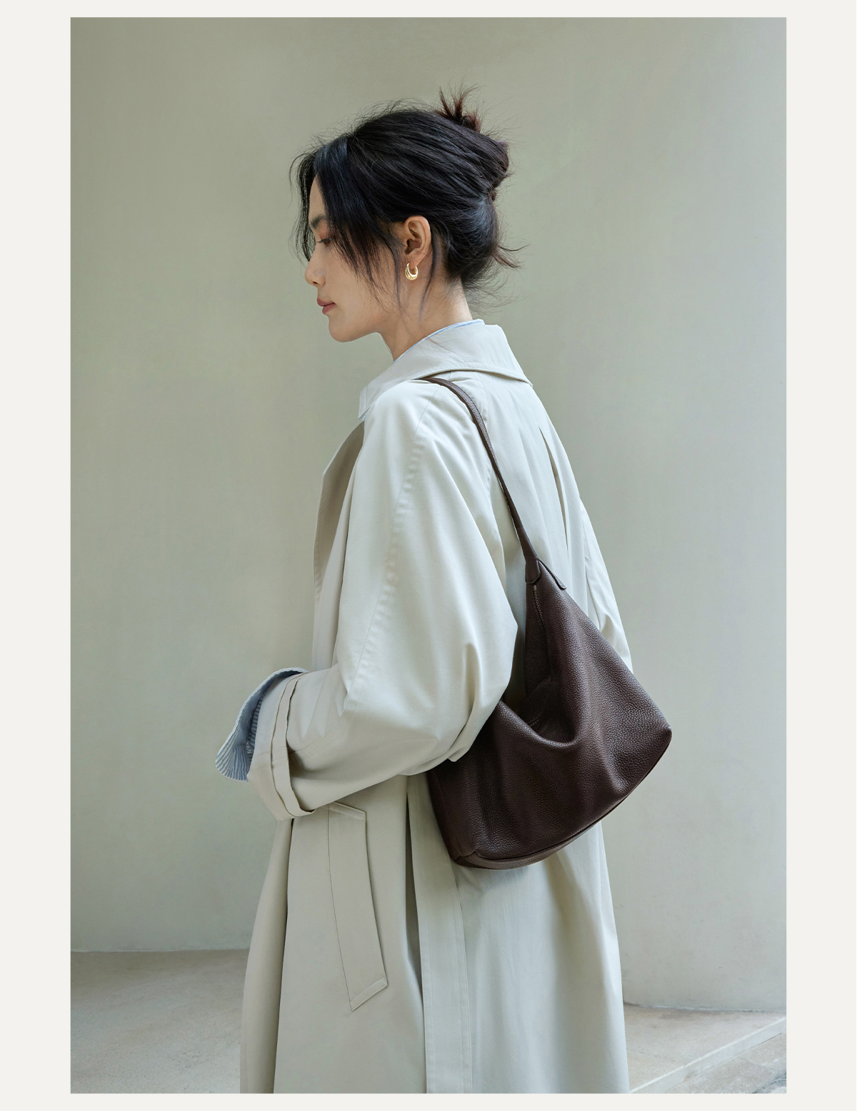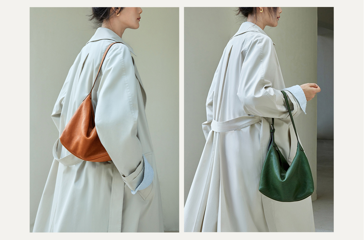 Qiu Zhen 베지터블 태닝 소가죽 겨드랑이 클래식 호보 백 다용도 캐주얼 숄더 크로스 바디 통근 가방 여성용 정품 가죽 만두 백