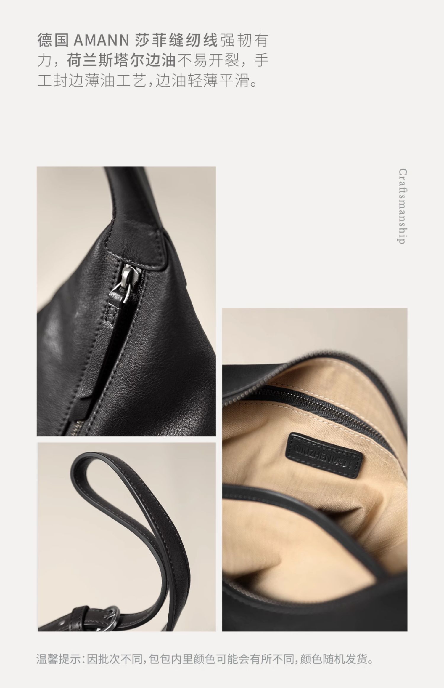Qiu Zhen 베지터블 태닝 소가죽 겨드랑이 클래식 호보 백 다용도 캐주얼 숄더 크로스 바디 통근 가방 여성용 정품 가죽 만두 백스토어 가기