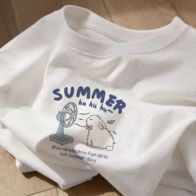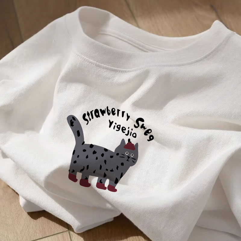 여름 반소매 코튼 티셔츠 여자 2025 새로운 한국식 젠틀 칙웨어 틈새 대학 스타일 올 매치 탑