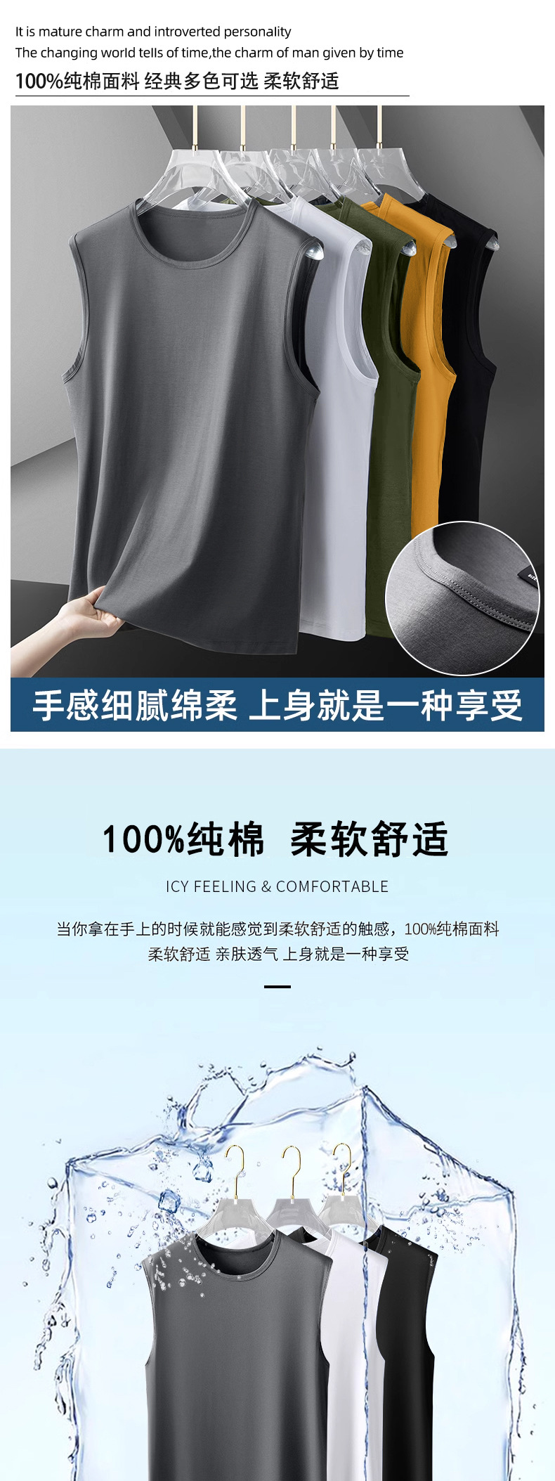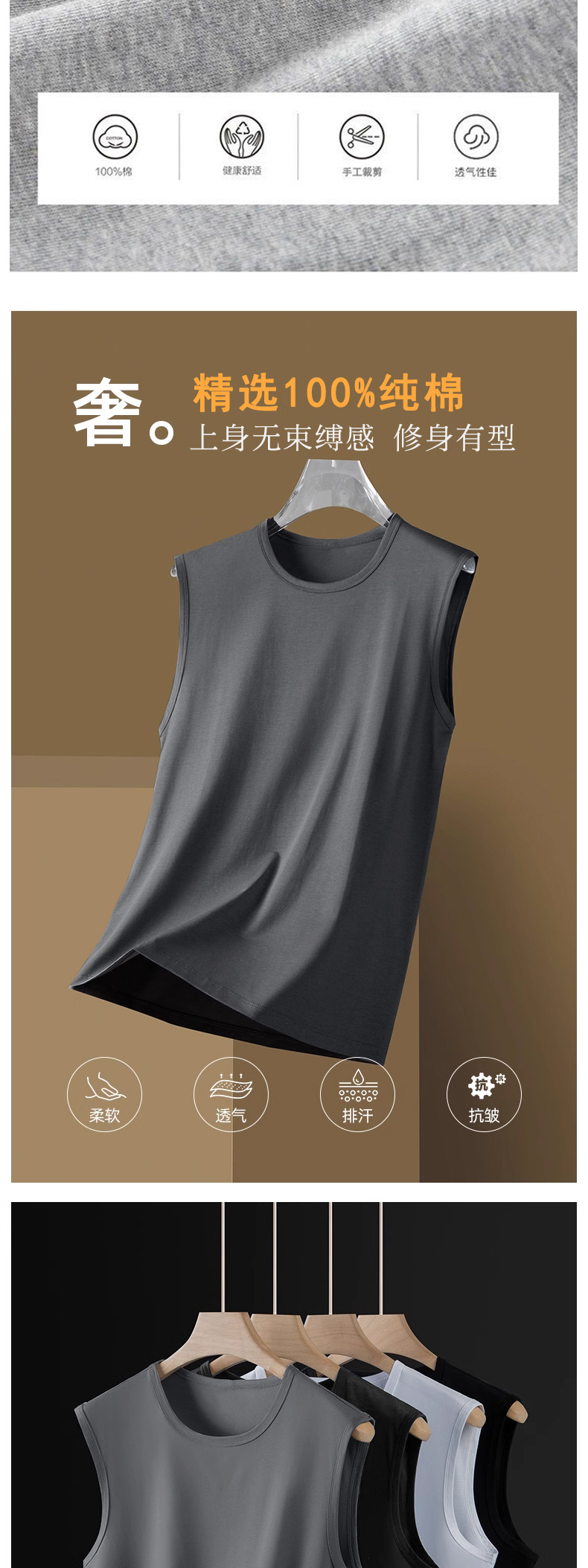 캐주얼 남성 조끼 여름 얇은 유행 다목적 순수 코튼 민소매 바닥 조끼 조끼 편안하고 통기성