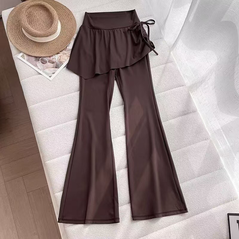 마이크로 플레어 요가 팬츠, 페이크 투피스 커버 스커트, 하이웨이스트 힙 리프팅 스포츠 필라테스 피트니스 팬츠