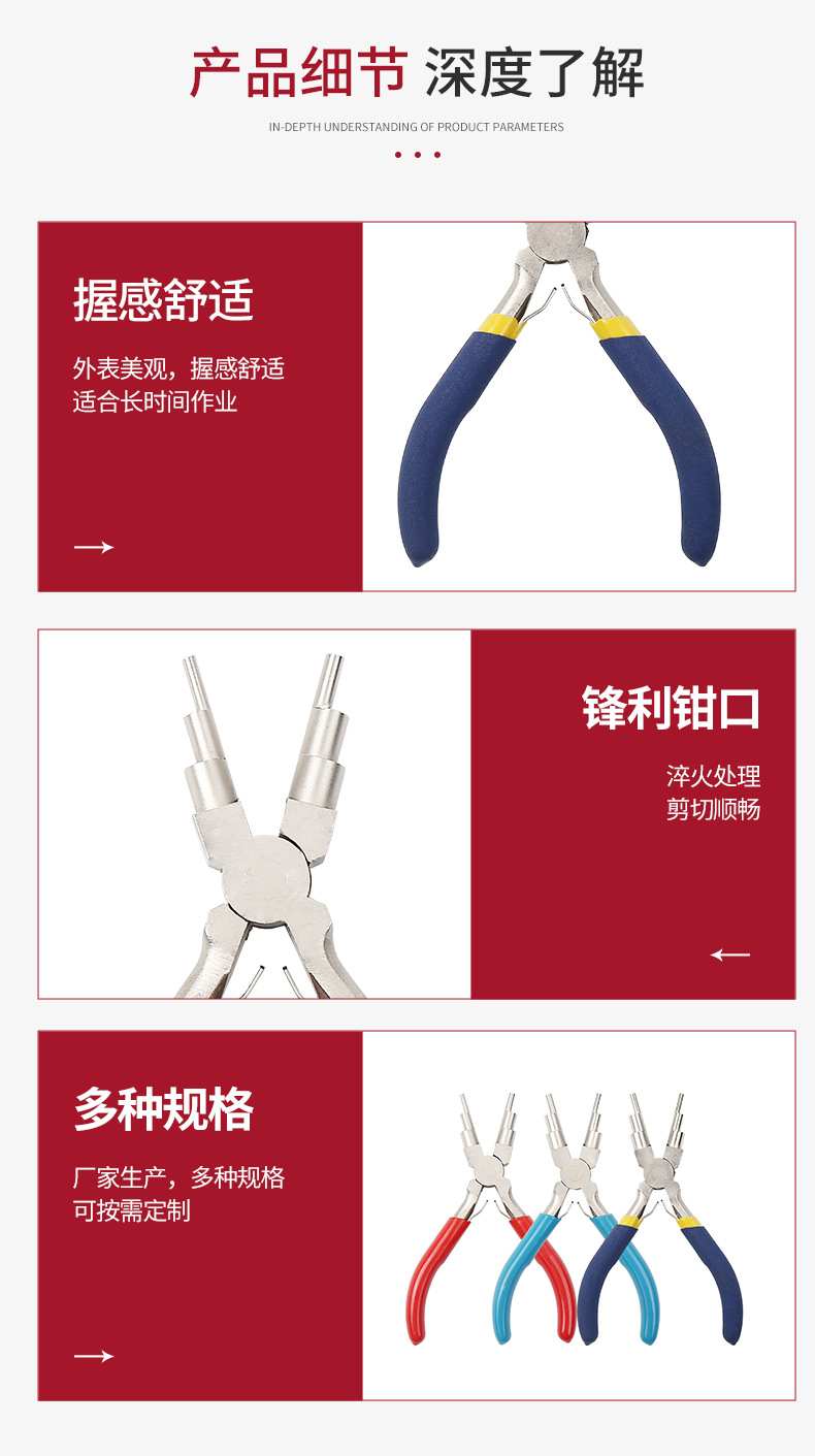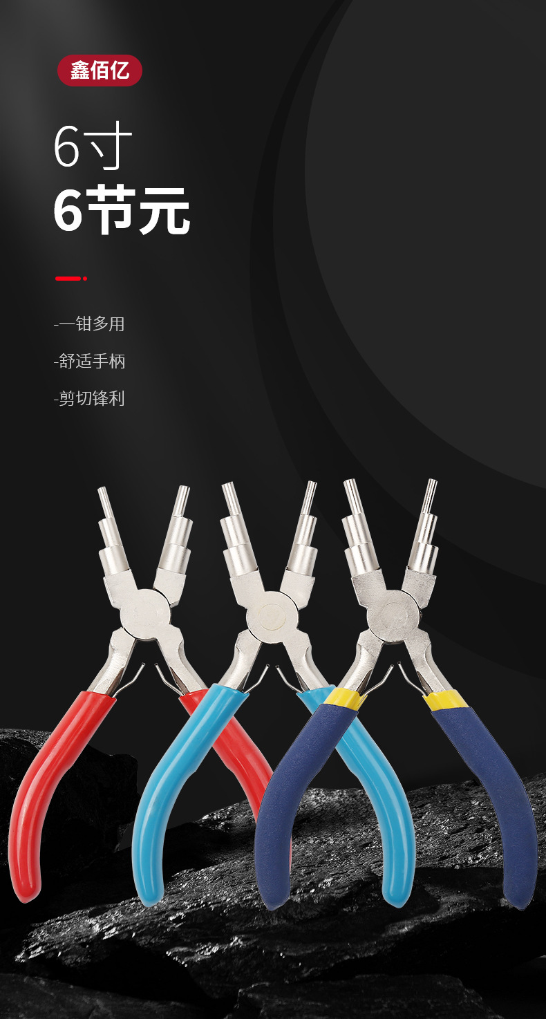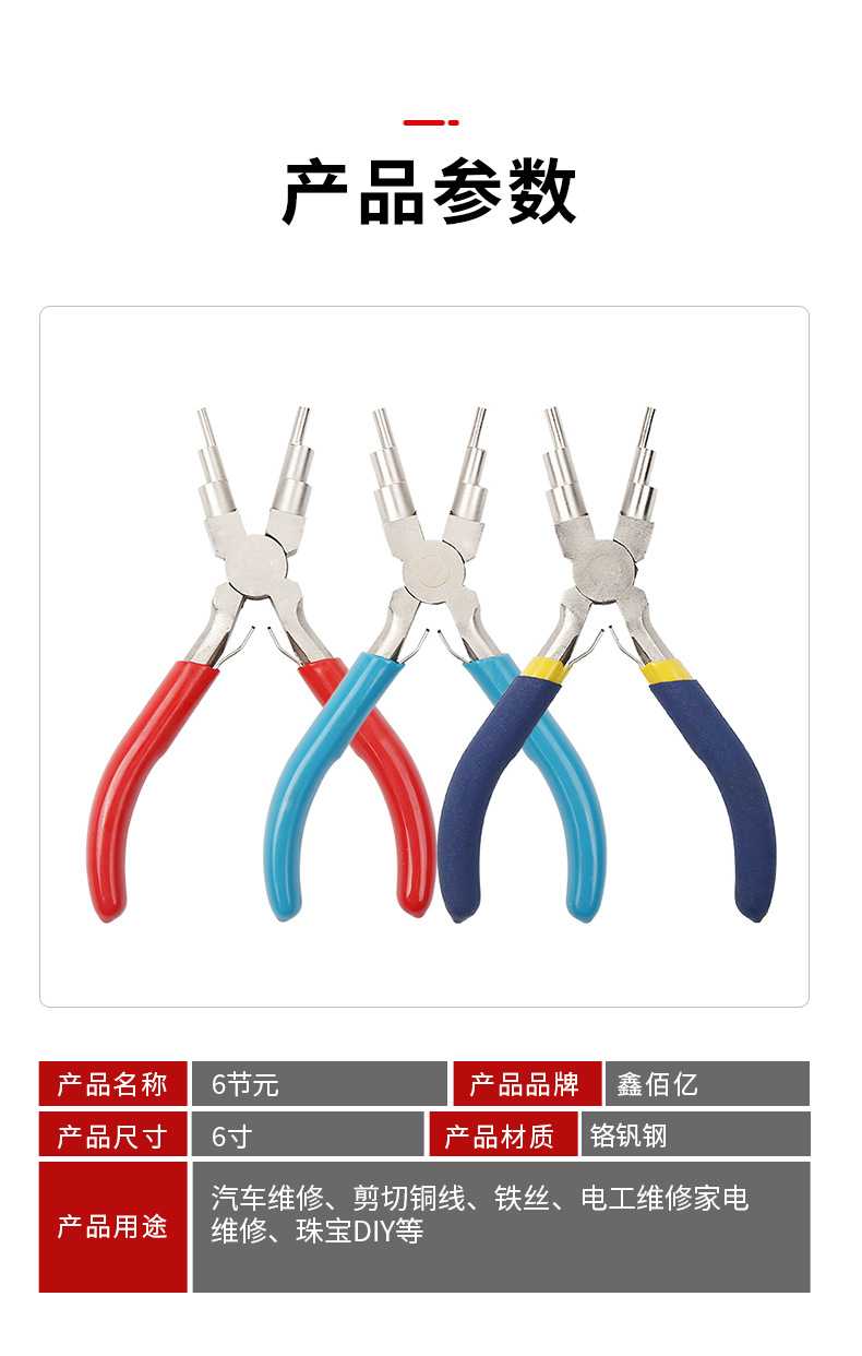 6 점 C 링 오픈 링 6 세그먼트 크기 두껍고 얇은 코일 권선 펜치 라운드 노즈 펜치 6 대 1 보석 펜치