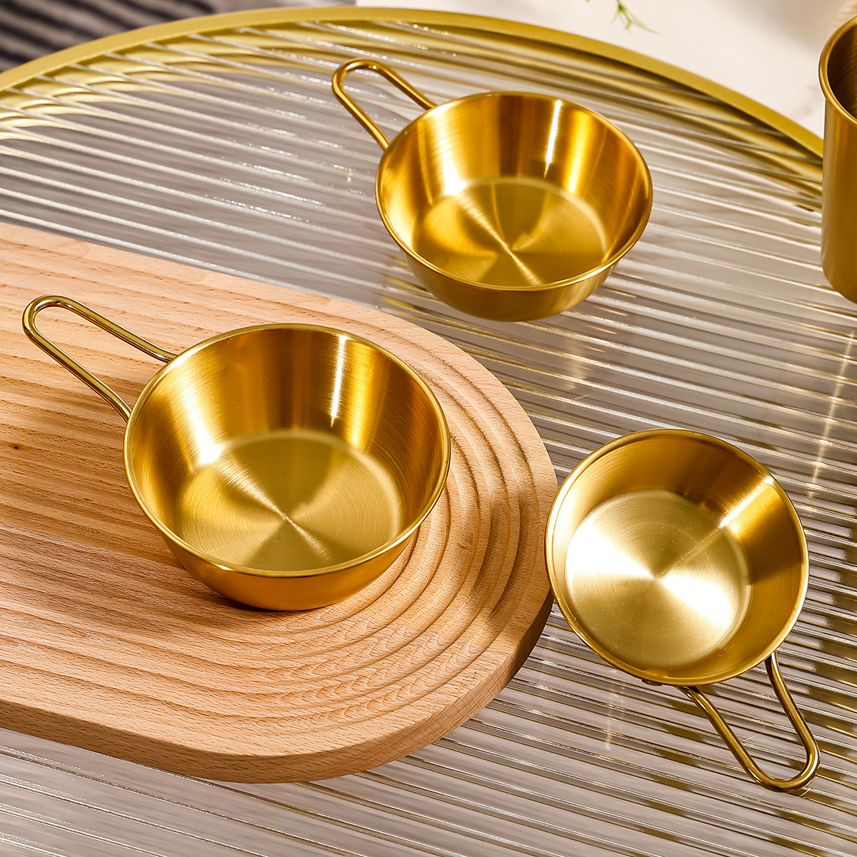 한국식 황금 막걸리 그릇 손잡이 스낵 그릇 스테인리스 그릇 한국 음식 레스토랑 특별 그릇 조미료 그릇