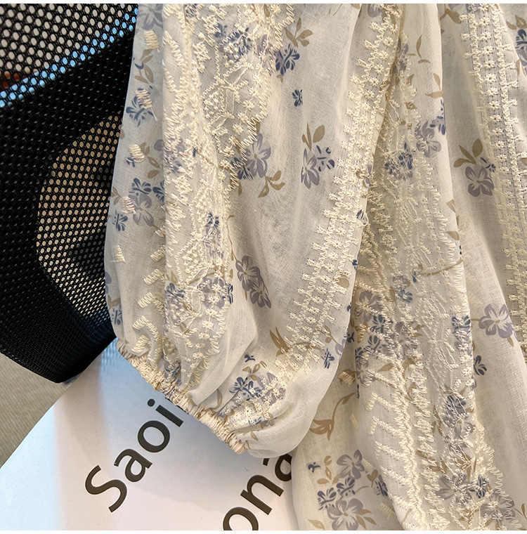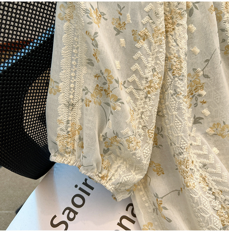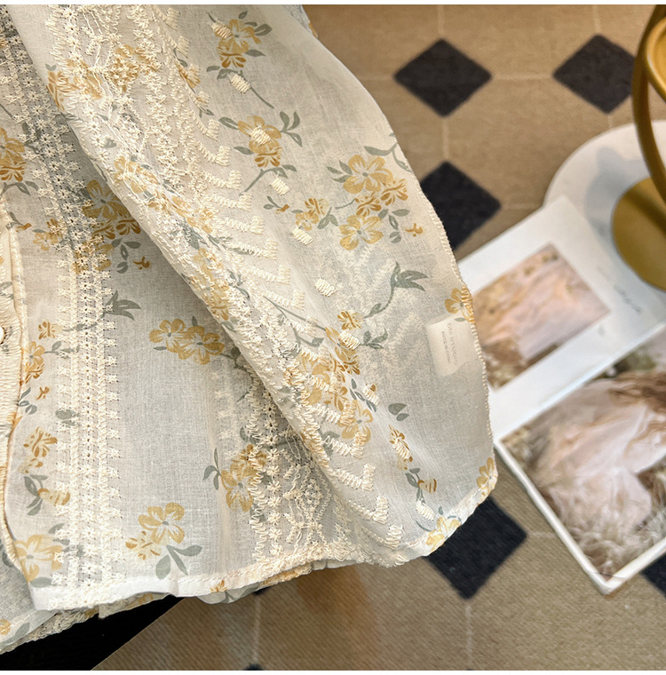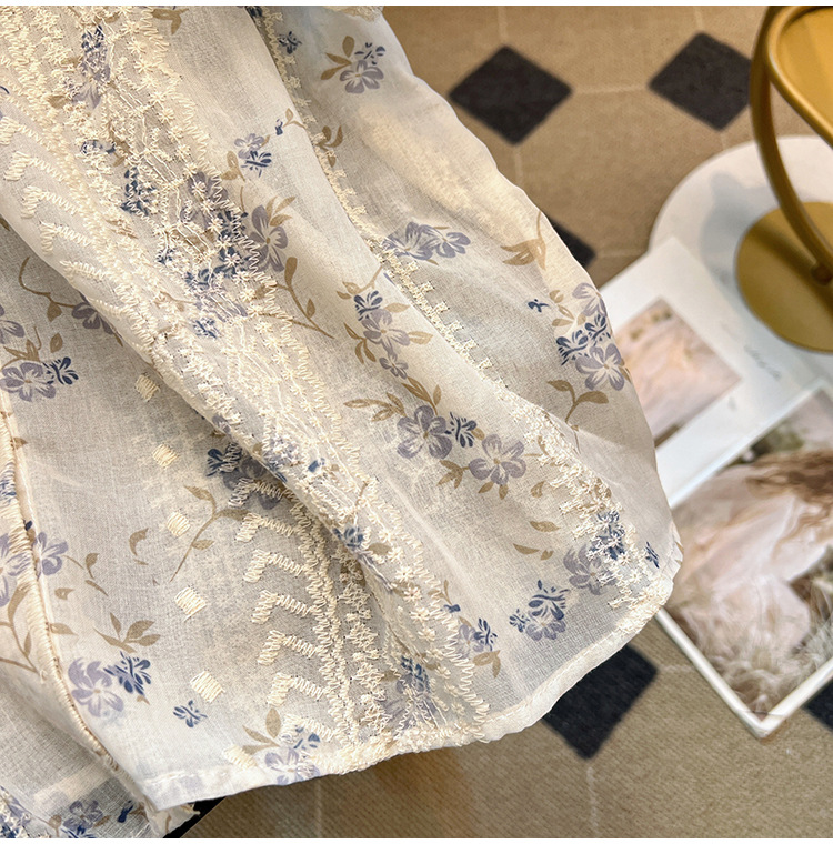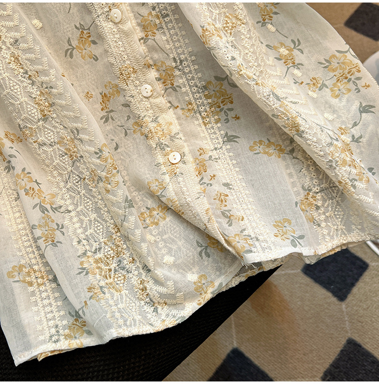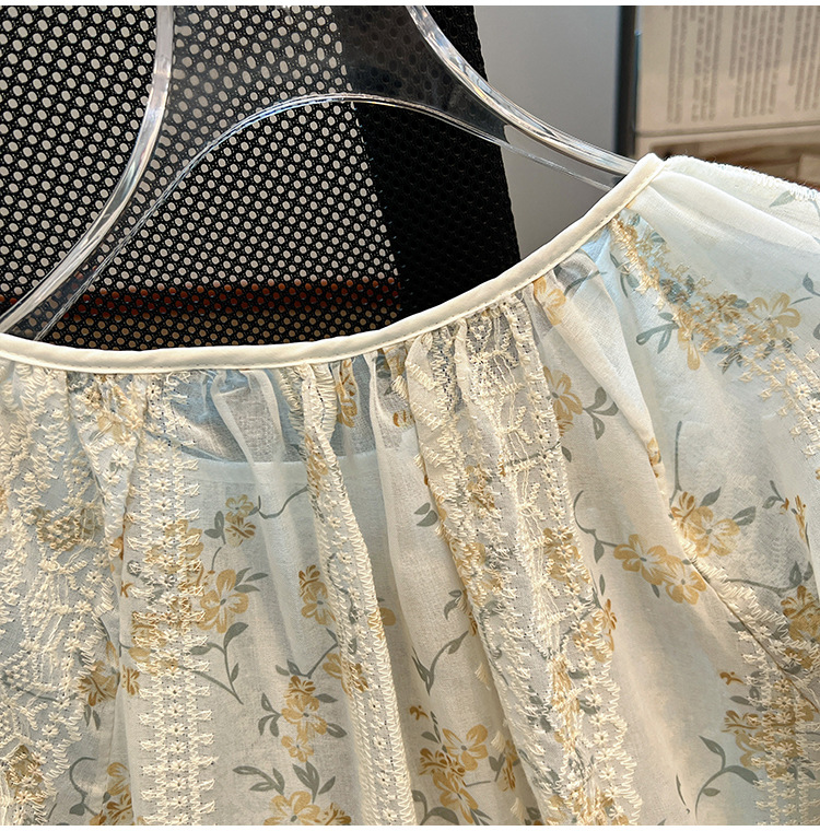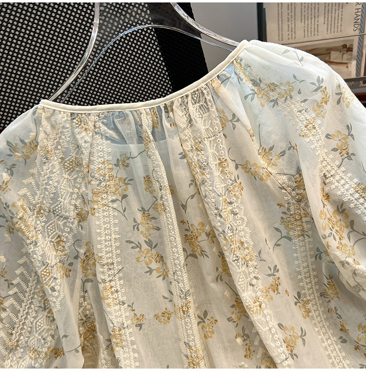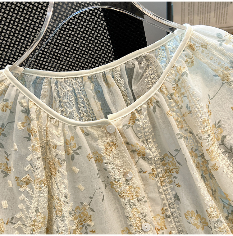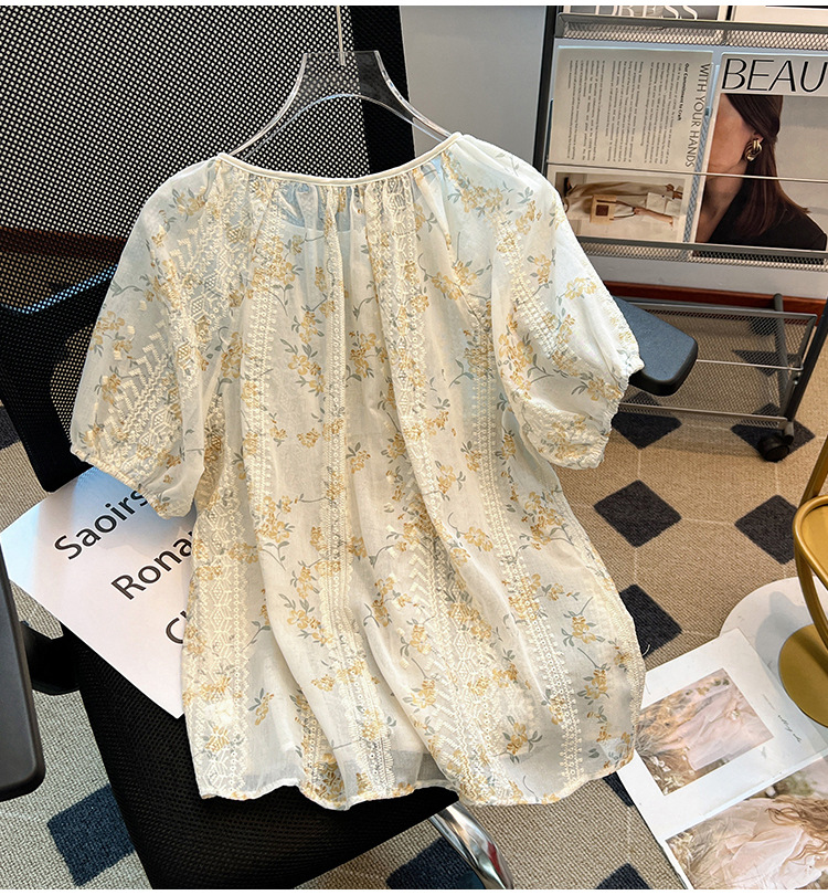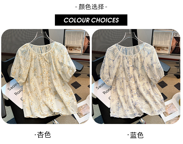 꽃 셔츠 여자 여름 2025 새로운 한국 스타일 달콤한 캐주얼 올 매치 라운드 넥 랜턴 소매 반팔 셔츠