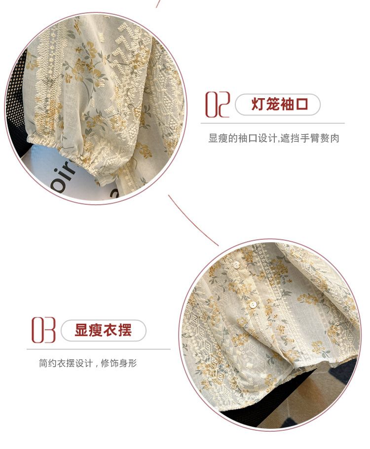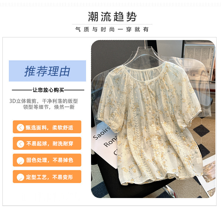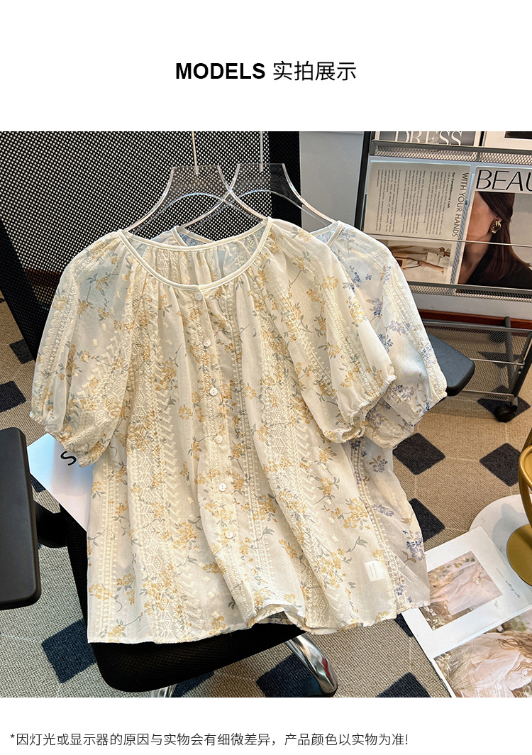 꽃 셔츠 여자 여름 2025 새로운 한국 스타일 달콤한 캐주얼 올 매치 라운드 넥 랜턴 소매 반팔 셔츠스토어 가기