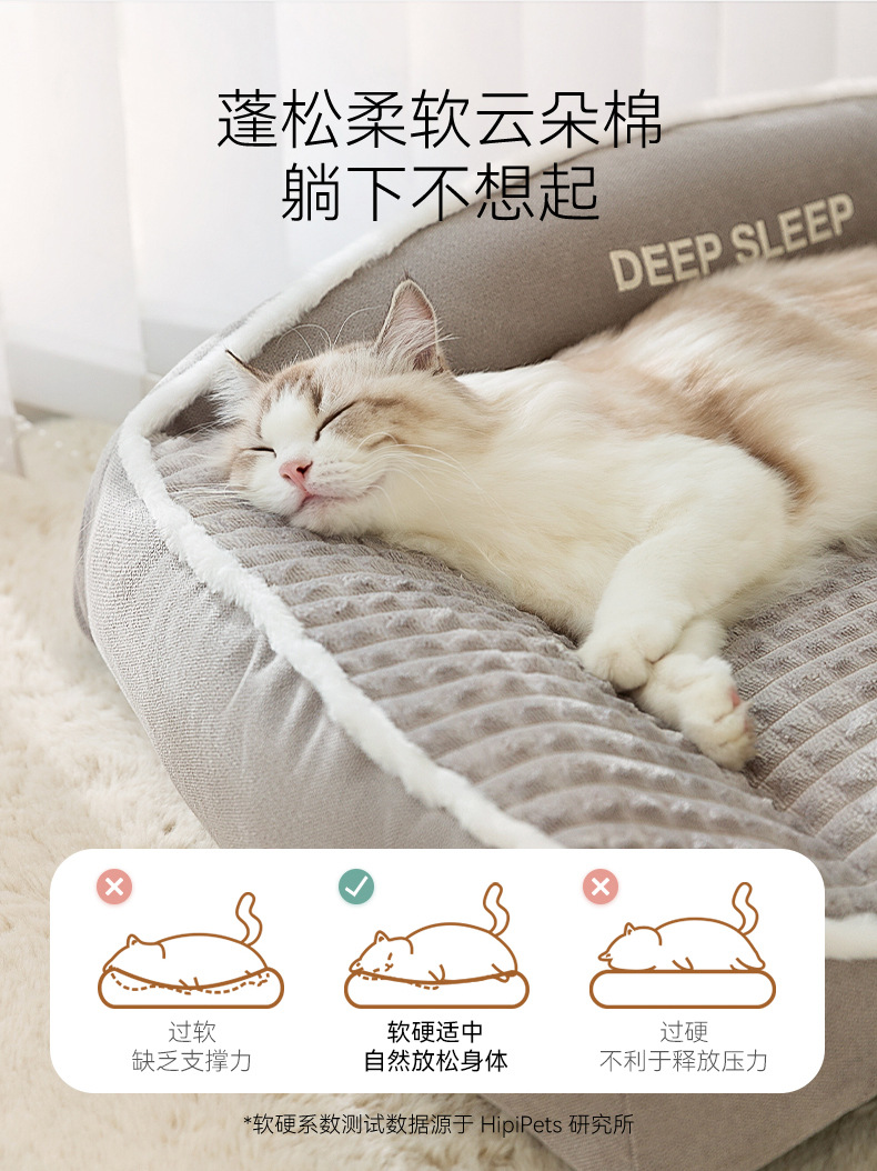 겨울에는 따뜻하고 두꺼워지는 고양이 둥지, 탈부착 및 세탁이 가능한 고양이 소파, 고양이 침대, 새끼 고양이, 소형견, 겨울 수면용 애완동물 매트스토어 가기