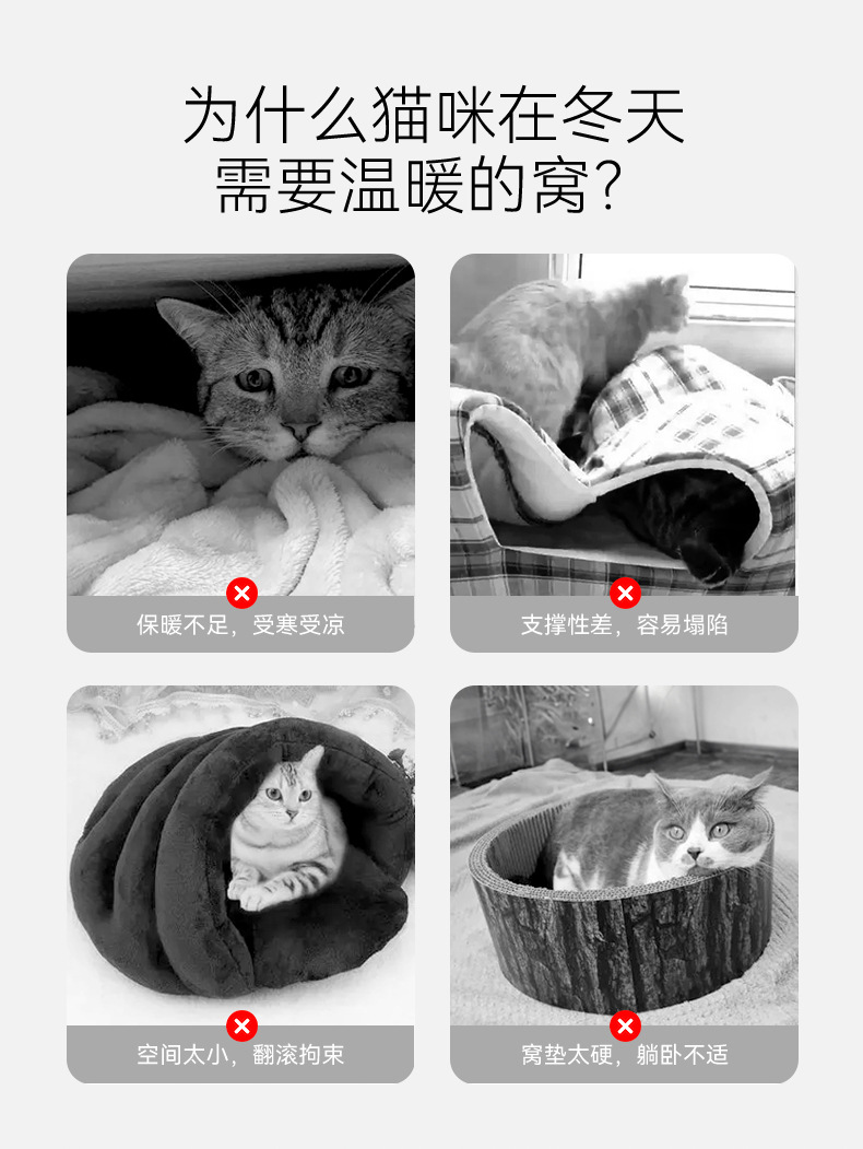 겨울에는 따뜻하고 두꺼워지는 고양이 둥지, 탈부착 및 세탁이 가능한 고양이 소파, 고양이 침대, 새끼 고양이, 소형견, 겨울 수면용 애완동물 매트