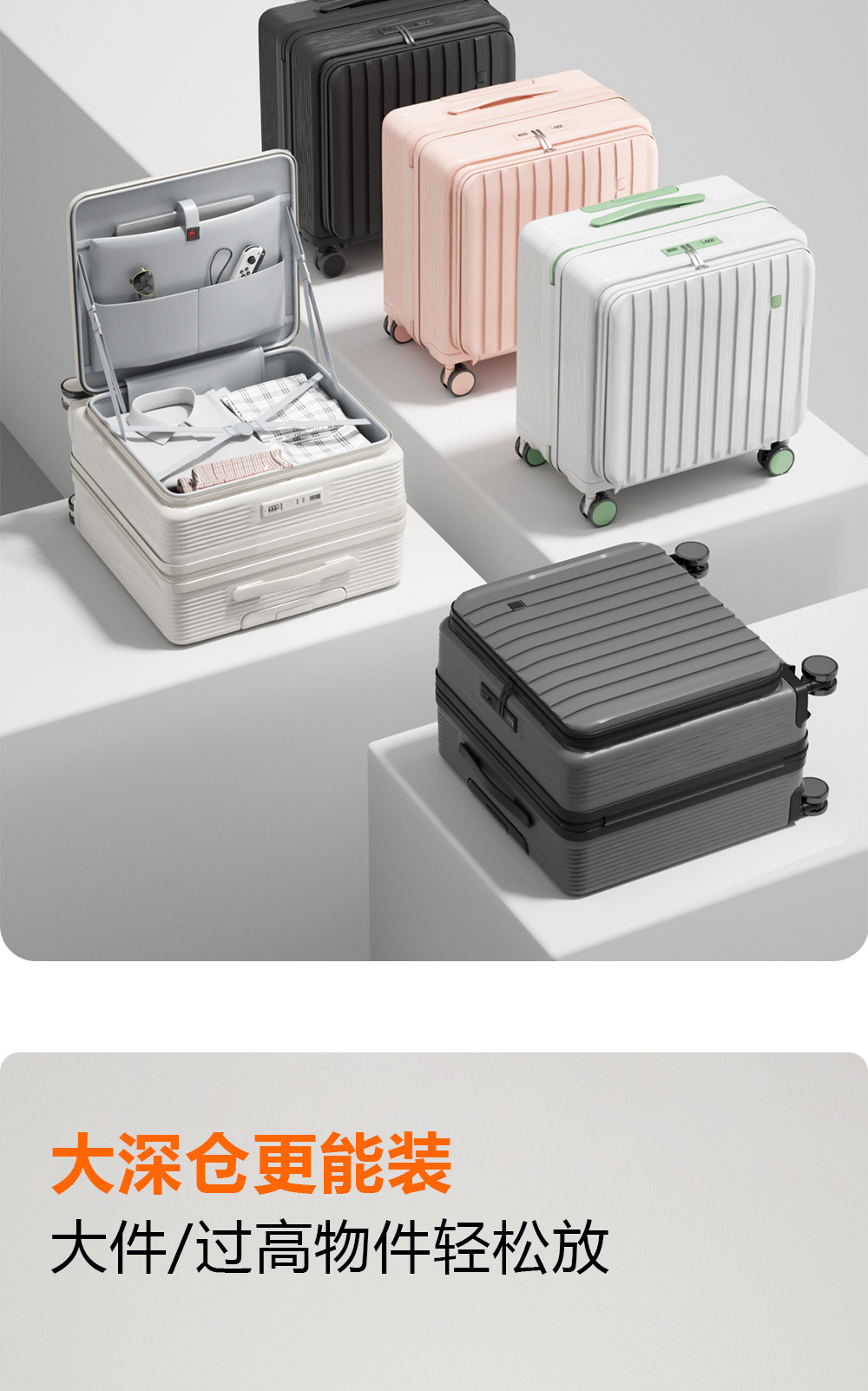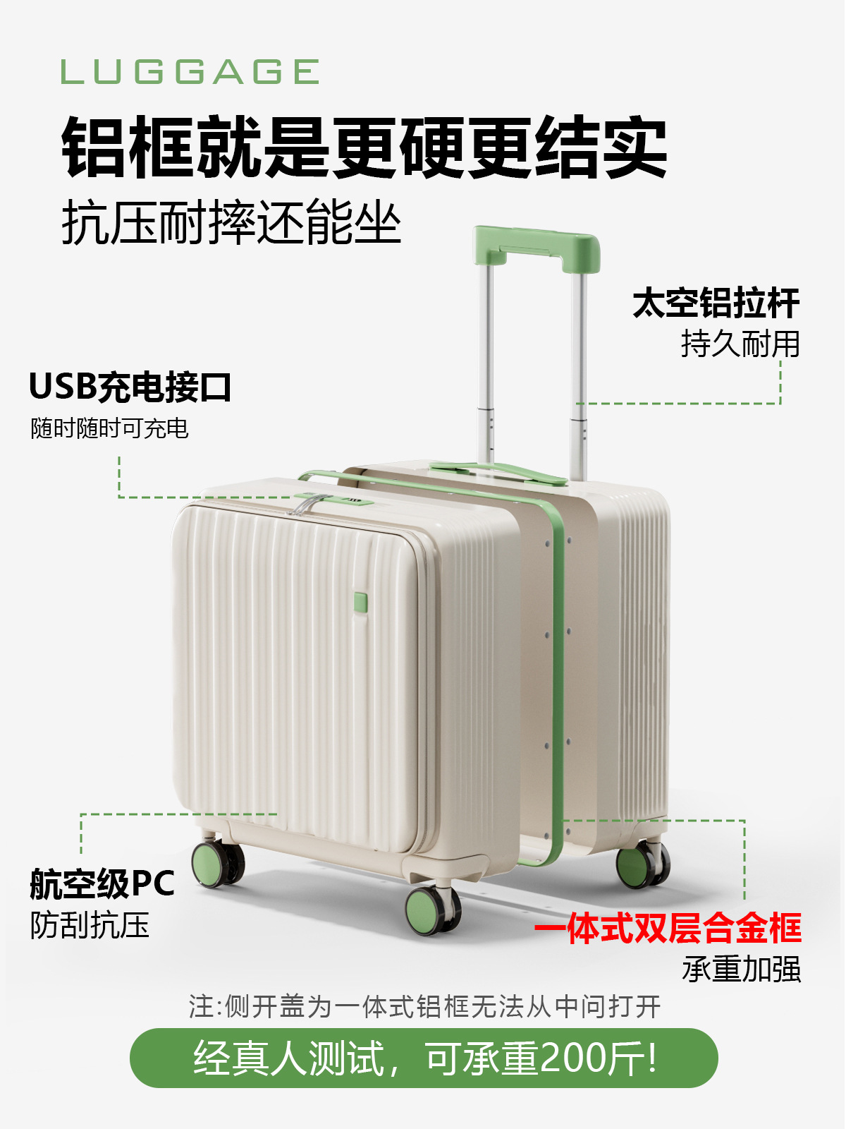 측면 개방형 소형 다기능 여행가방 20inch 여행가방 내구성이 뛰어나 기내 반입 가능 미니 알루미늄 프레임 18inch 가방스토어 가기